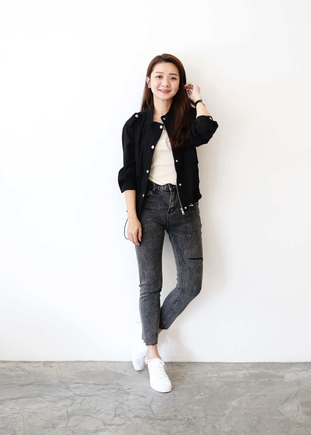 Type: Ripped Raw Hem Skinny Jeans | Stretchable Denim | Front Zipper