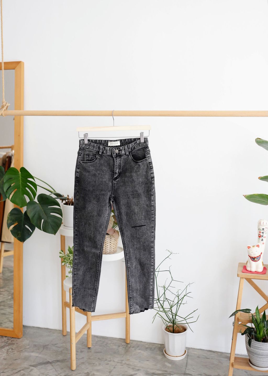 Ripped Raw Hem Skinny Jeans