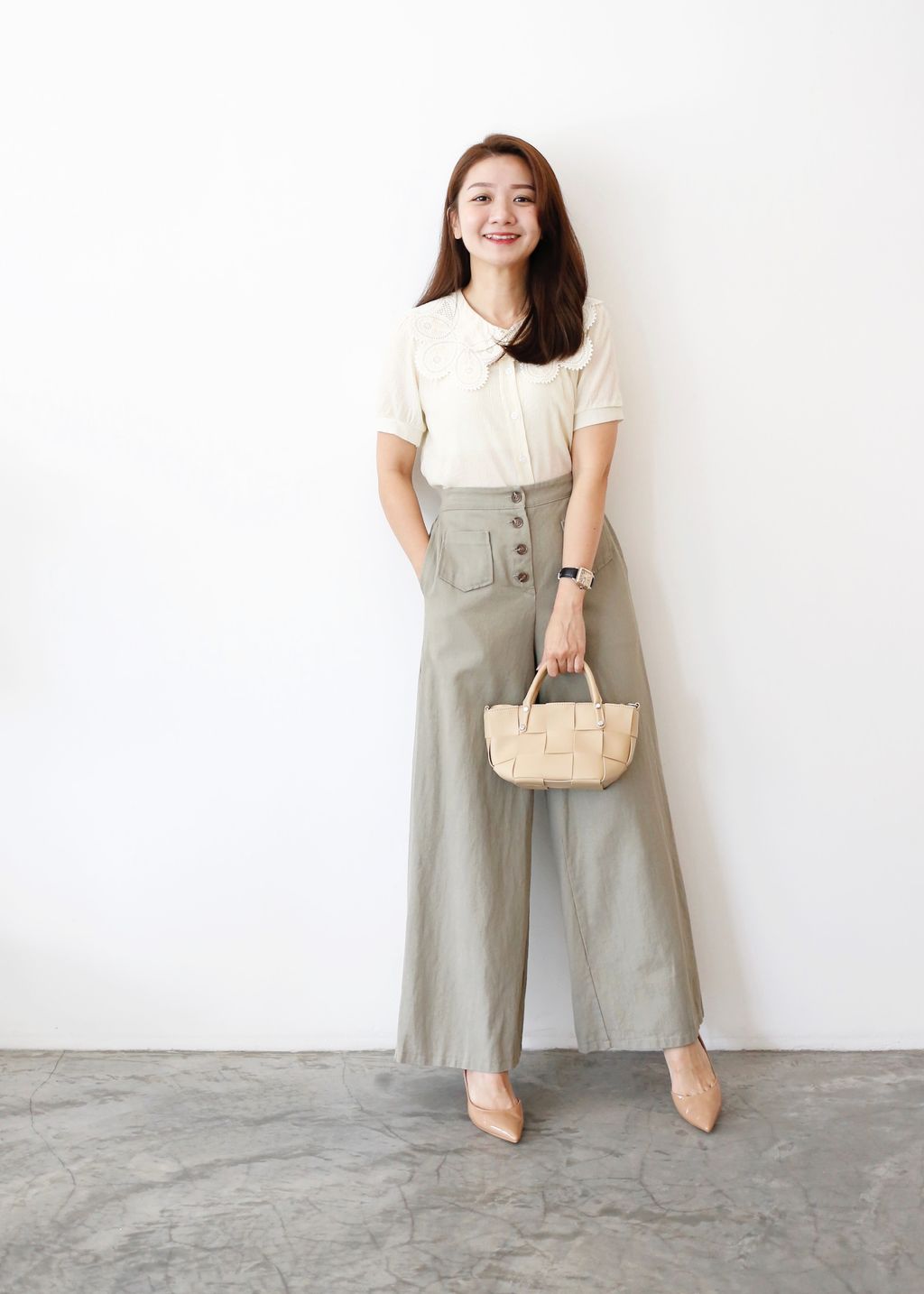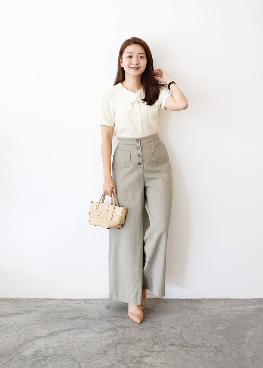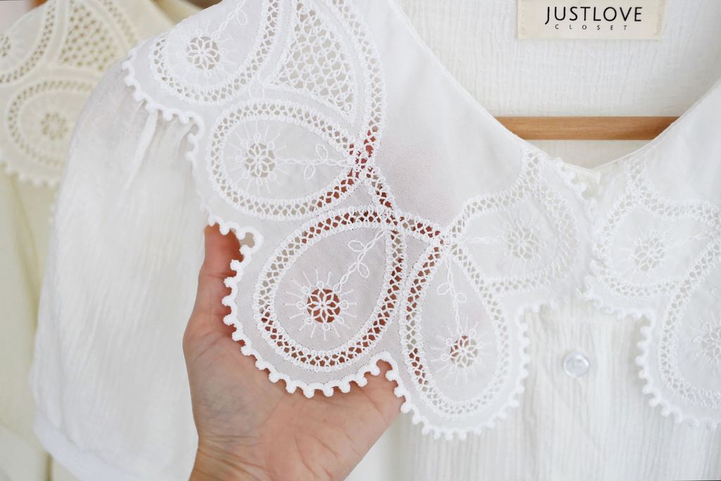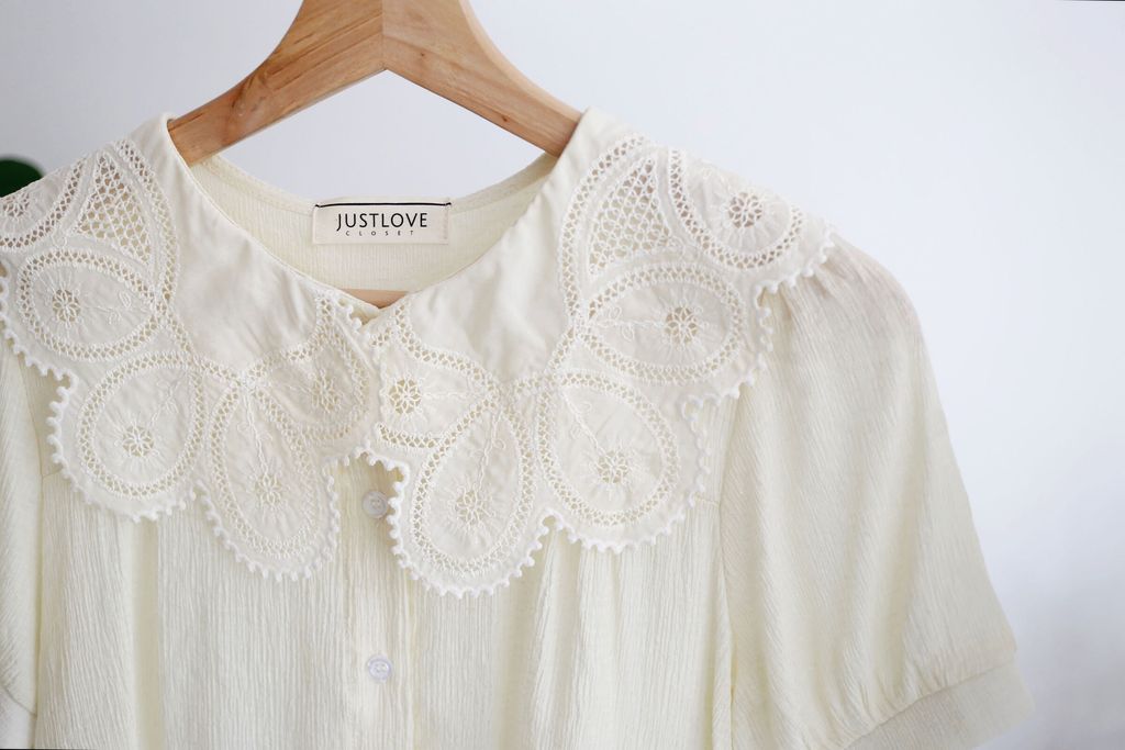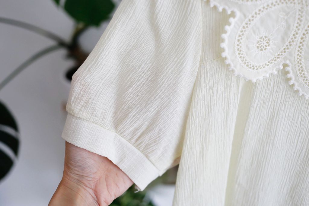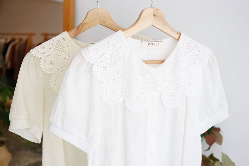 Type: Scallop Embroidered Collar Blouse | Crepe Chiffon Fabric | Button Through Design | Kindly Hand Wash