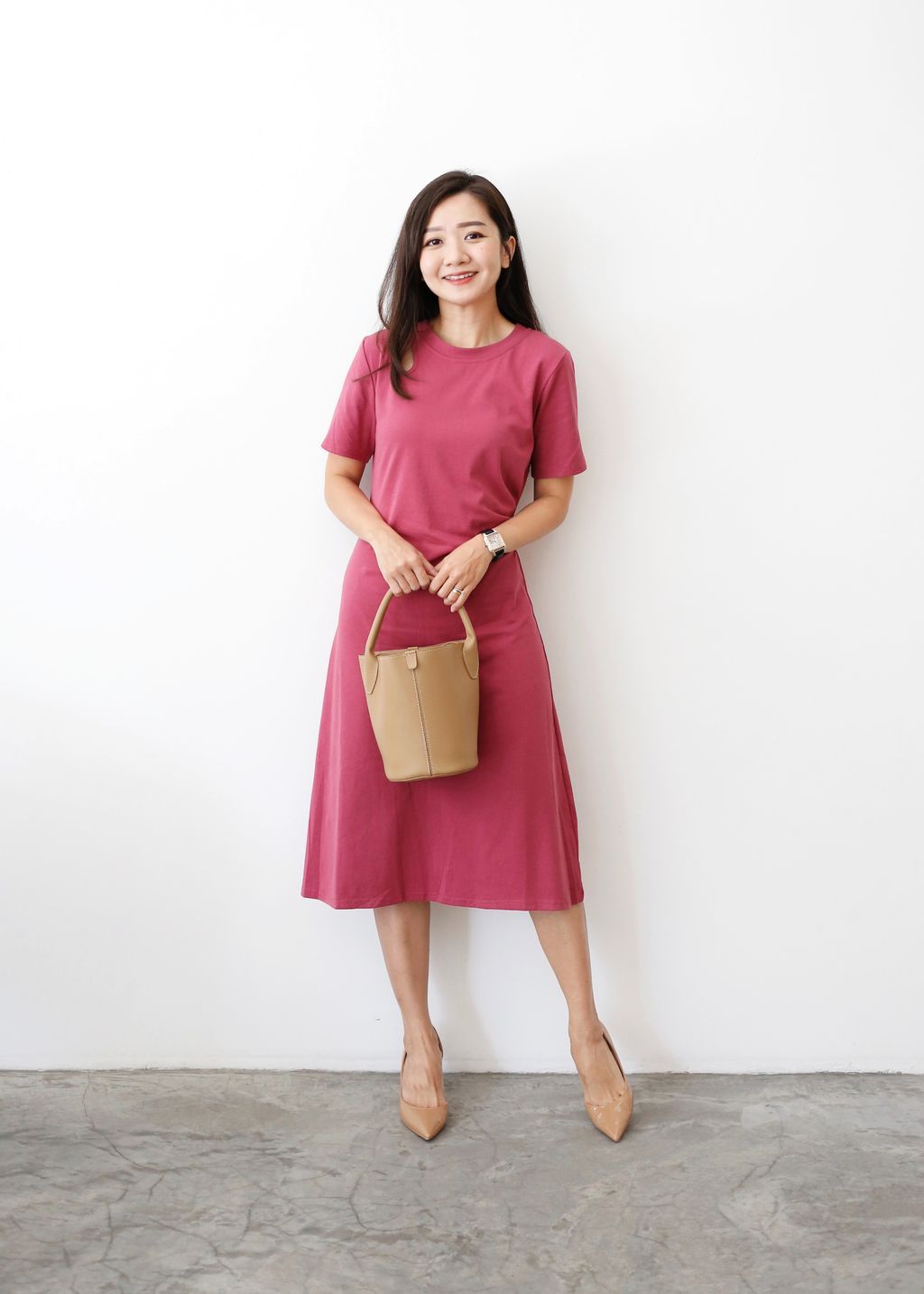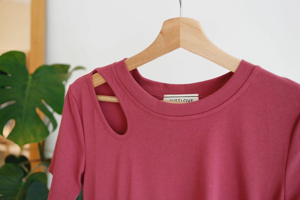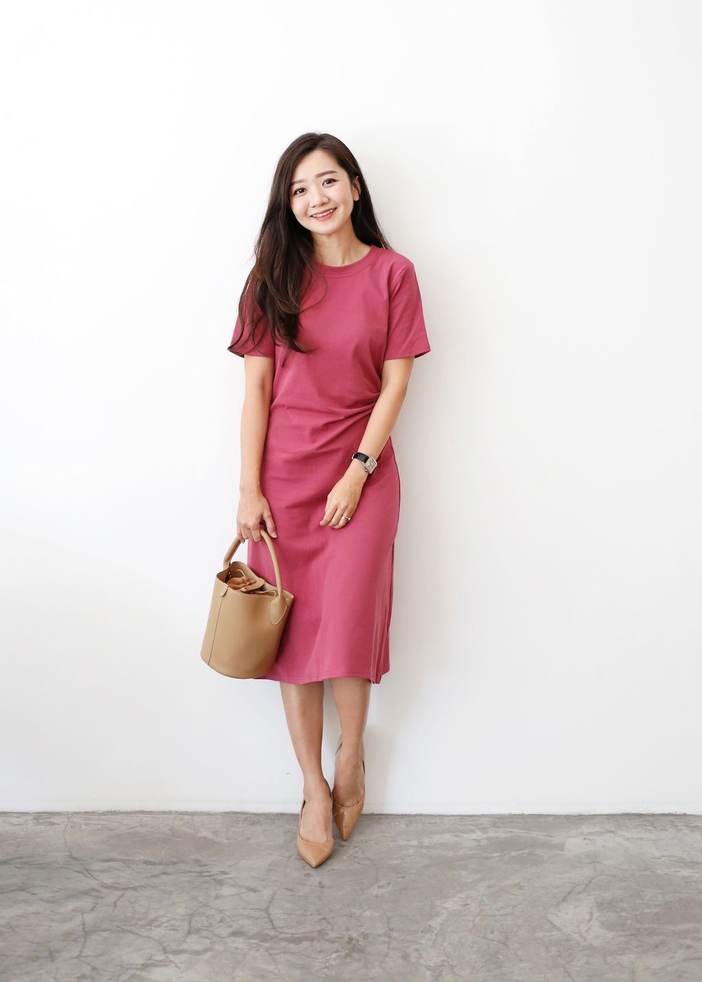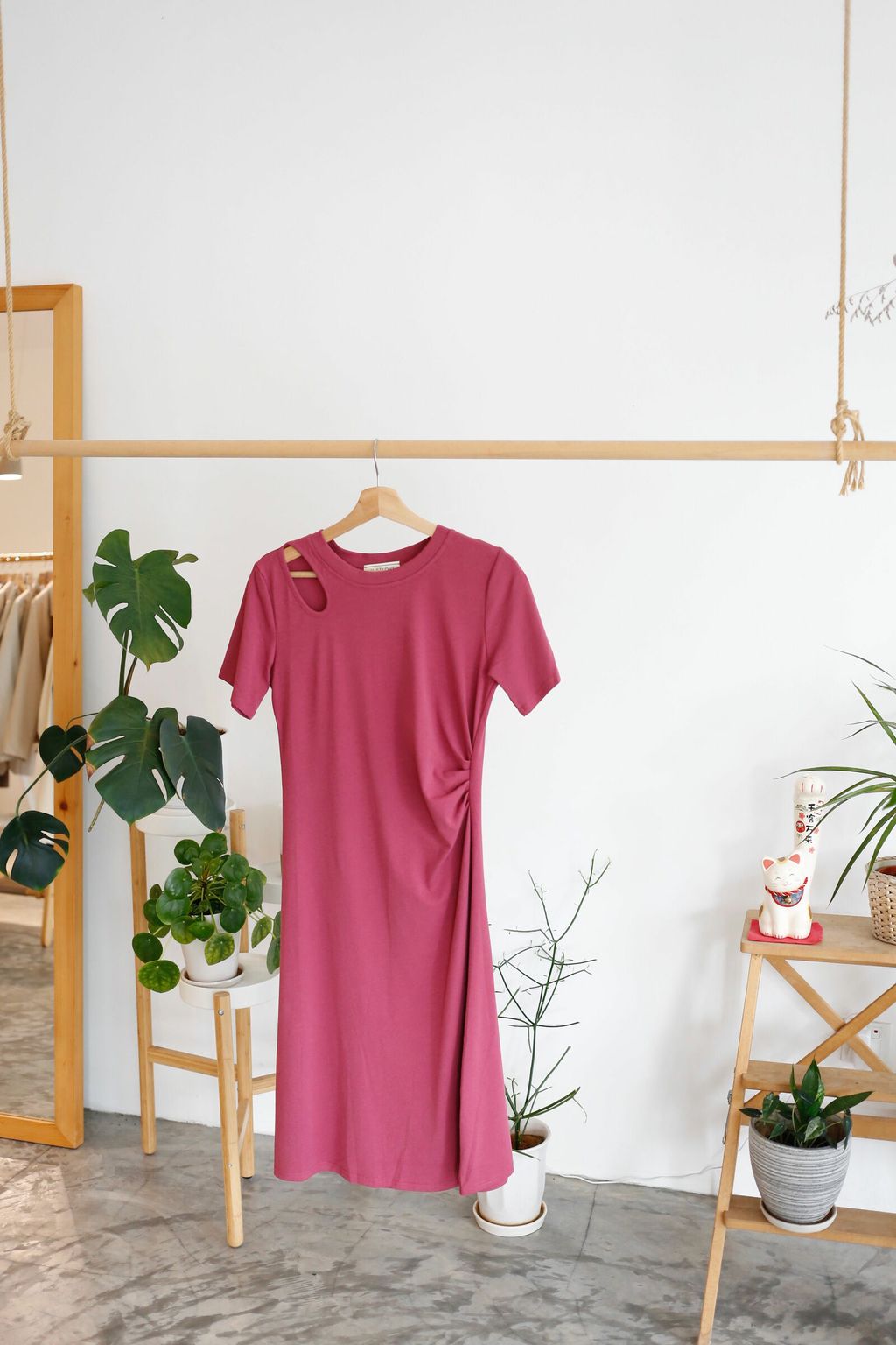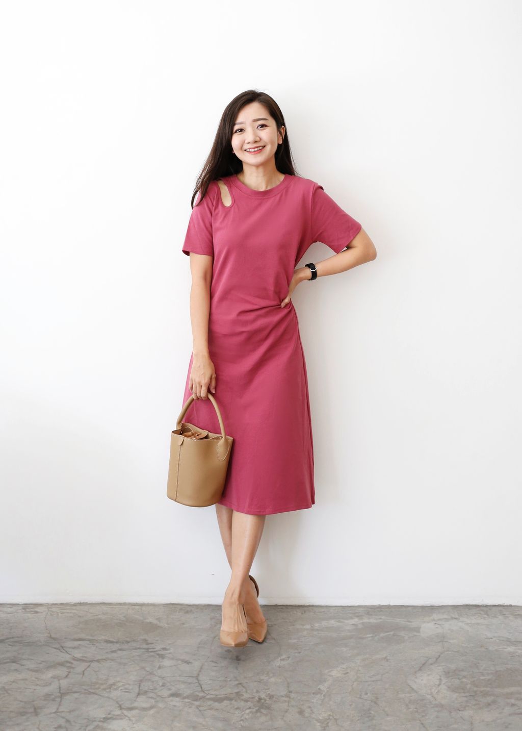 Type: Shoulder Cut-Out Midi Dress | Cotton Fabric | Slightly Stretchable | Pleated Waist Design