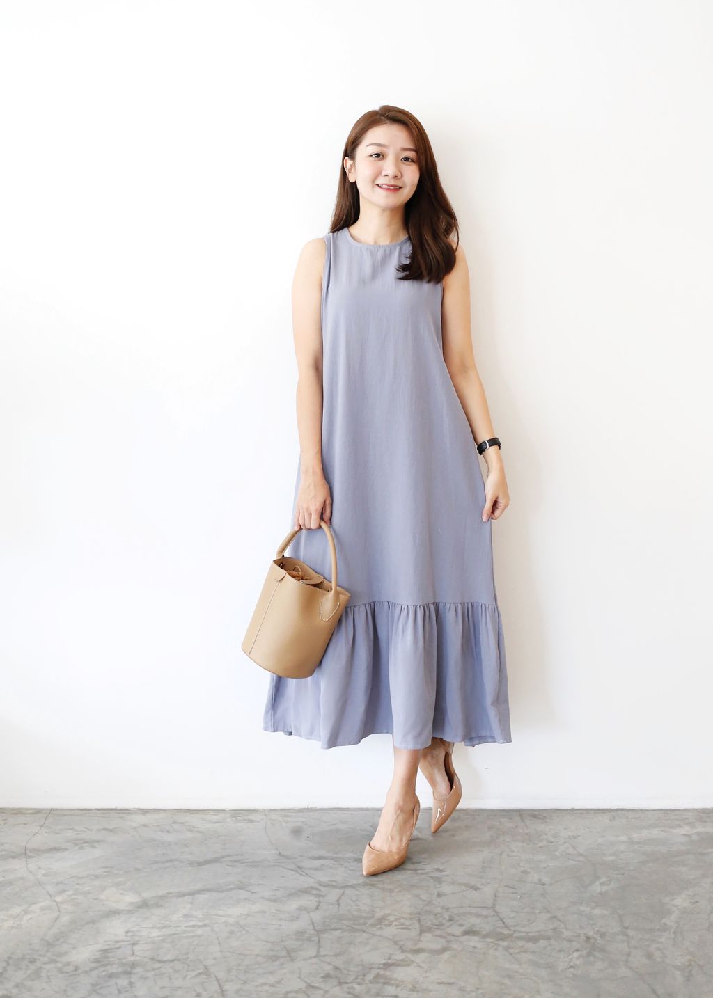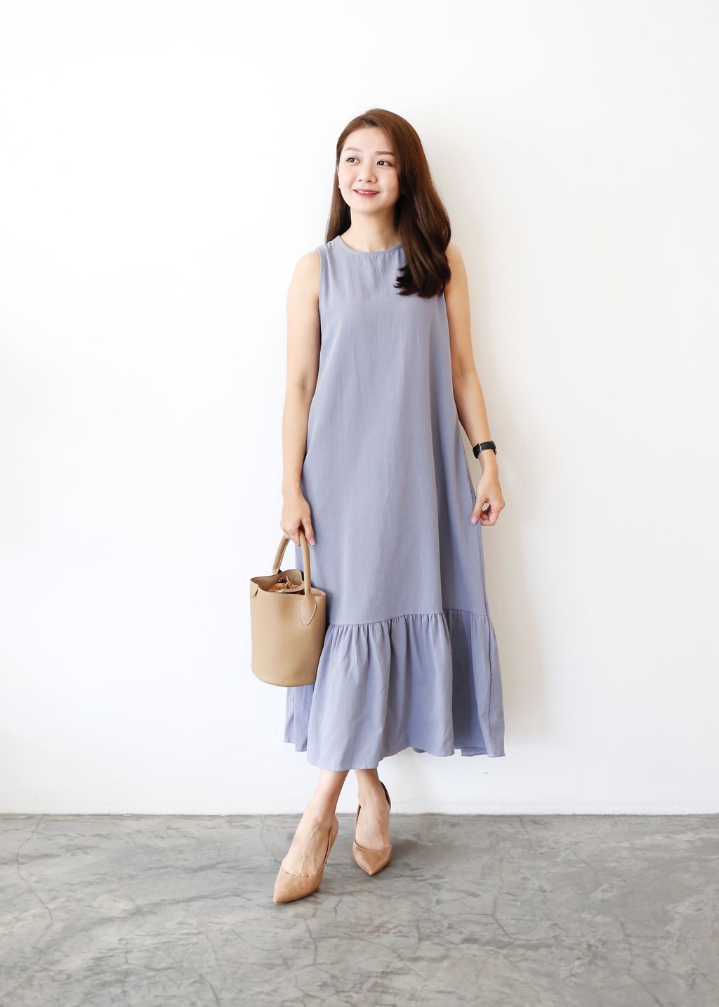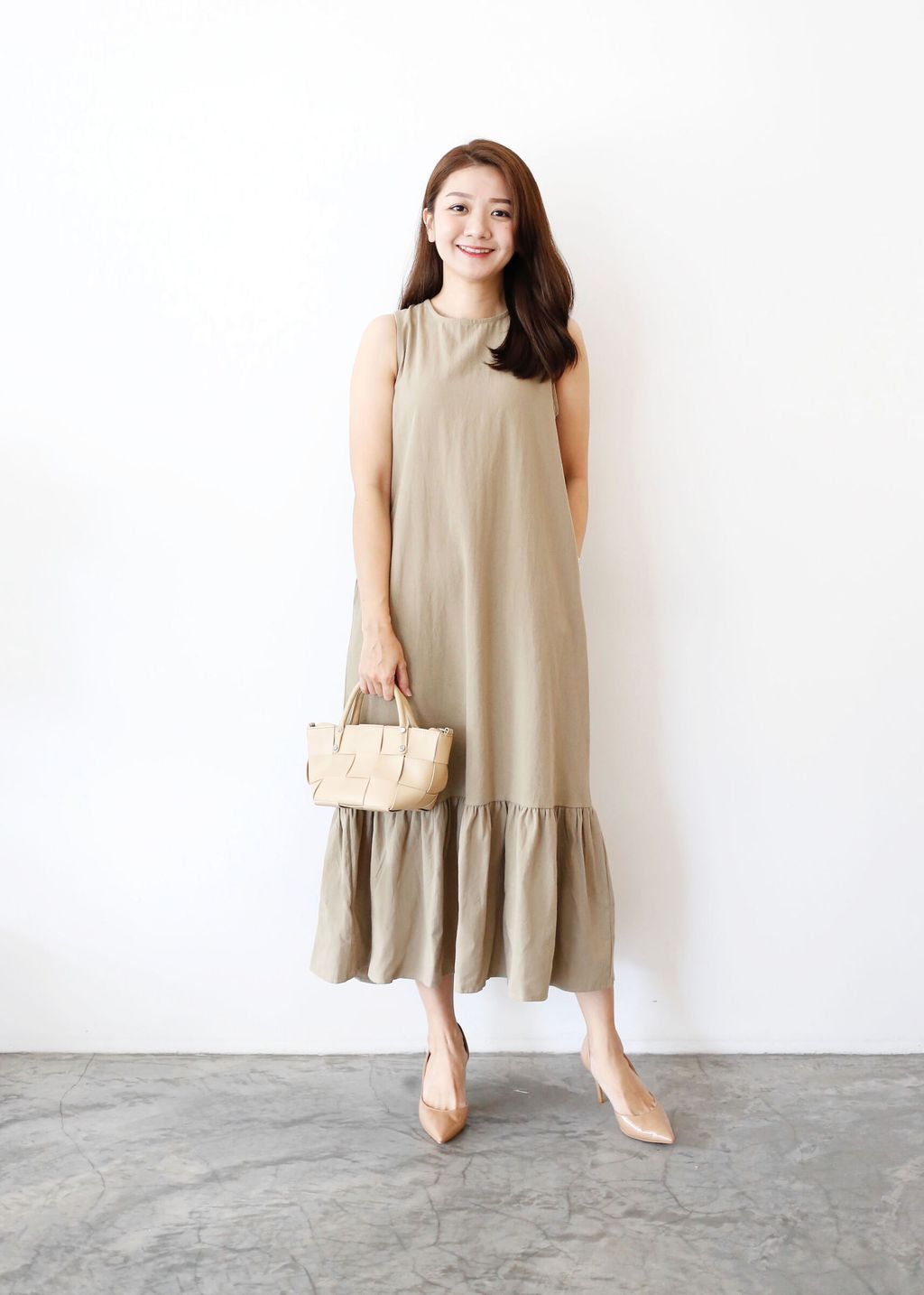 Type: Sleeveless Flared Hem Midi Dress | Linen Fabric | Not Stretchable | Side Pockets