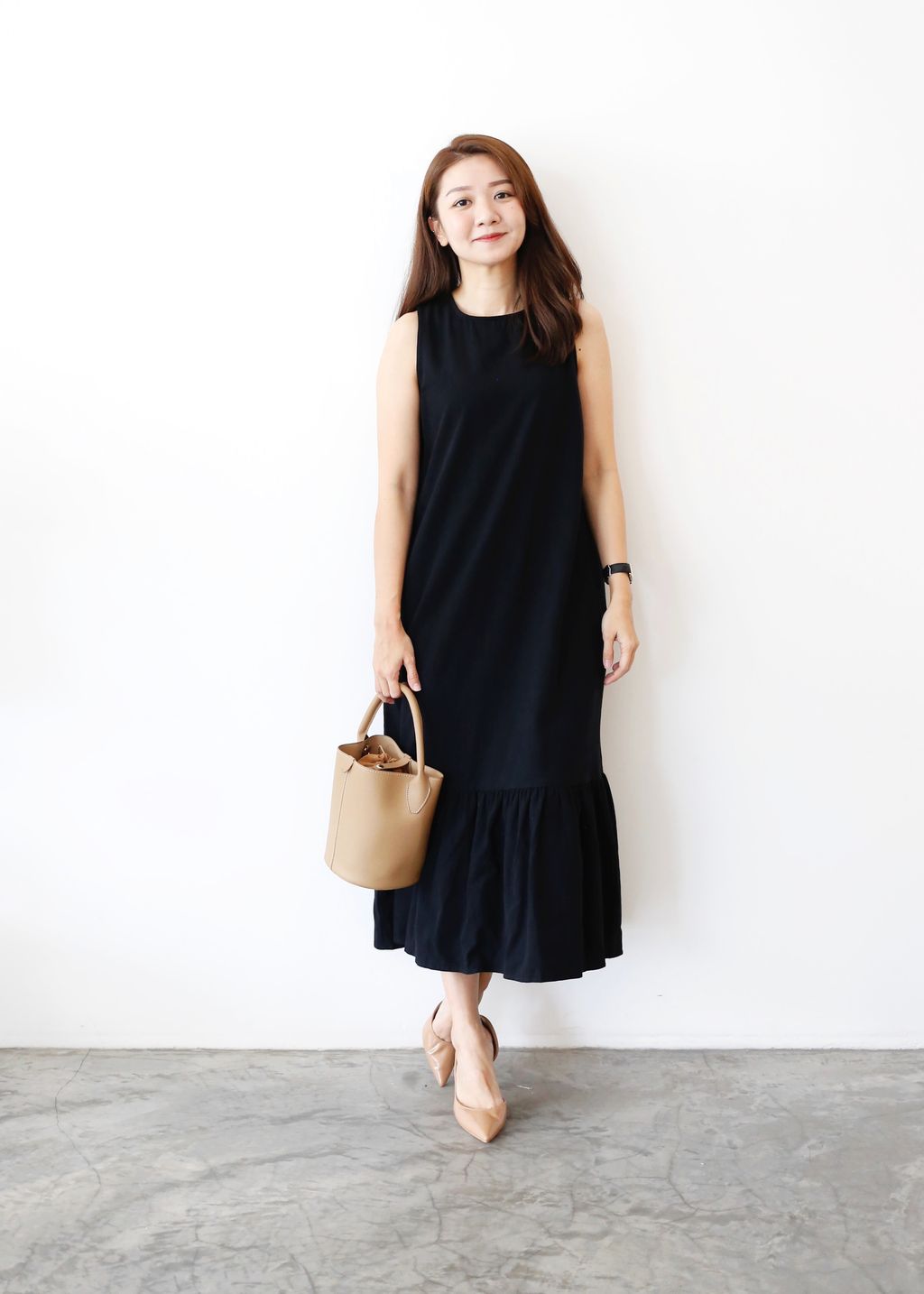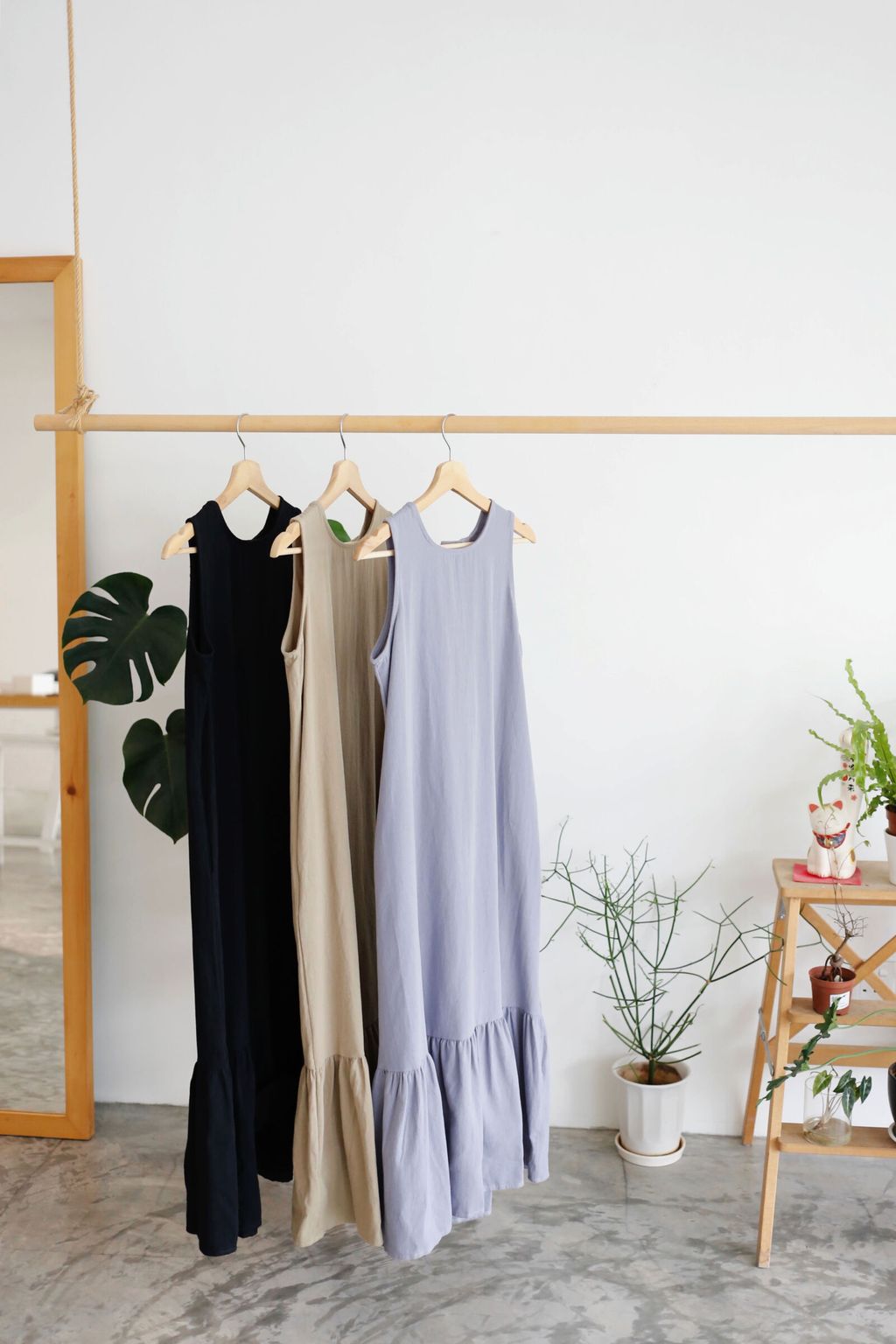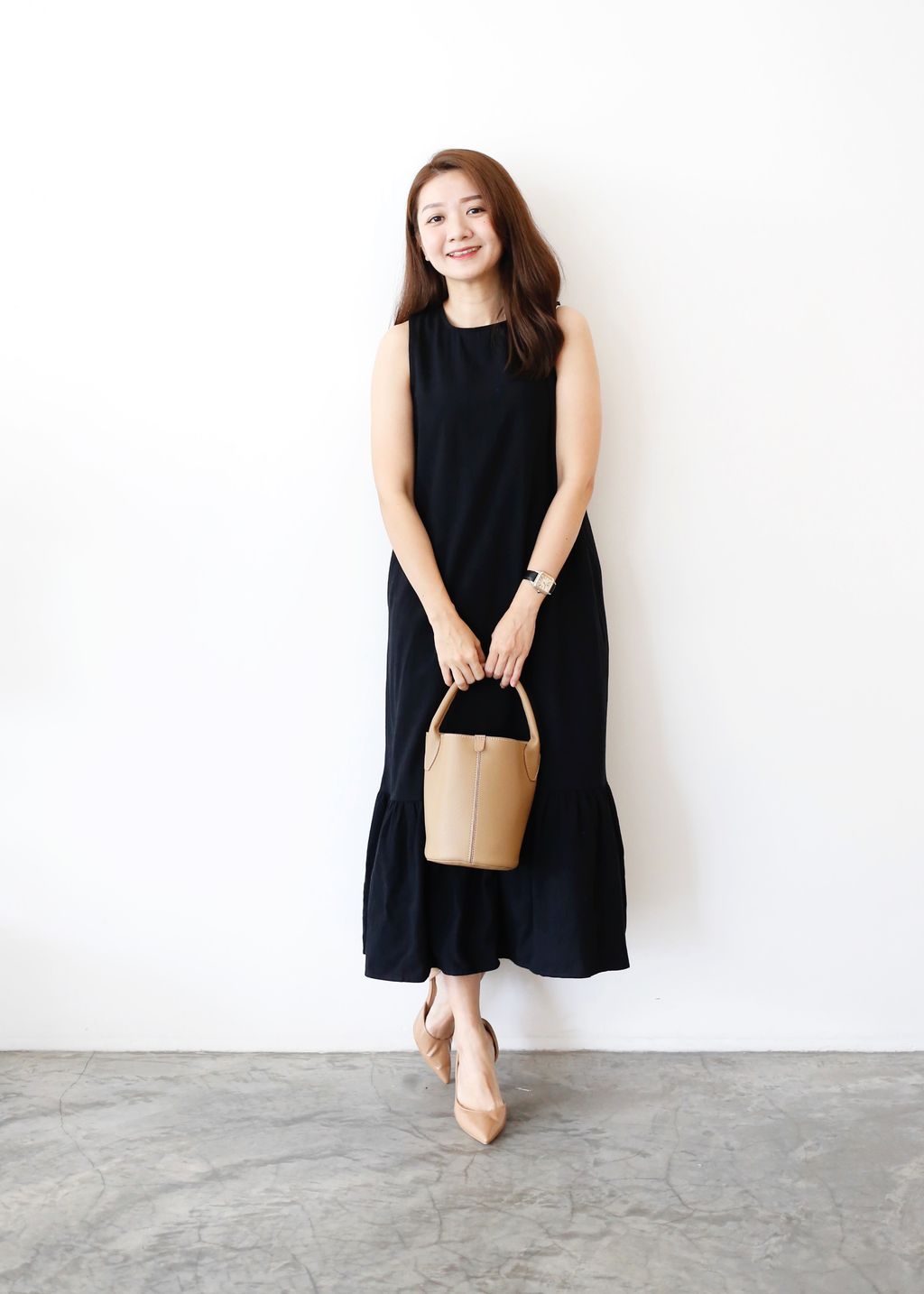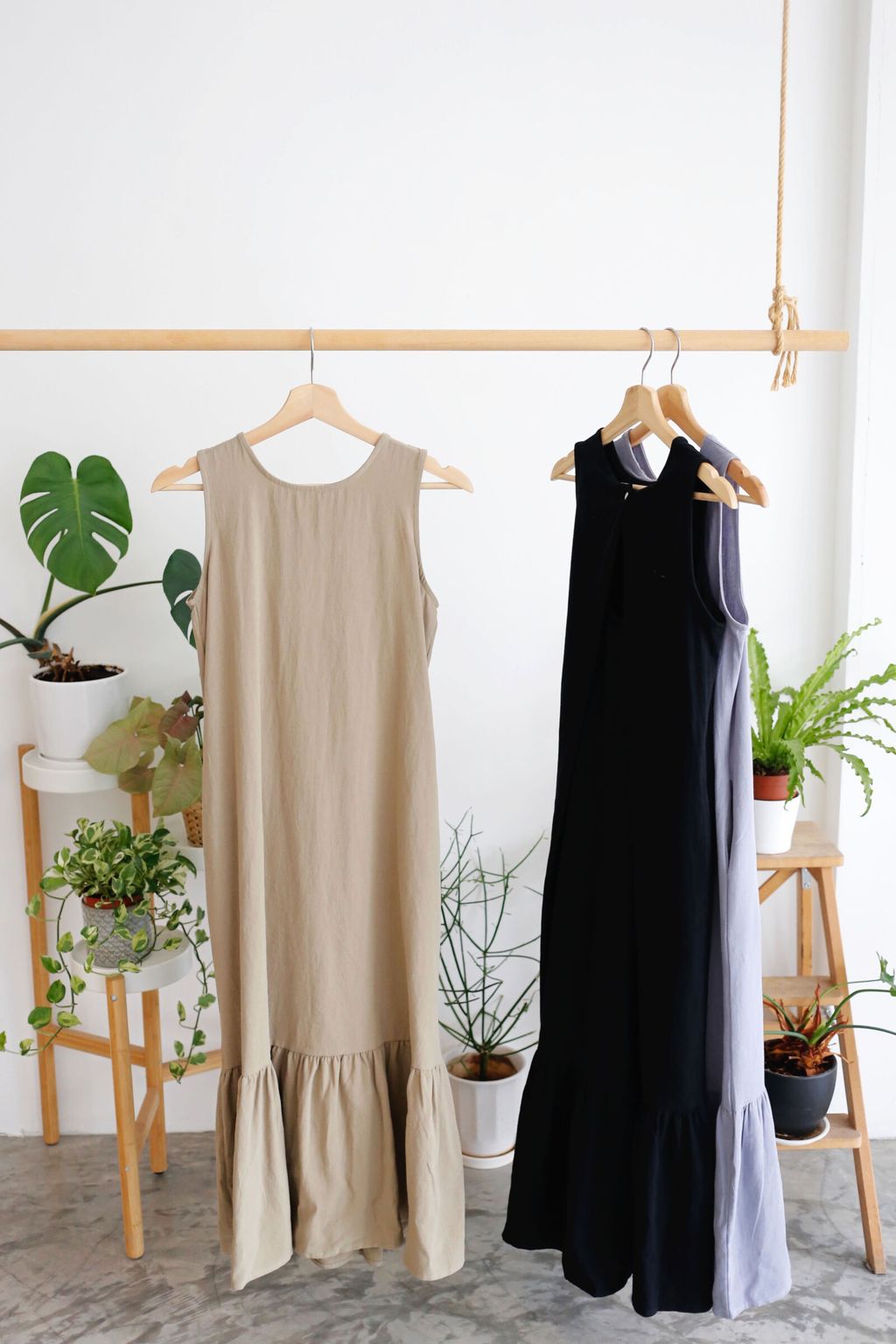 Type: Sleeveless Flared Hem Midi Dress | Linen Fabric | Not Stretchable | Side Pockets