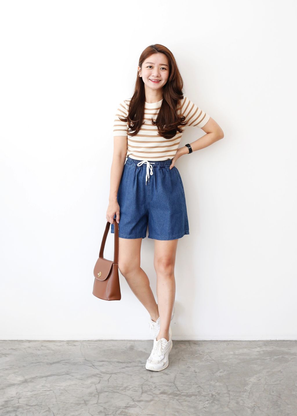 Type: Soft Denim Shorts with Drawstring | Soft Denim Fabric | Stretchable Waistband With Drawstring | Side Pockets