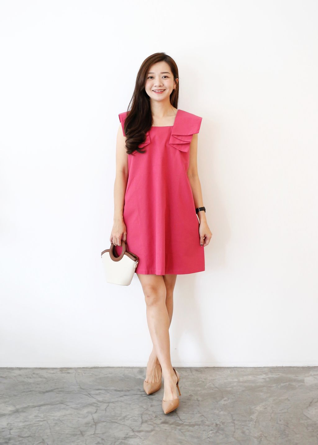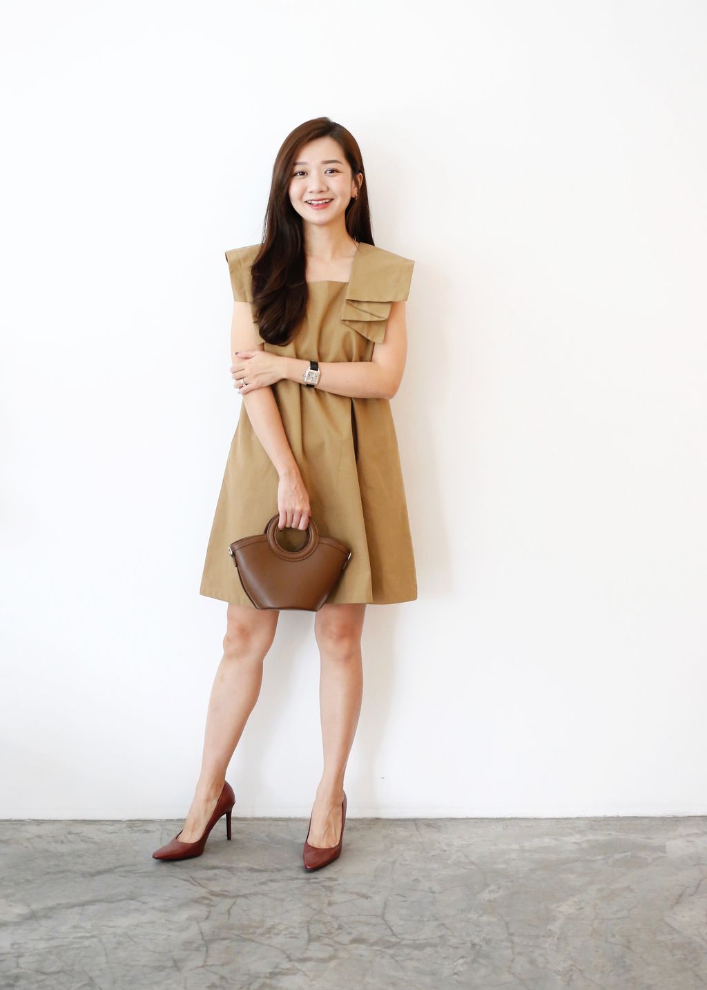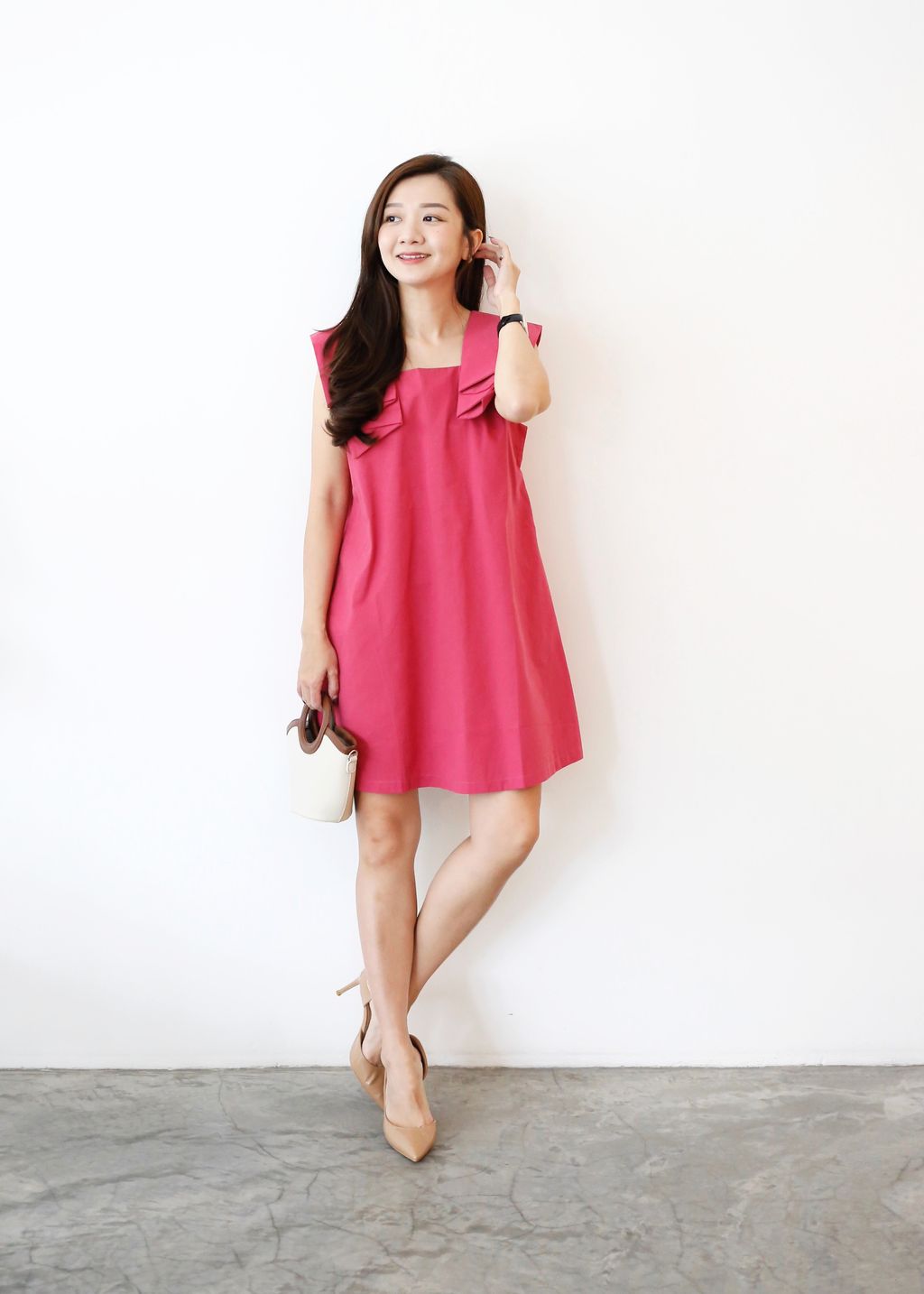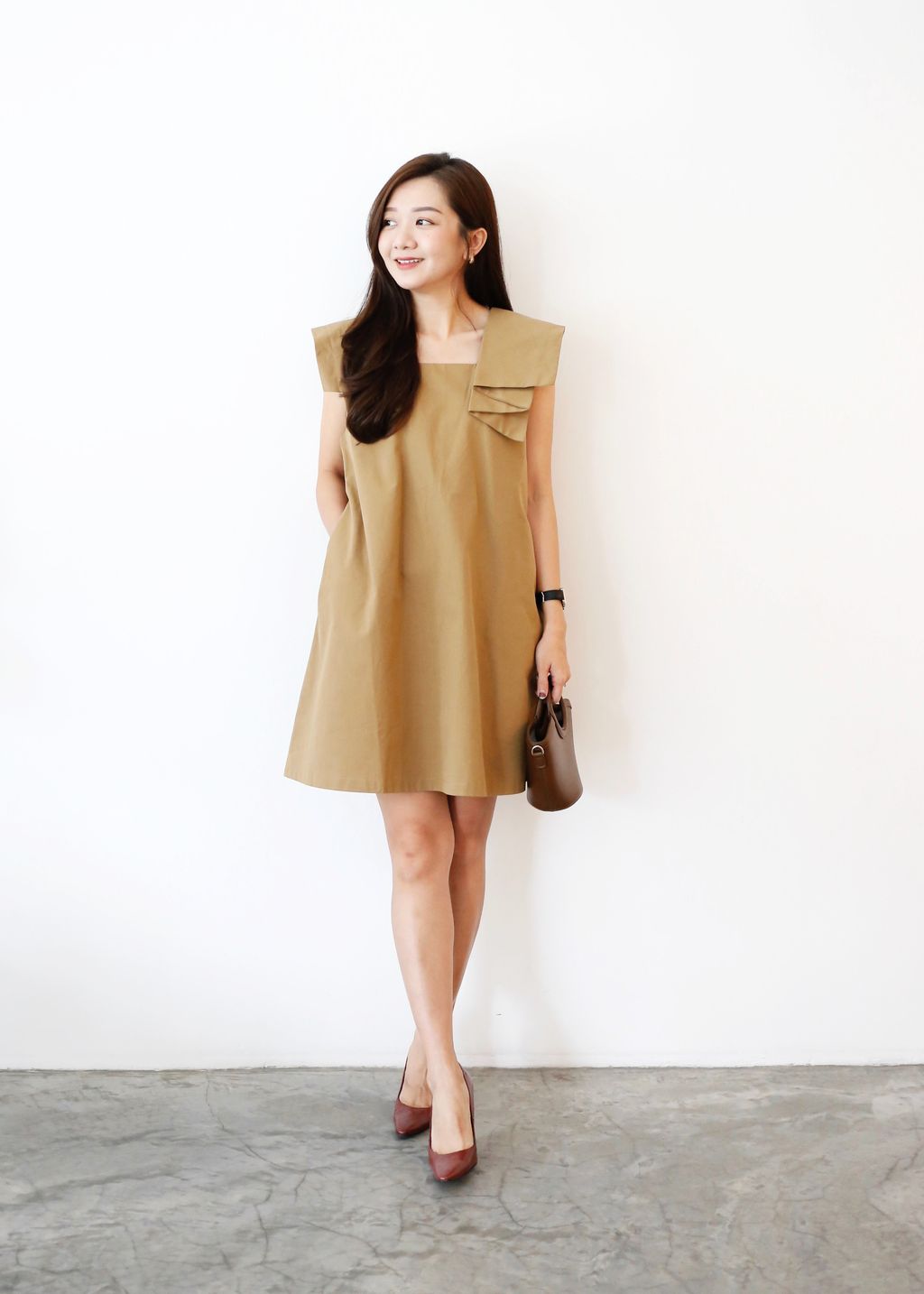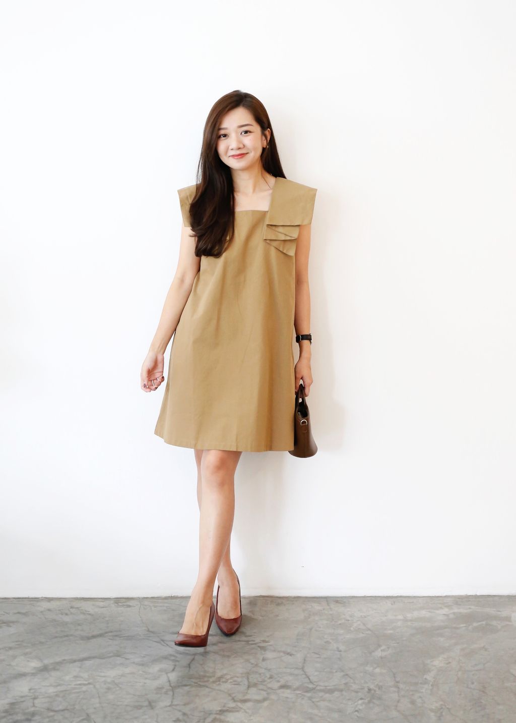 Type: Square Neck Folded Sleeves Dress | A-Line Design | Cotton Fabric | Side Pockets | Not Strechable | Kindly Take Note on Bigger Arm Hole Gap | Short For Height > 165cm | Loose Type Dress