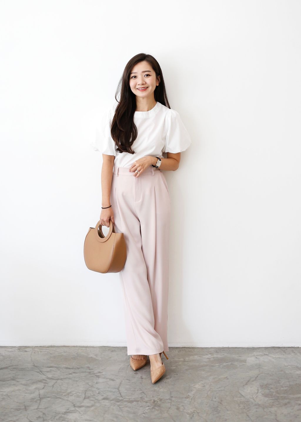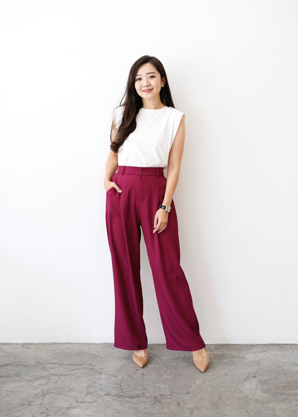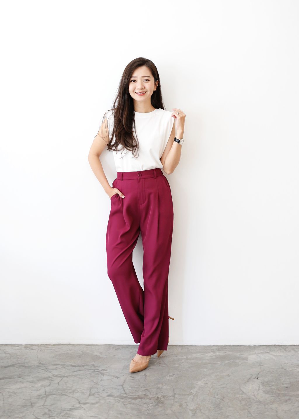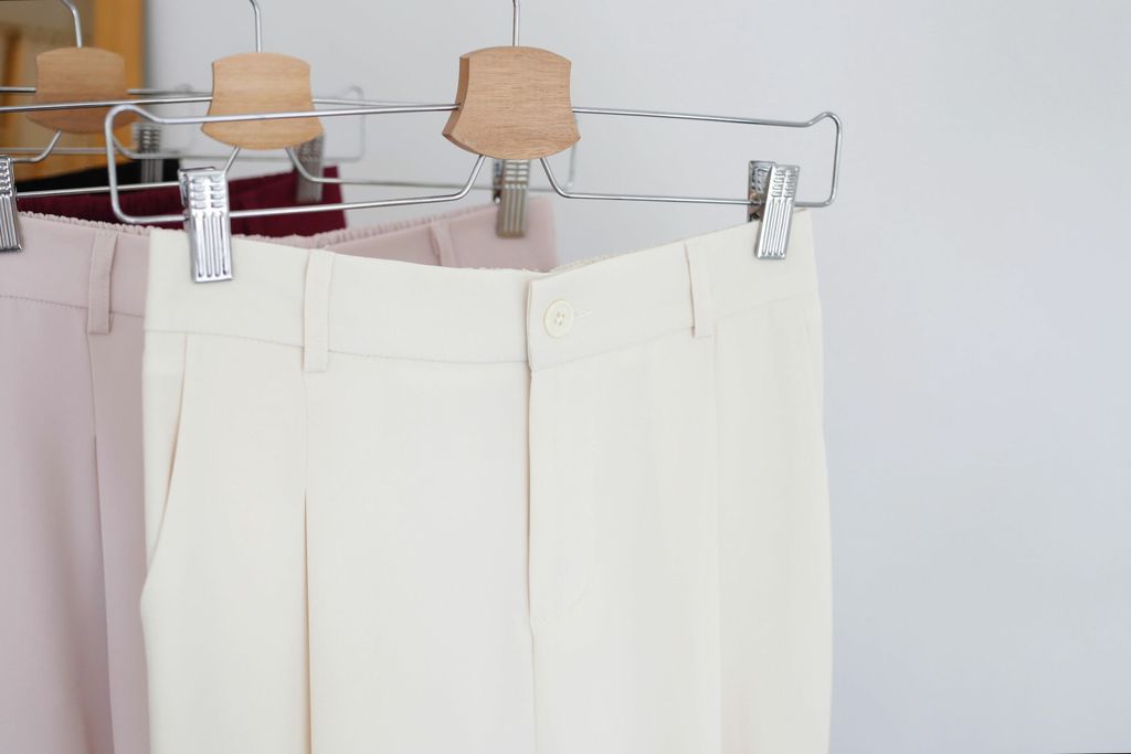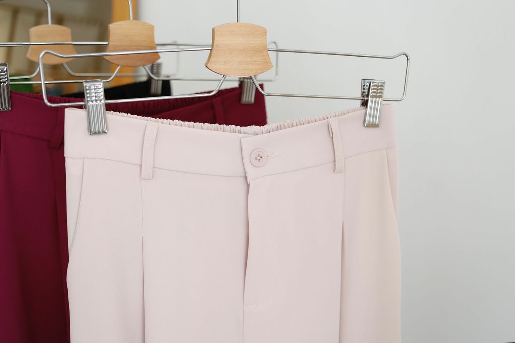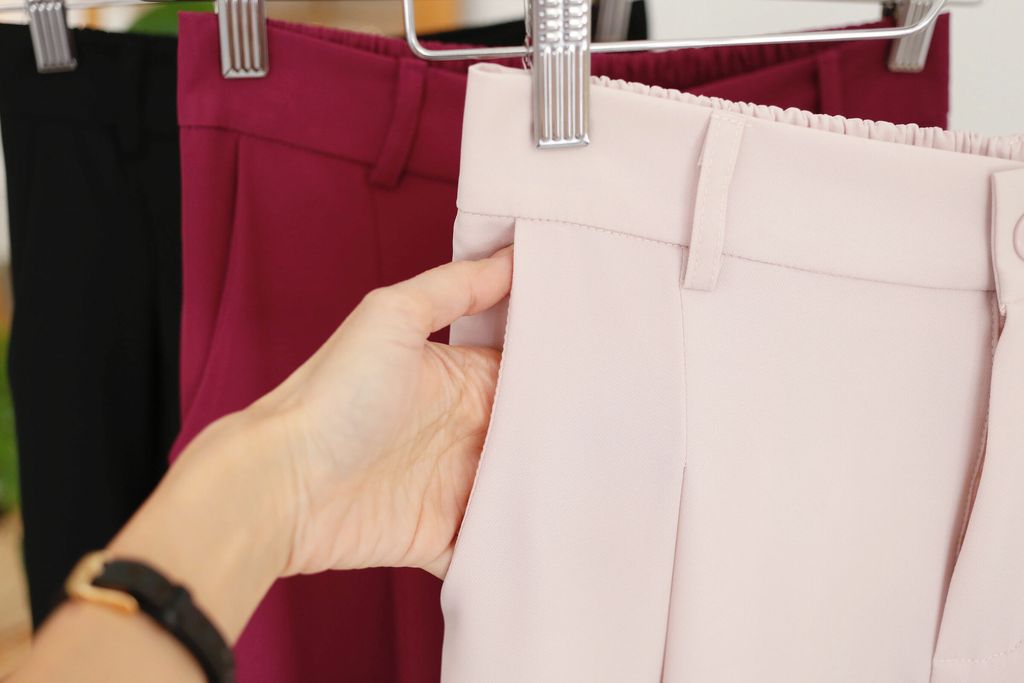 Type: Straight Cut Suit Pants | Soft Suit Fabric | Front Zipper | Side Pockets | Stretchable Waistband | Light Color Panties Recommended for Cream and Light Pink | Long for Height <161cm, Unless Wear with Heels
