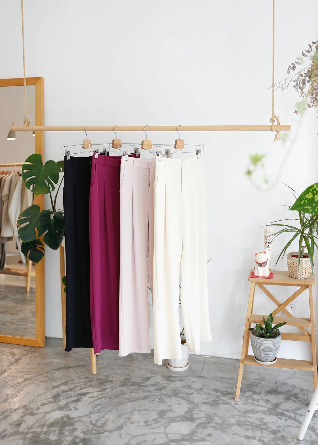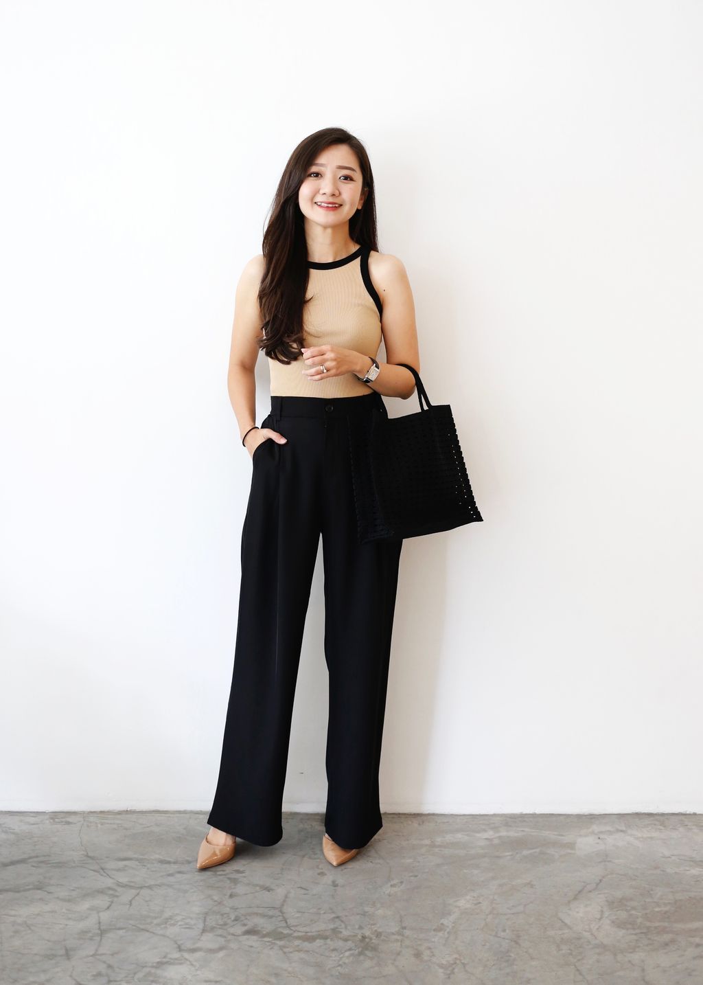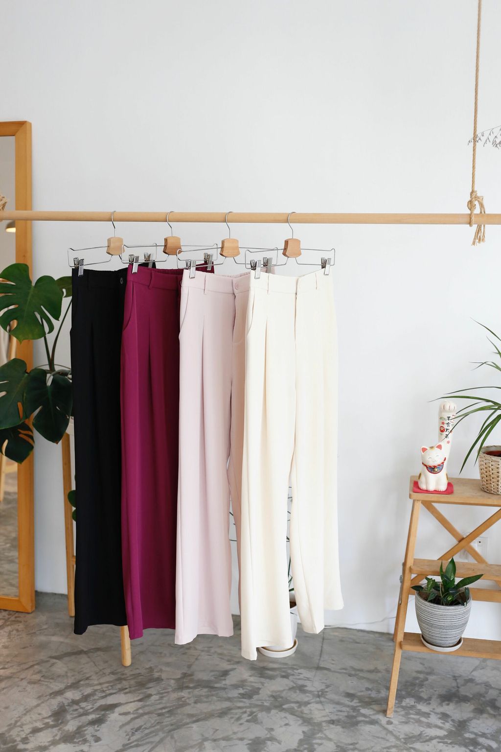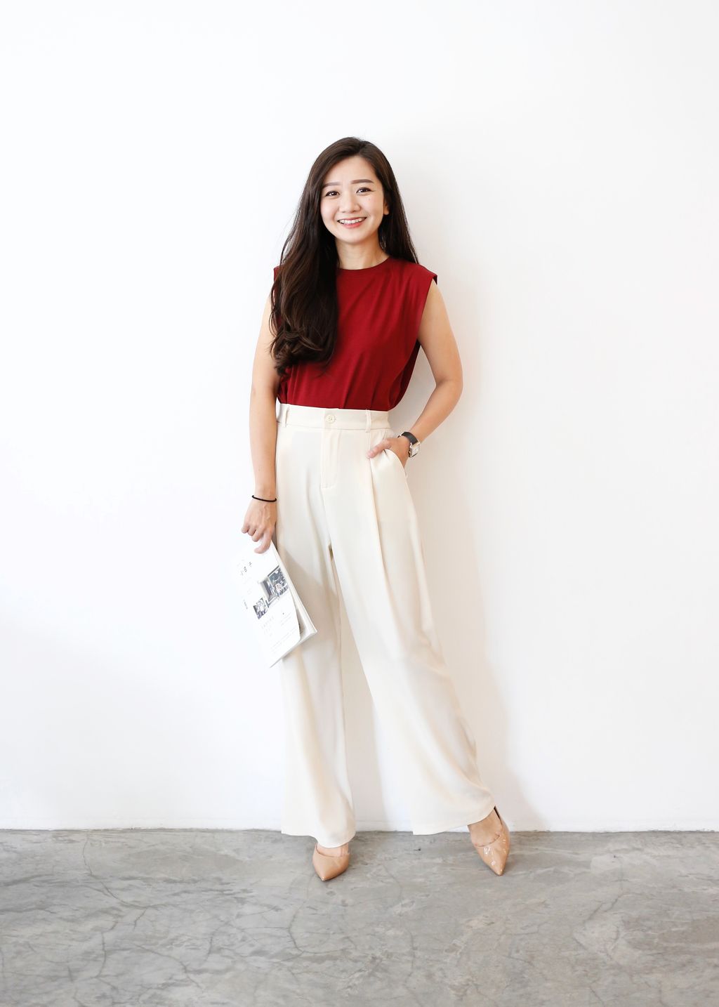 Type: Straight Cut Suit Pants | Soft Suit Fabric | Front Zipper | Side Pockets | Stretchable Waistband | Light Color Panties Recommended for Cream and Light Pink | Long for Height <161cm, Unless Wear with Heels