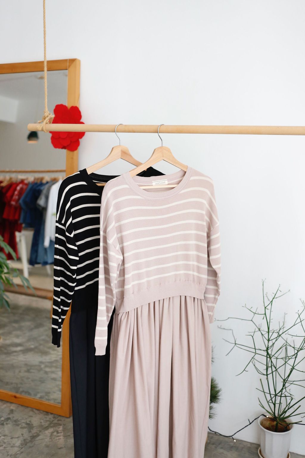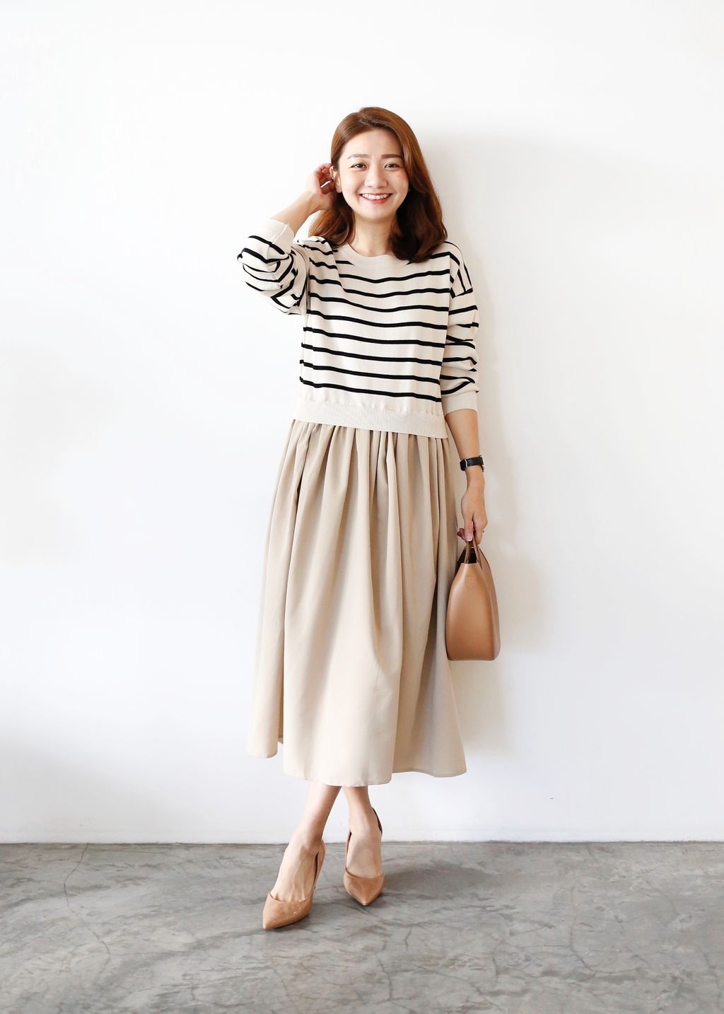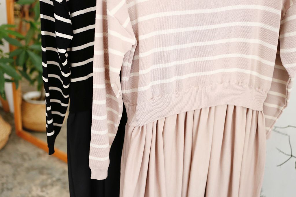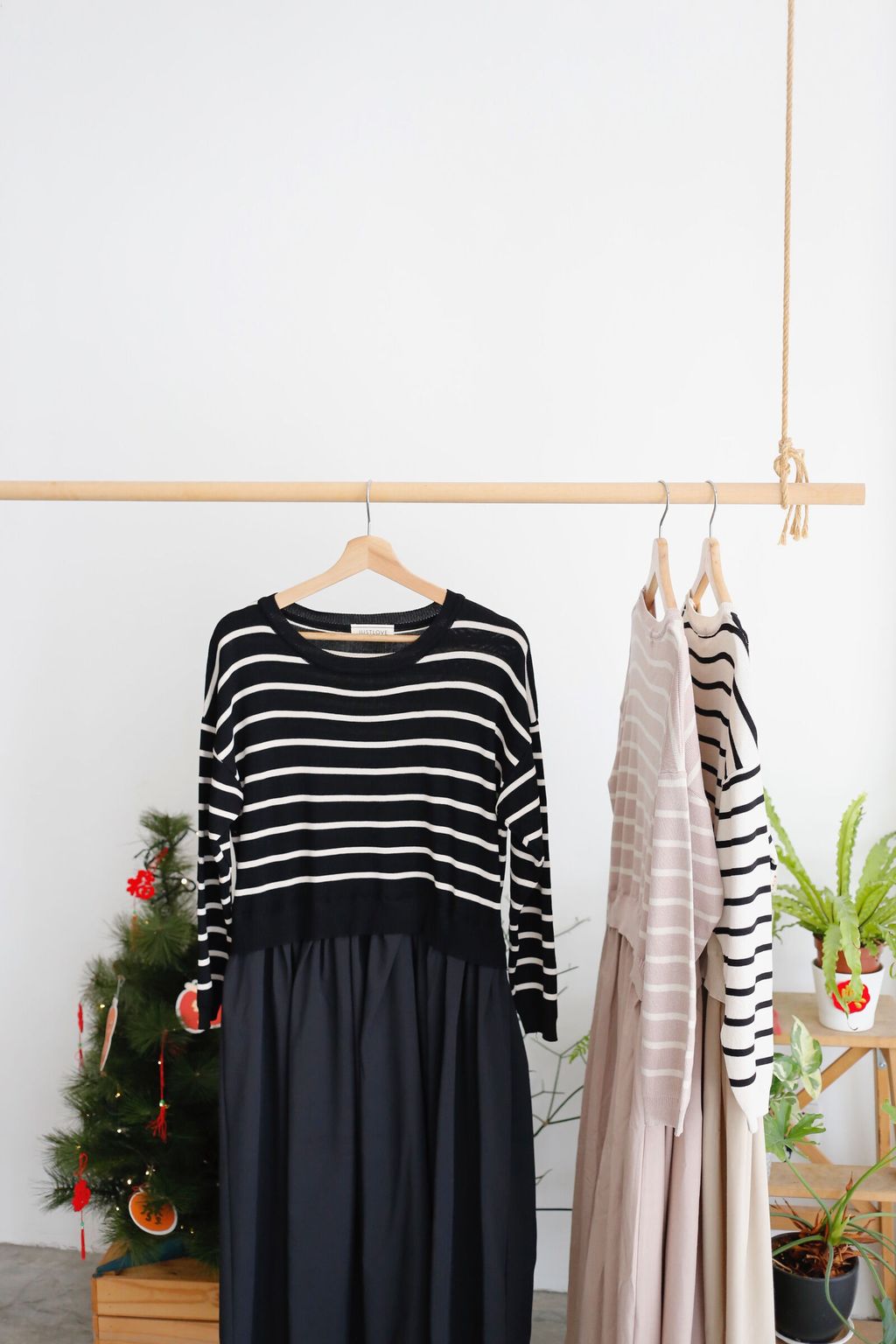 Type: Stripey Knit Fake-2-Piece Pullover Dress | PREMIUM SERIES | Top Stripey Knit Fabric, Bottom Cotton Fabric | Kindly Do Not Soak