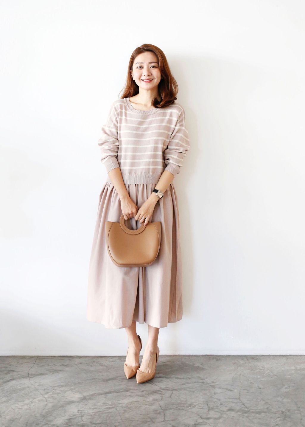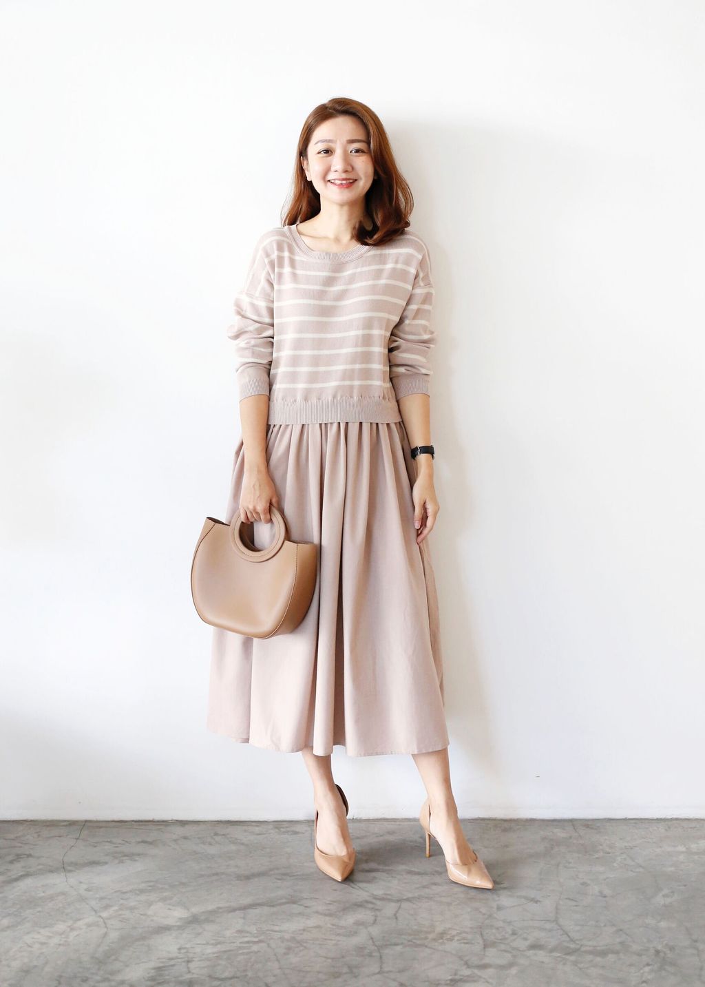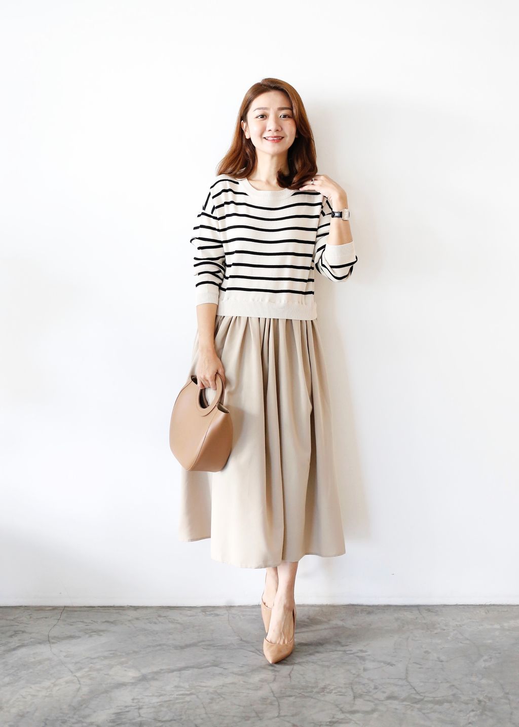 Type: Stripey Knit Fake-2-Piece Pullover Dress | PREMIUM SERIES | Top Stripey Knit Fabric, Bottom Cotton Fabric | Kindly Do Not Soak