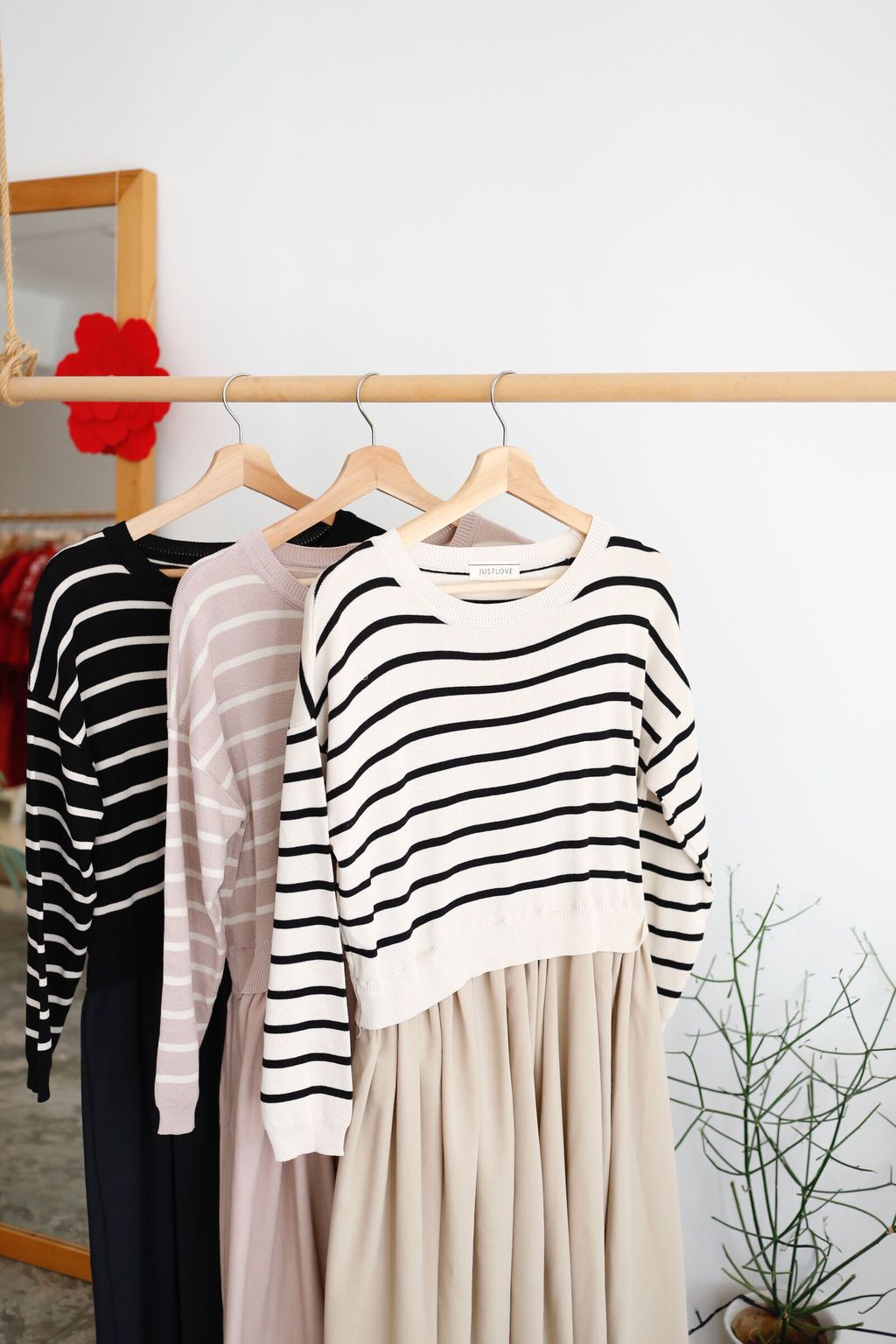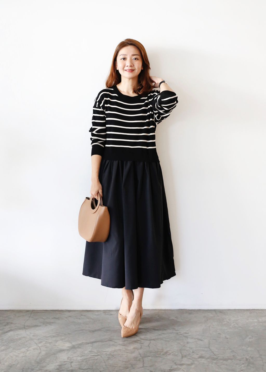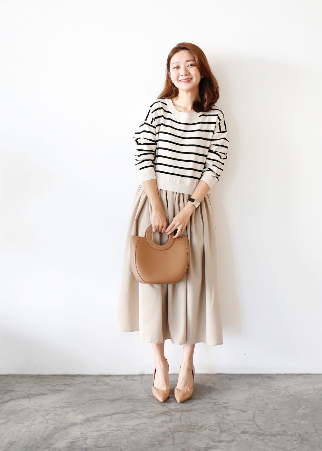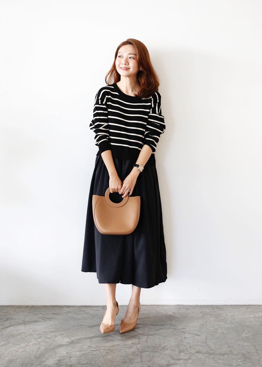 Type: Stripey Knit Fake-2-Piece Pullover Dress | PREMIUM SERIES | Top Stripey Knit Fabric, Bottom Cotton Fabric | Kindly Do Not Soak
