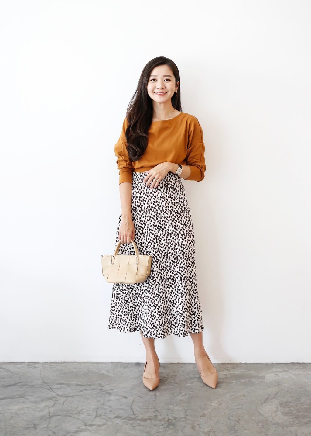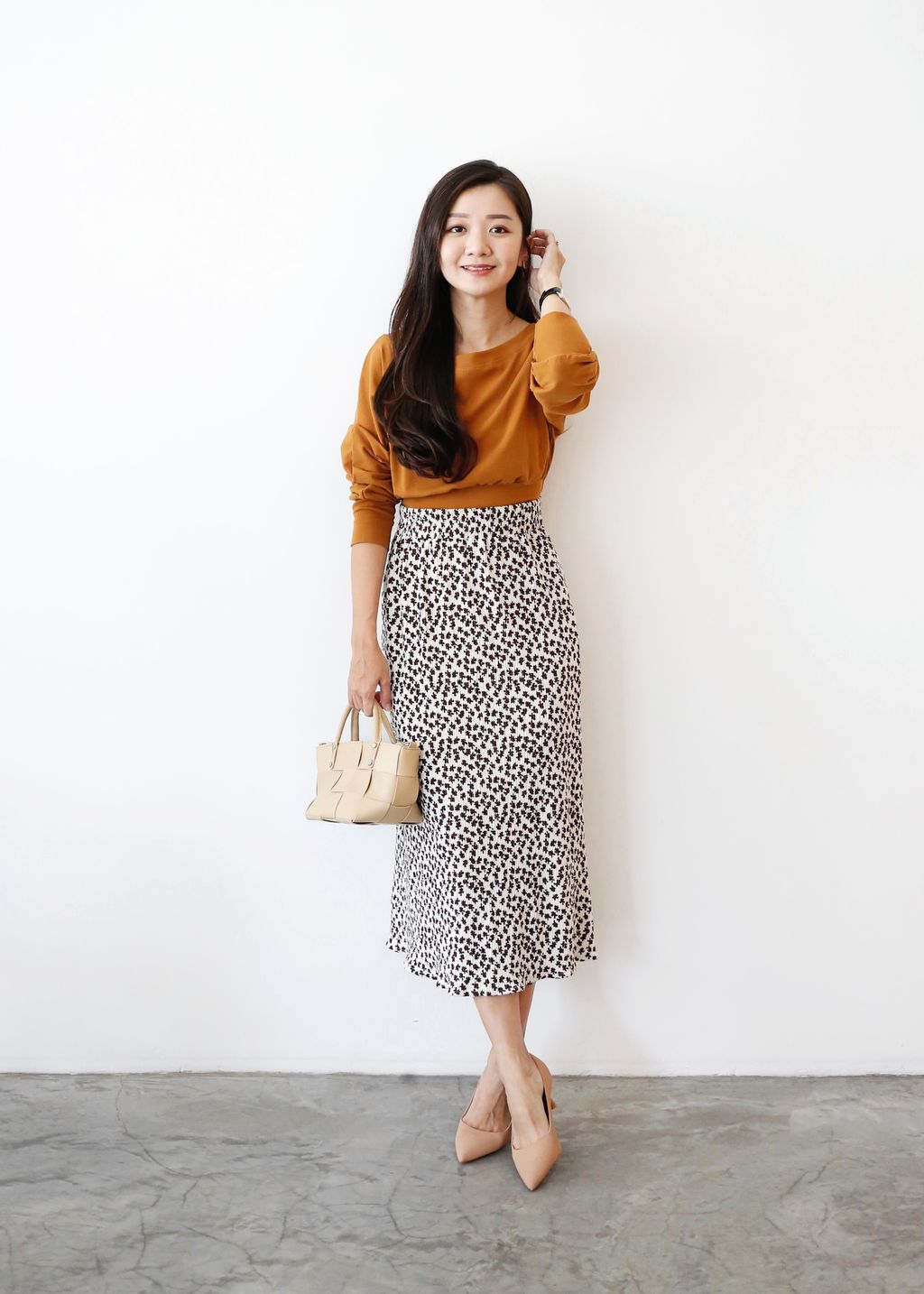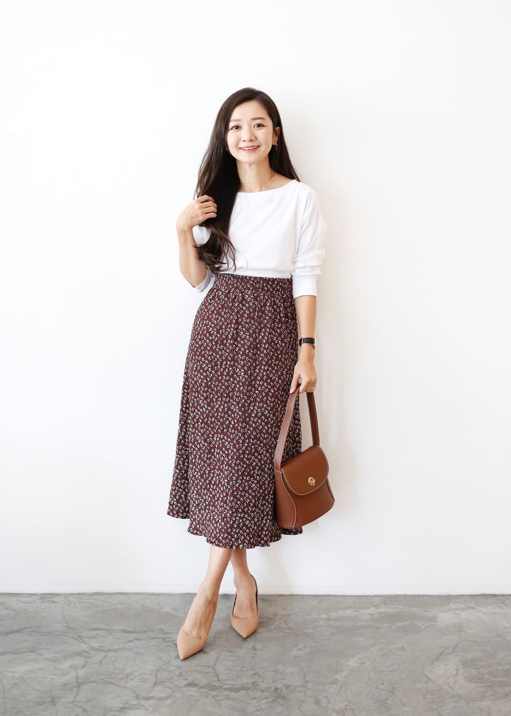 Type: Suede Wrinkle Floral A-Line Midi Skirt | Stretchable Waistband
