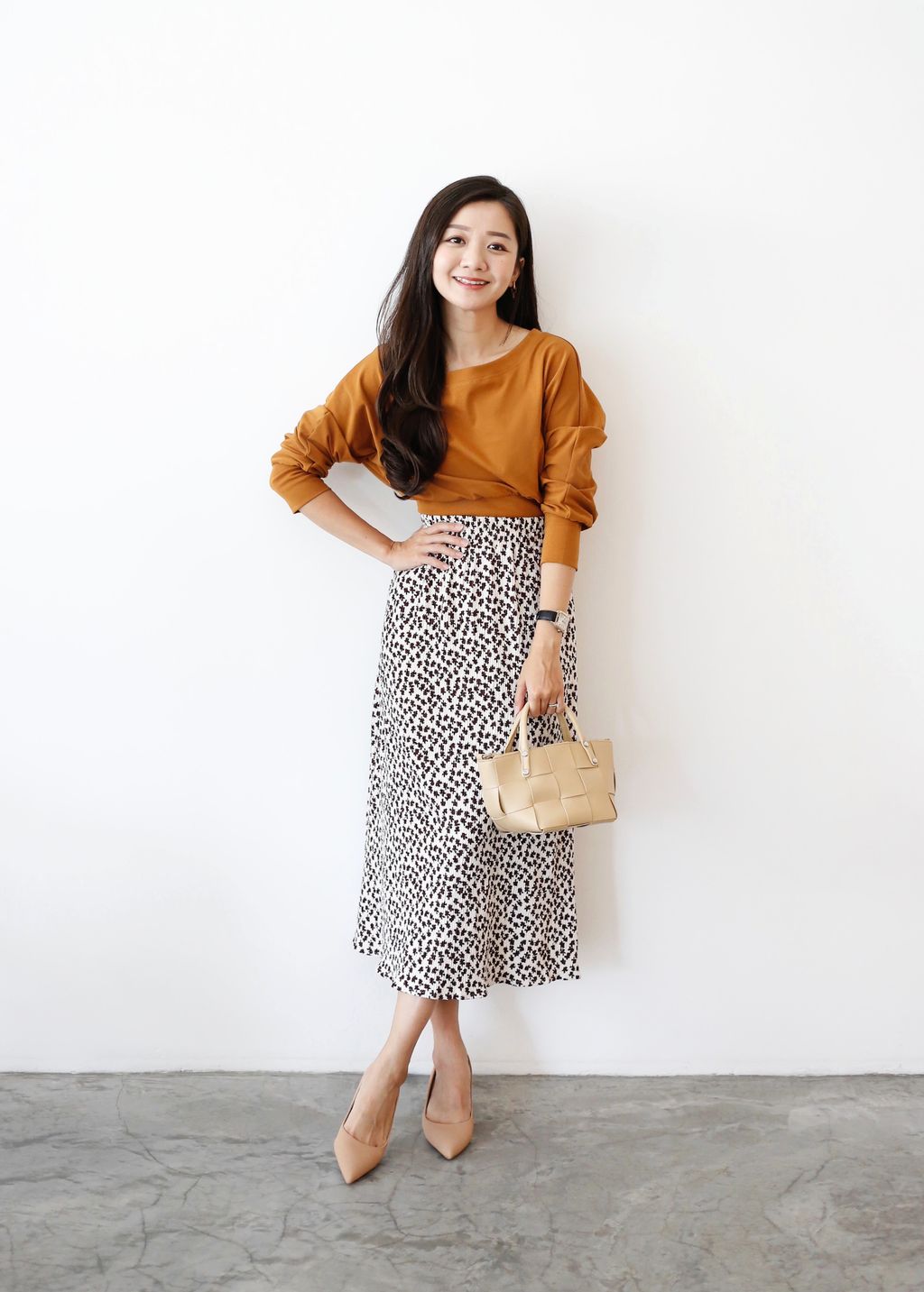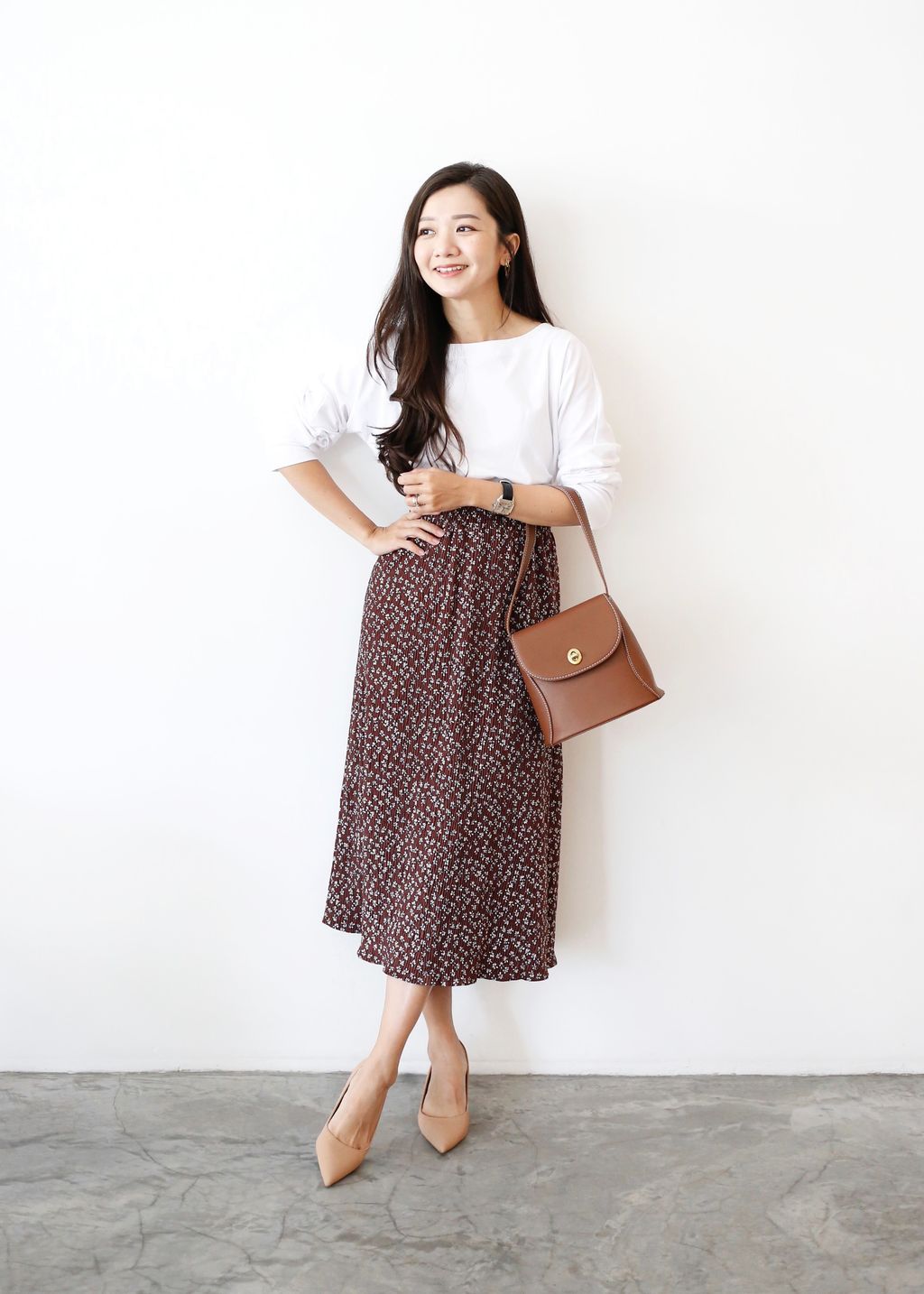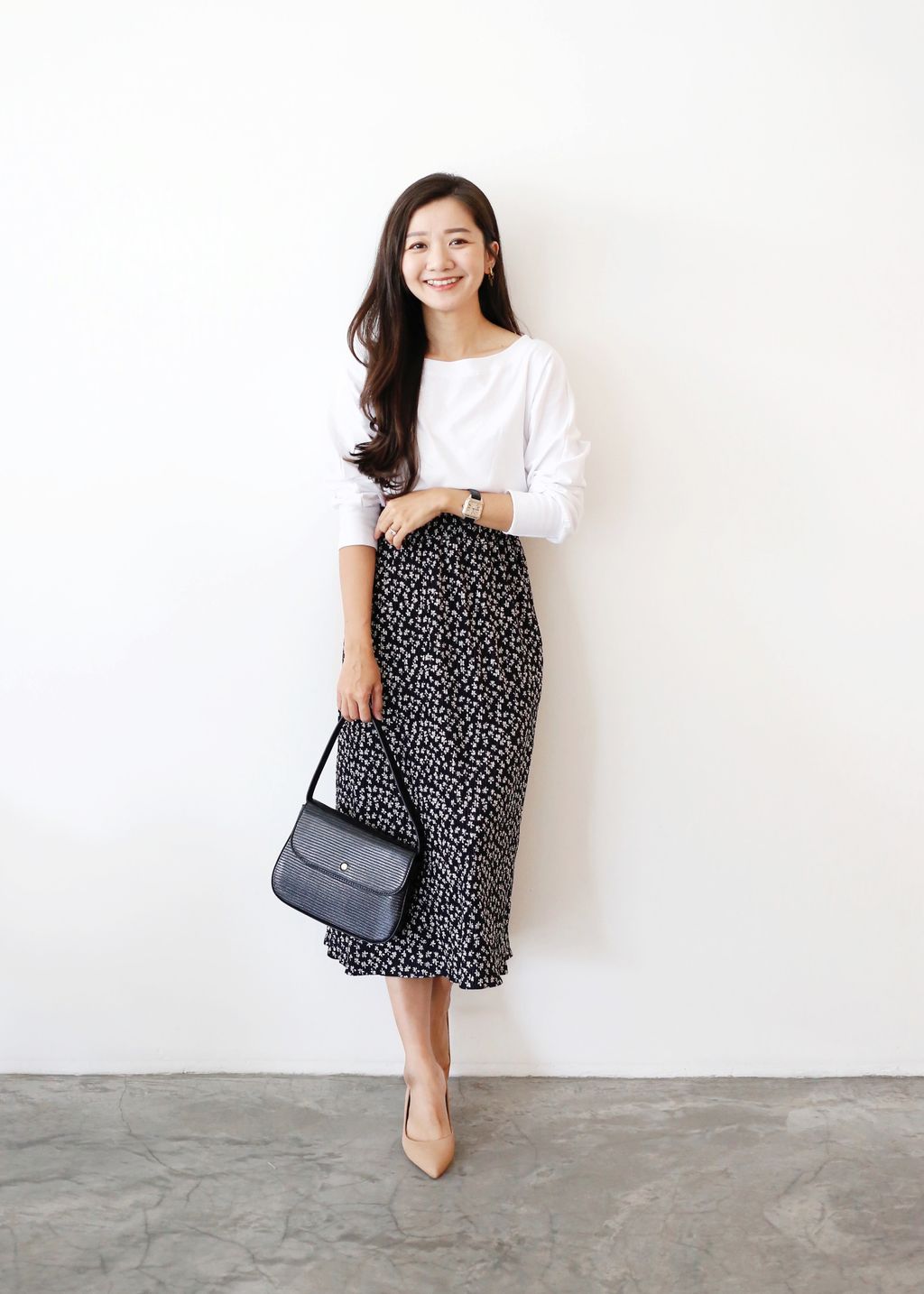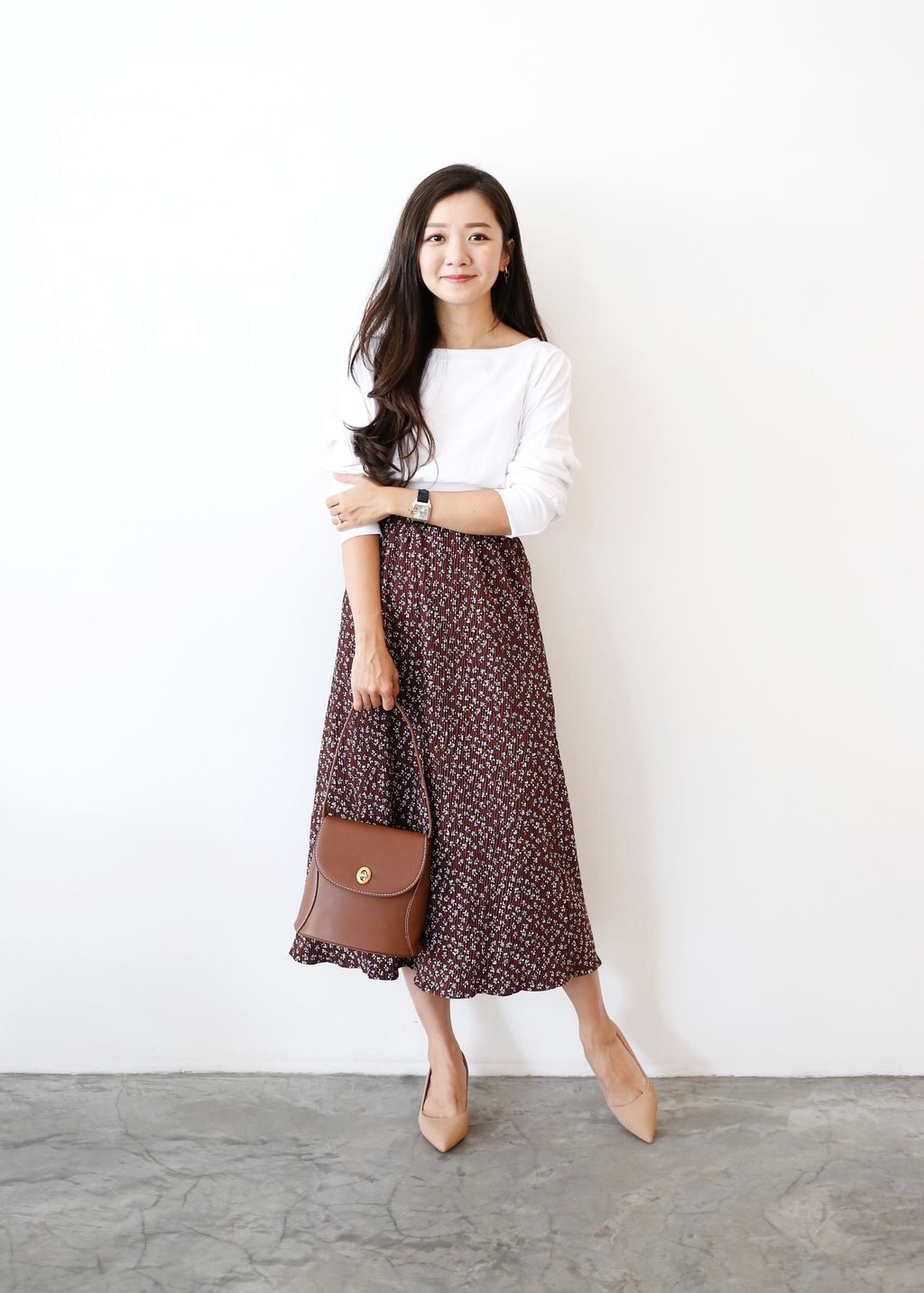 Type: Suede Wrinkle Floral A-Line Midi Skirt | Stretchable Waistband