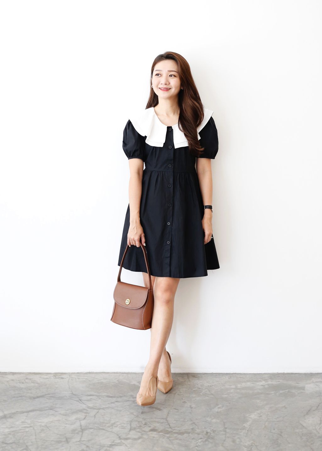 Type: Tiered Collar Button Through Skater Dress | Cotton Fabric | Tie-Back Design | Button Through | Kindly Do No Soak