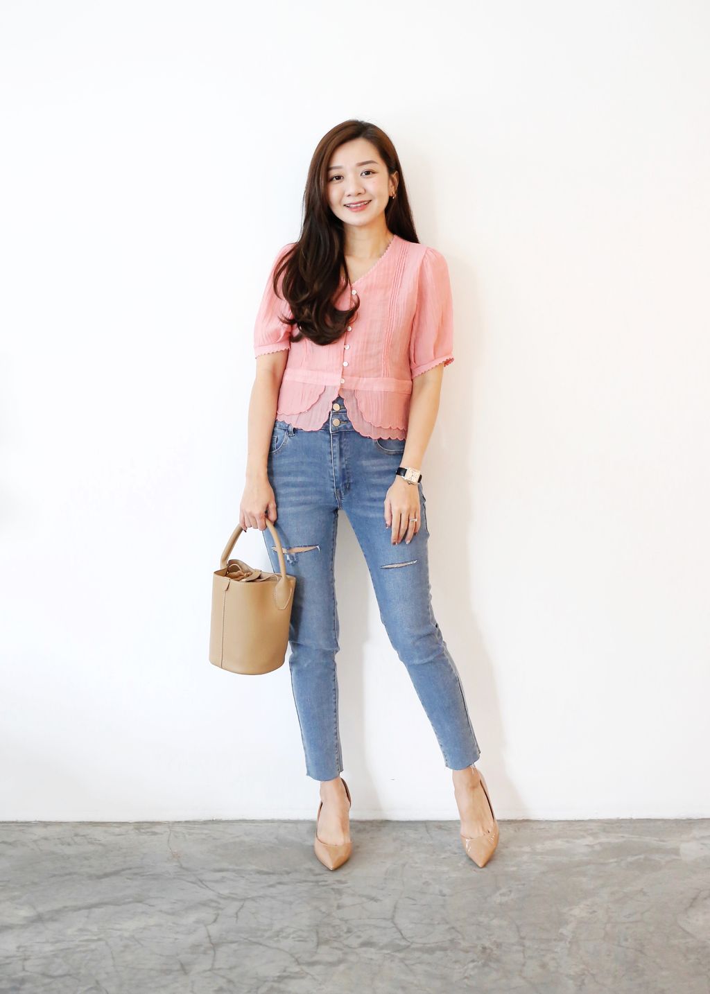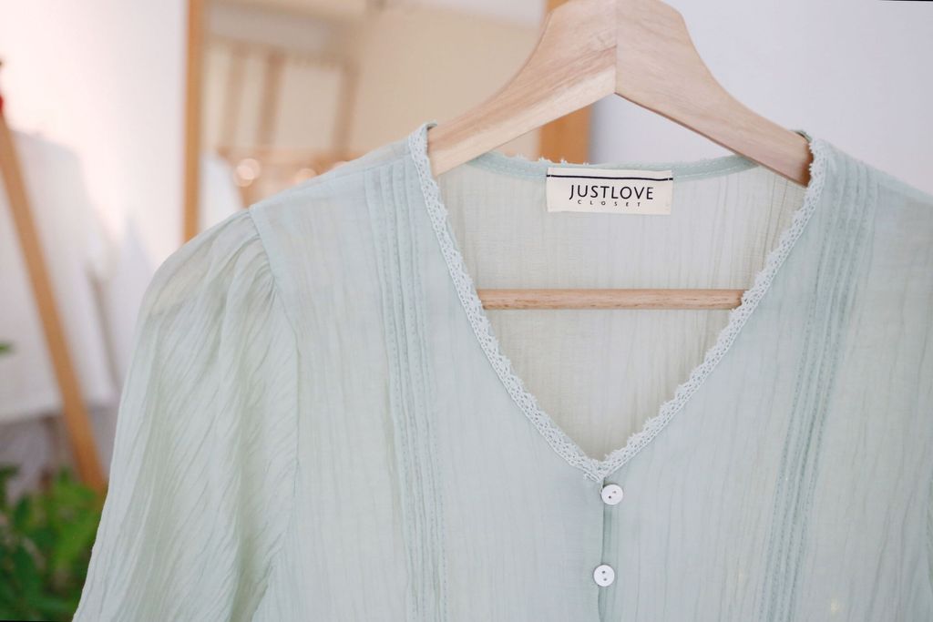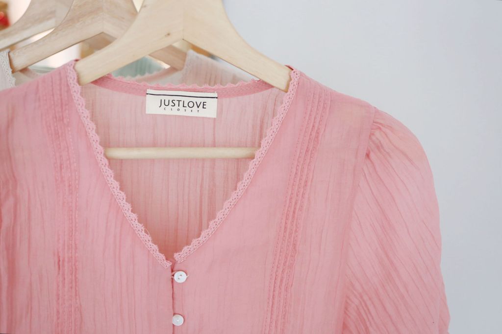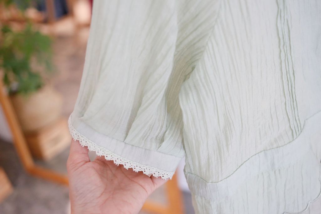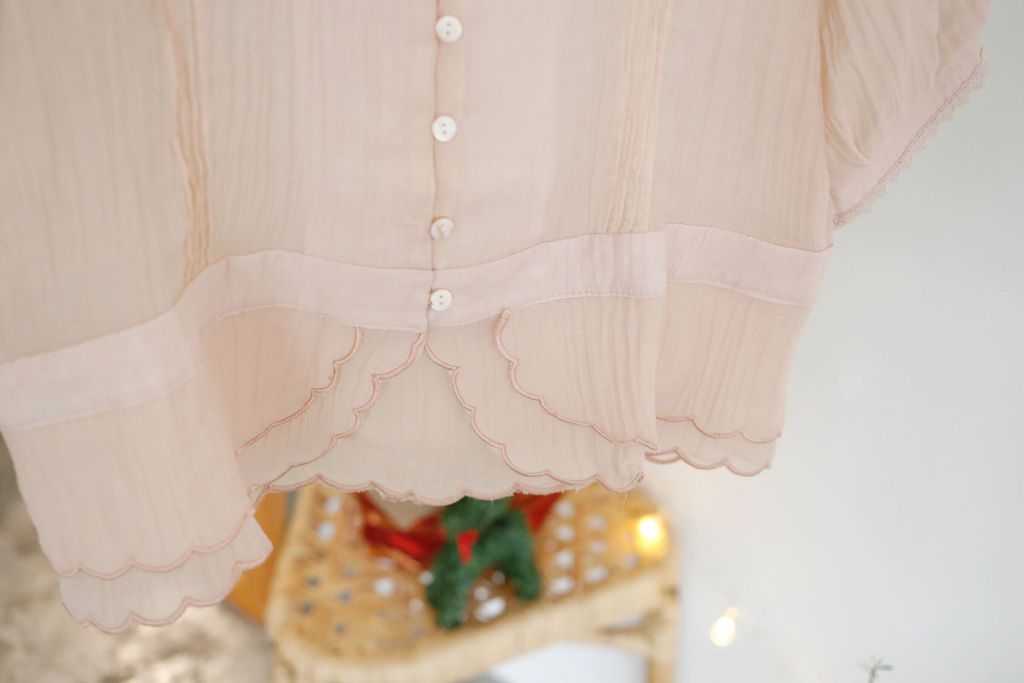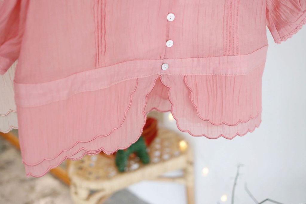 Type: Tiered Scallop Hem Soft Blouse | Button Throught | Crepe Chiffon | Front Pleated Design | Comes with Separate Inner Top | Hand-Wash