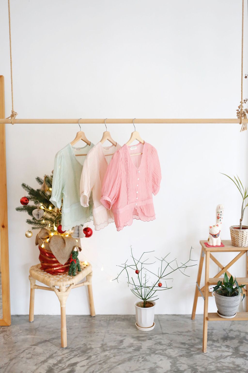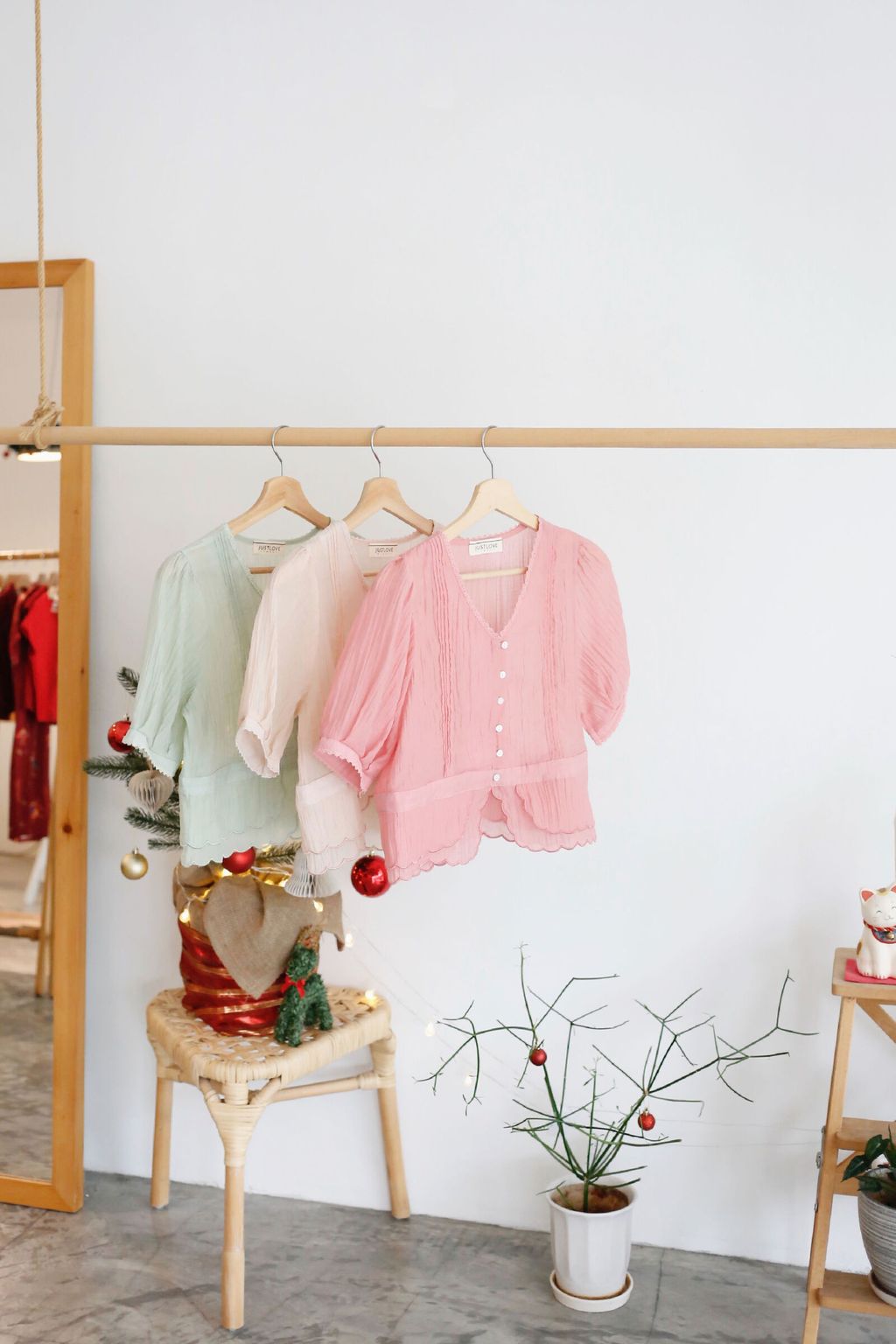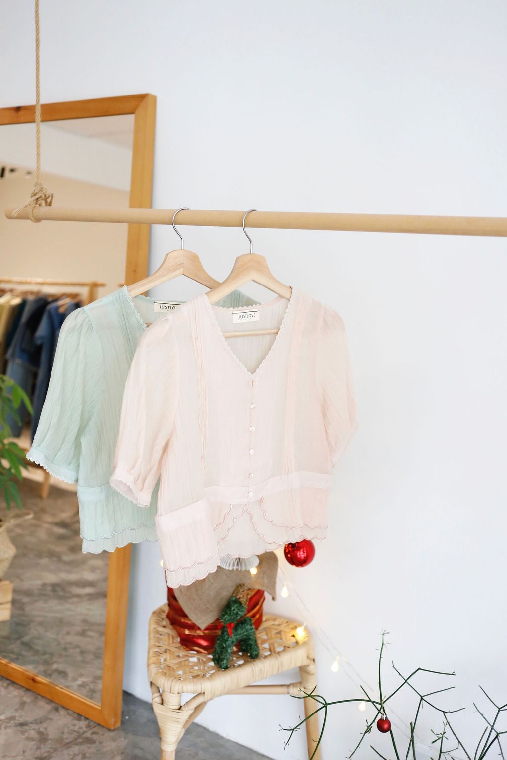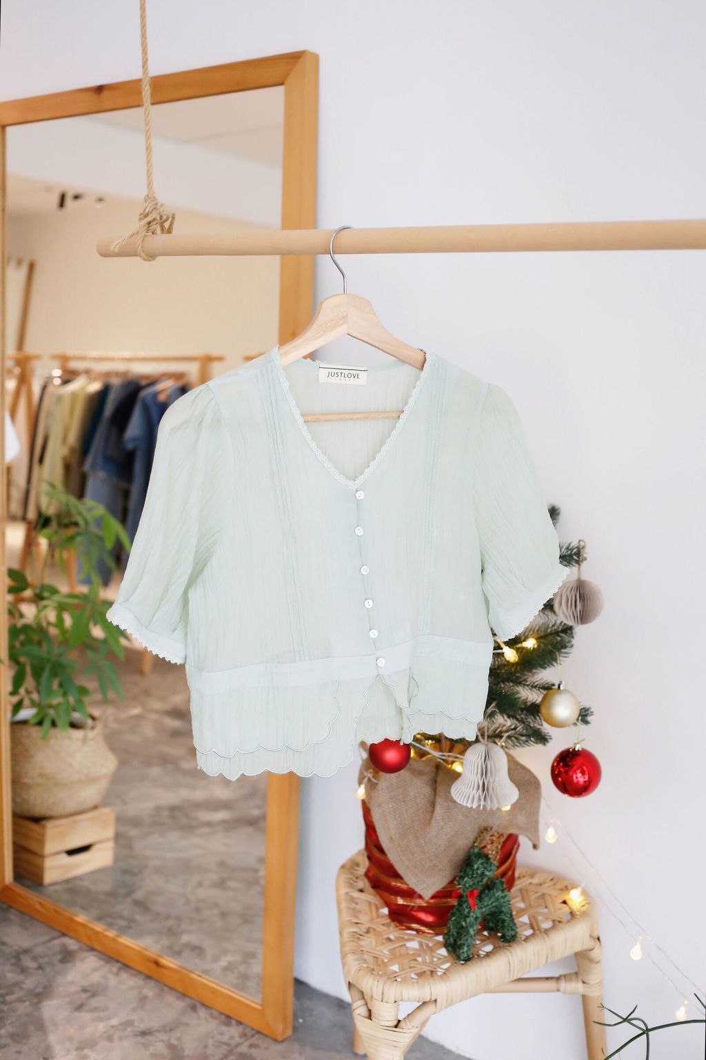 Type: Tiered Scallop Hem Soft Blouse | Button Throught | Crepe Chiffon | Front Pleated Design | Comes with Separate Inner Top | Hand-Wash