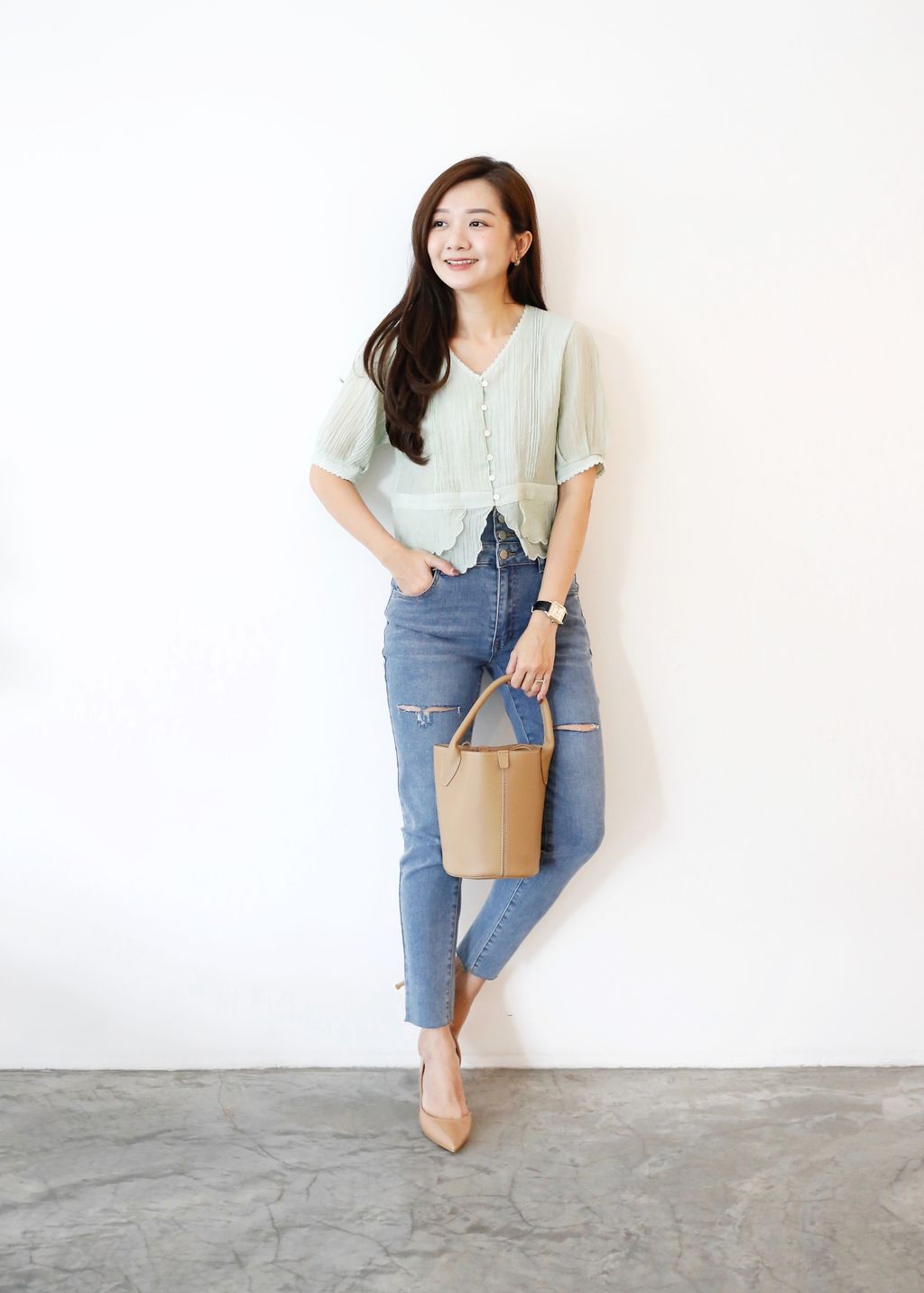 Model: Height: 161cm | Weight: 48kg | Bust: 32” | Waist: 26” | Hips: 35.5”
