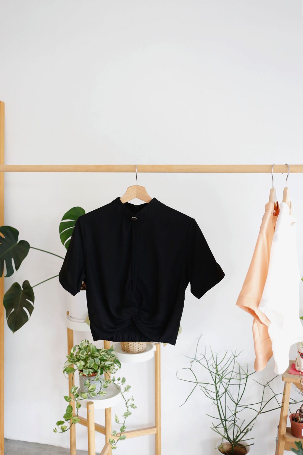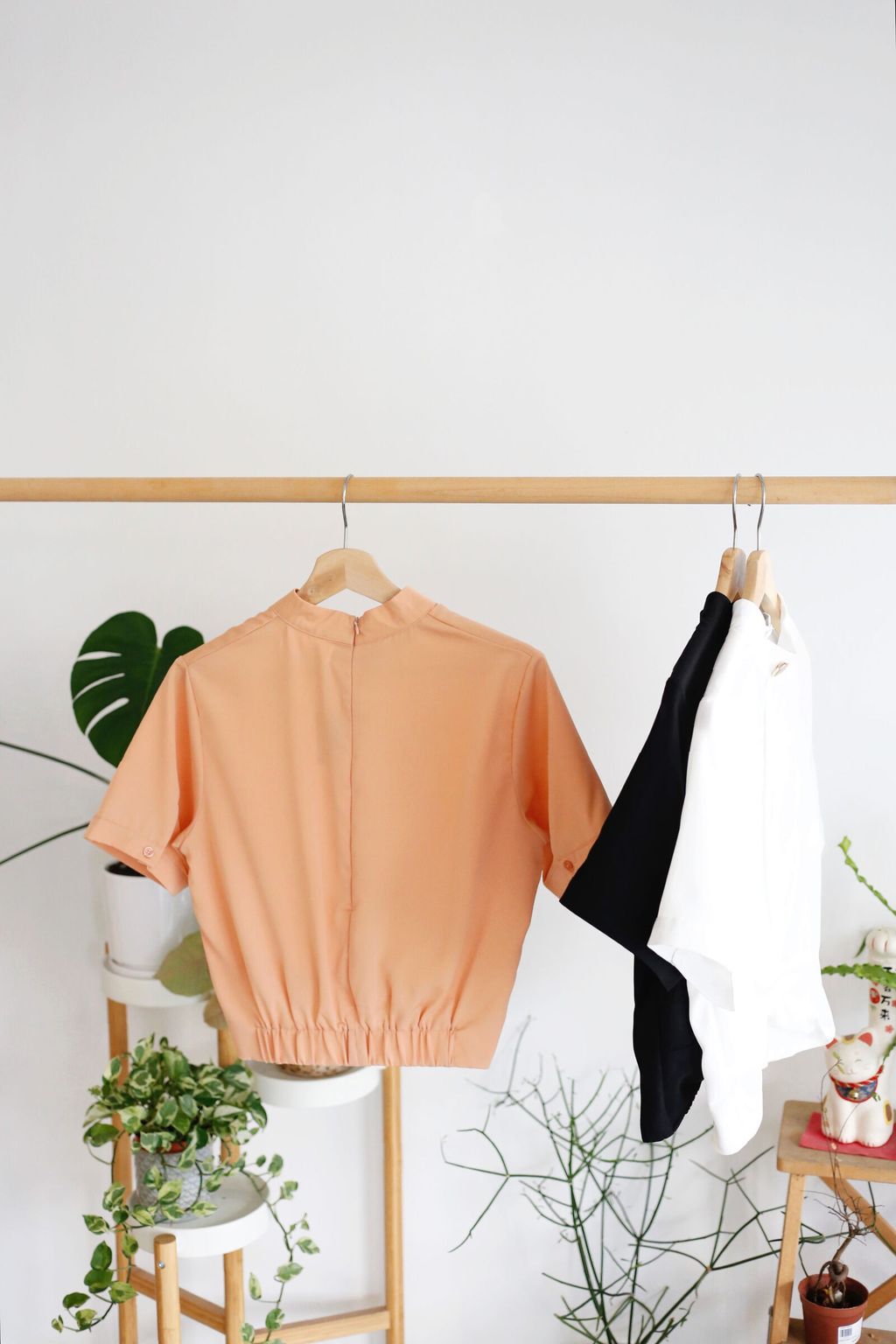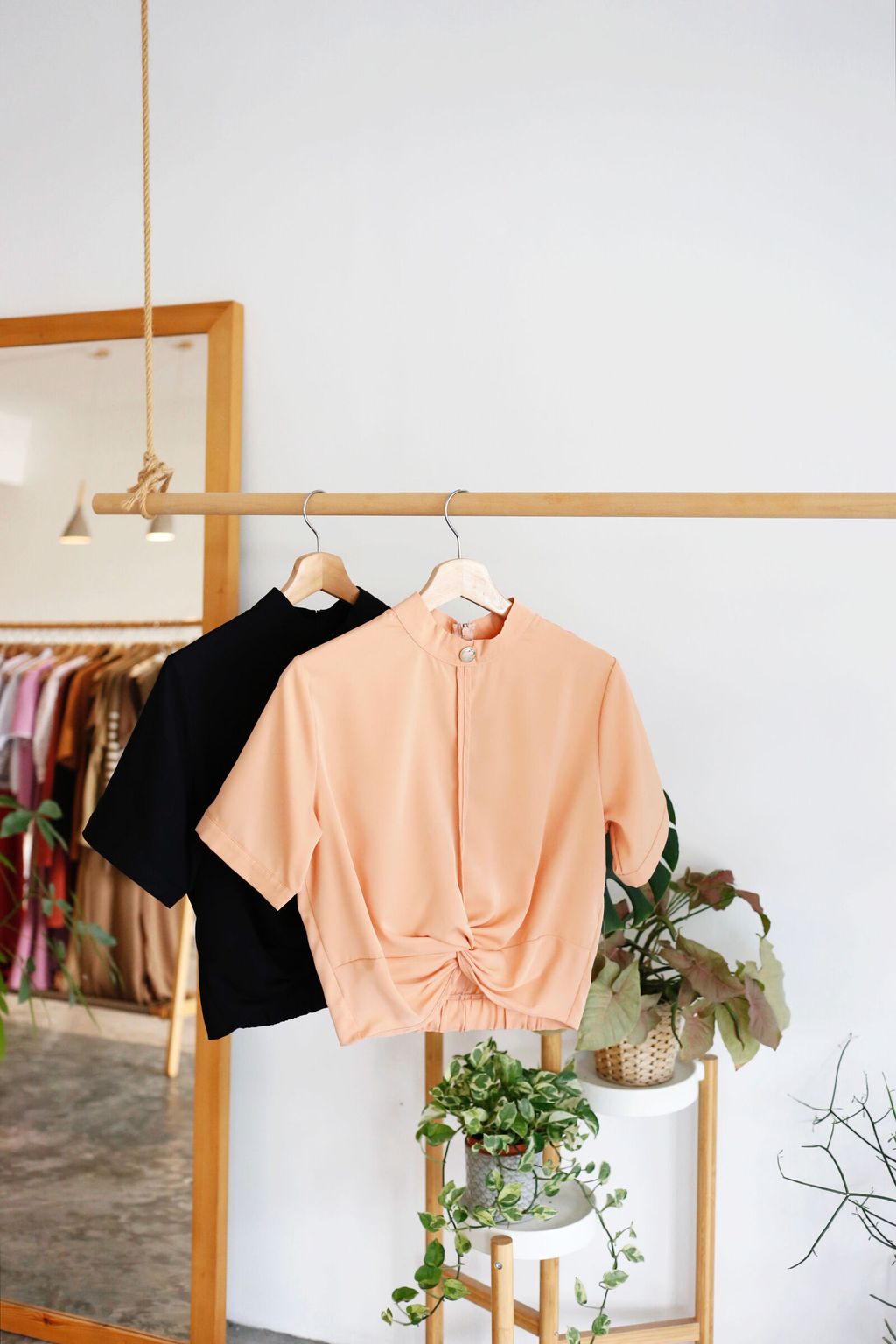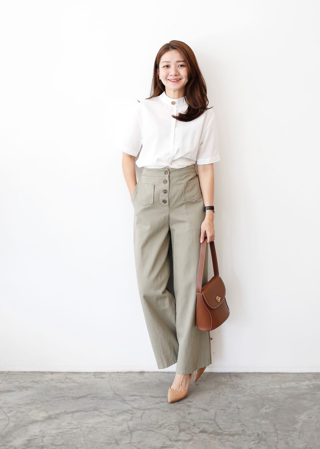 Type: Twist Hem Mock Neck Chiffon Blouse | Chiffon Fabric | Back Bottom Stretched Waist Design | Back Zipper | Slightly Sheer for White