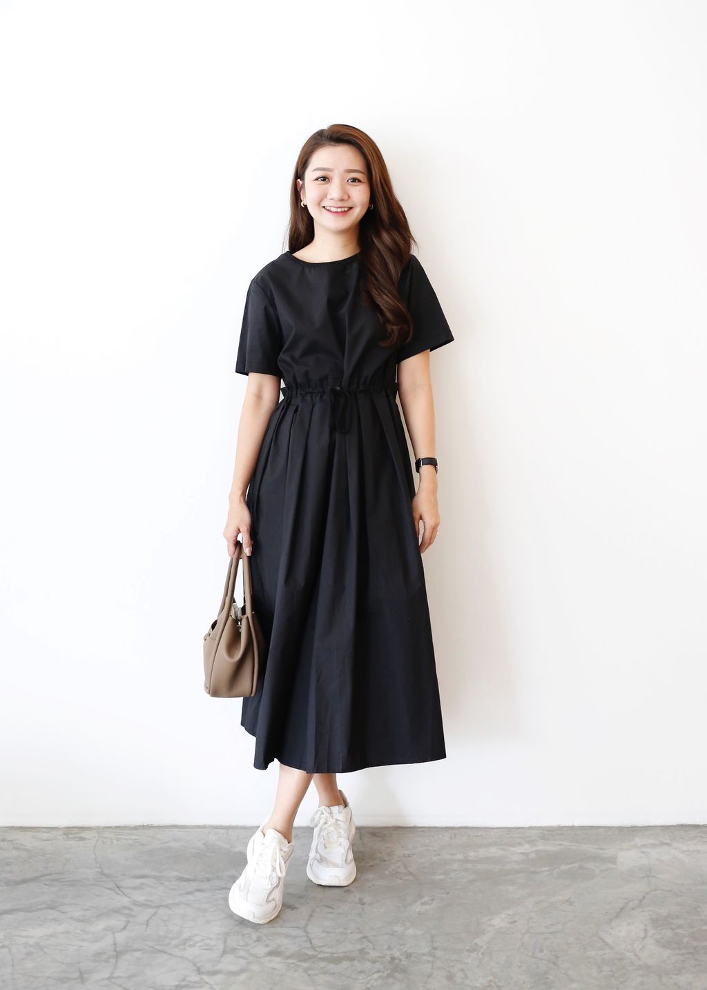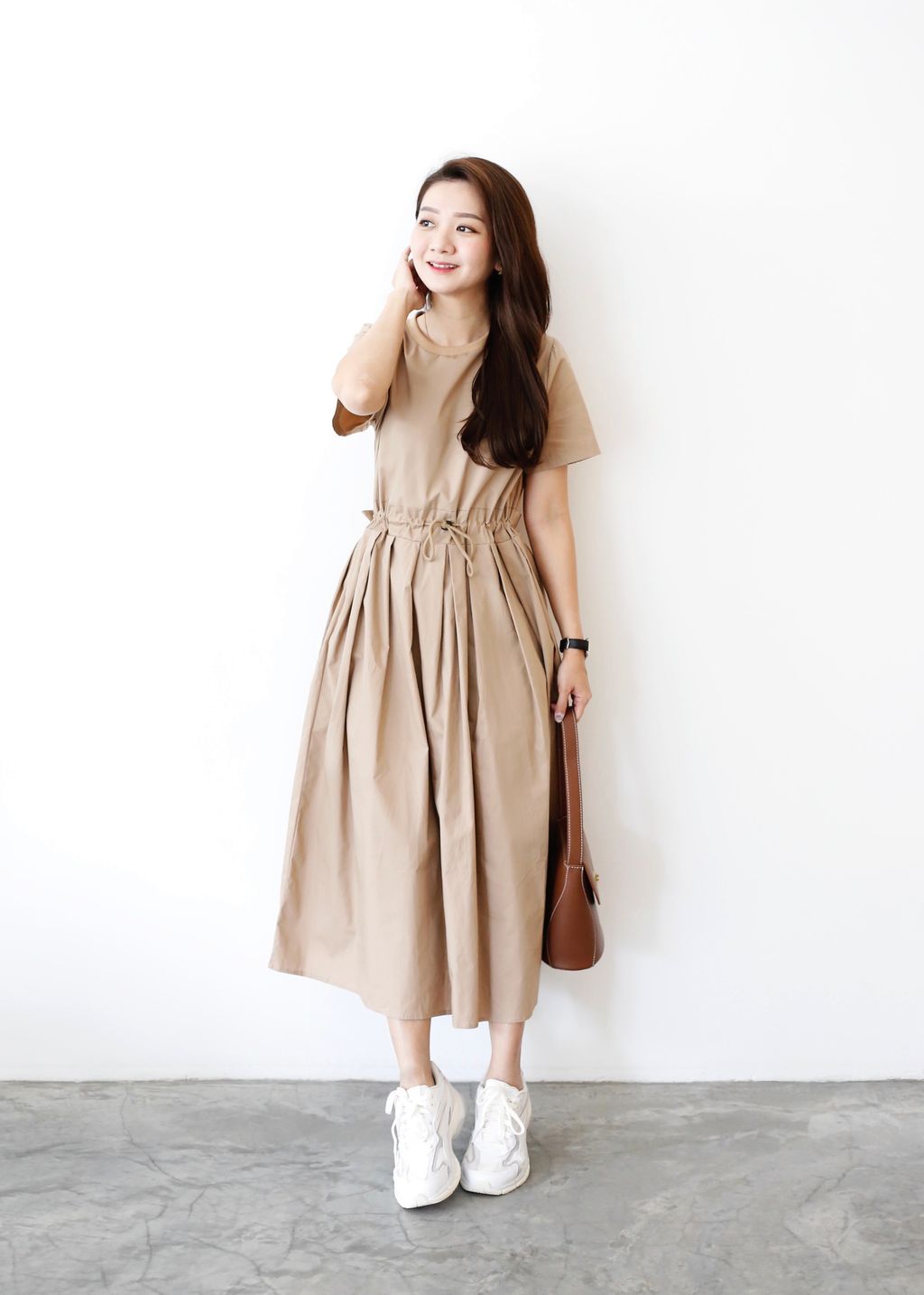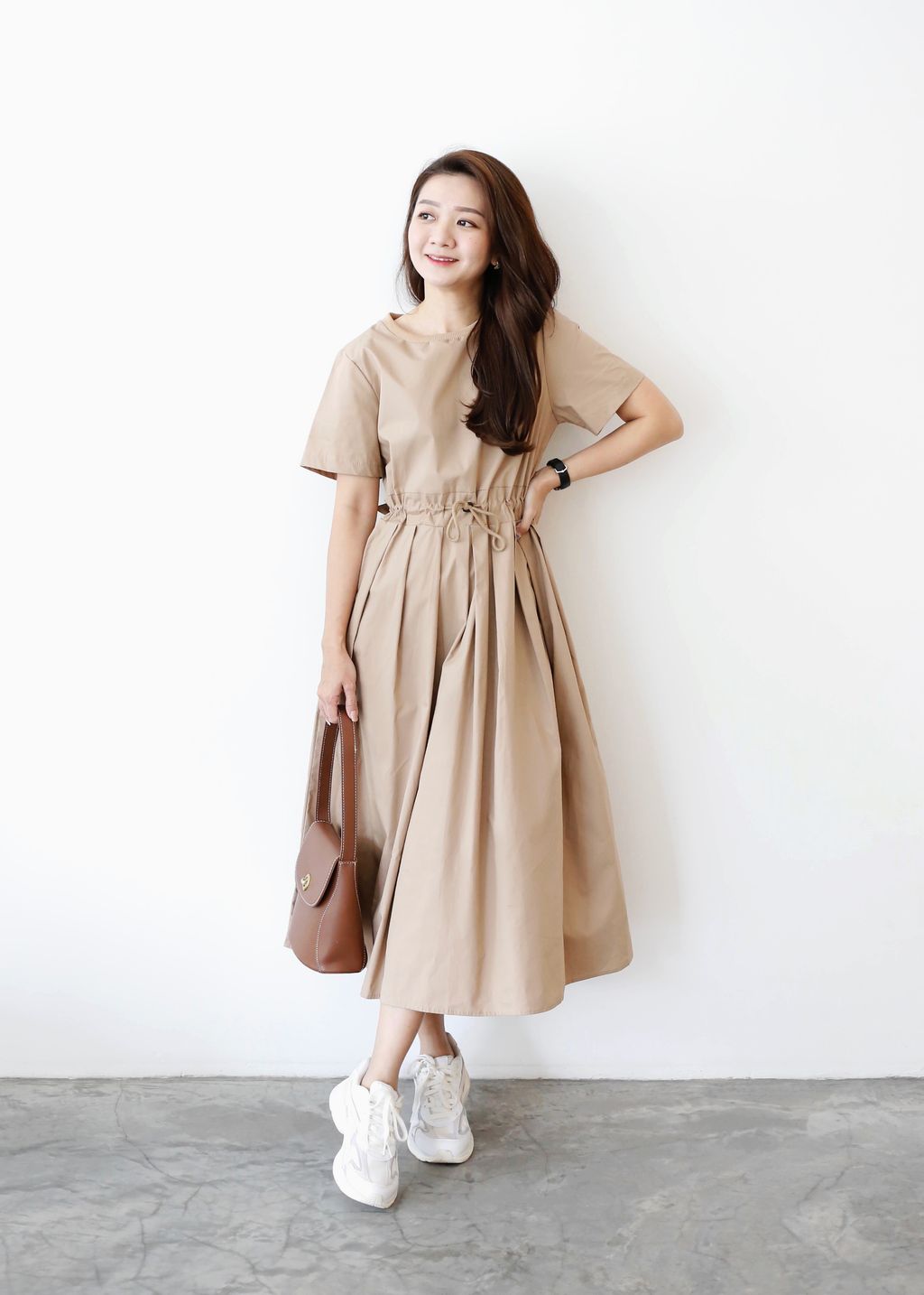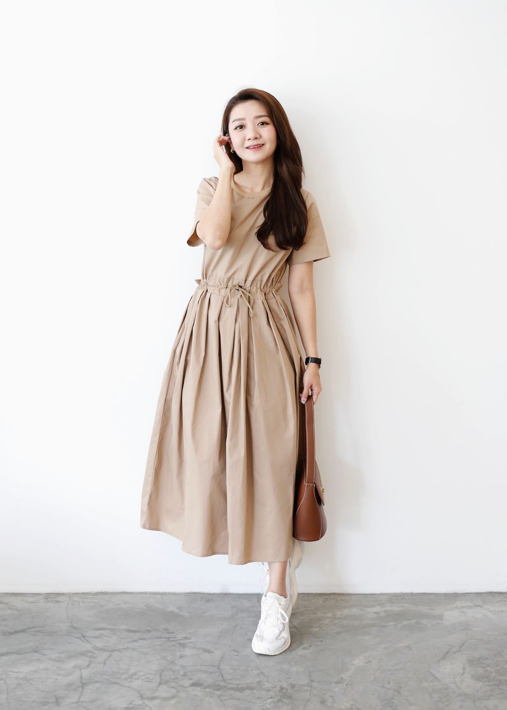 Type: Waist Drawstring Midi Dress | Cotton Fabric | Not Stretchable | WaistLength Adjustable | Frill Waist Design