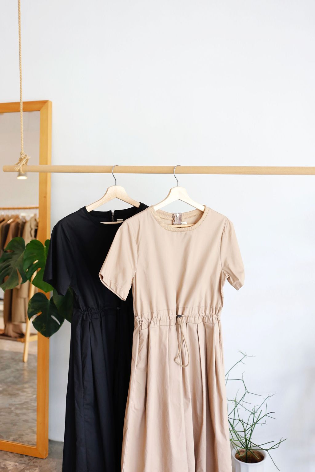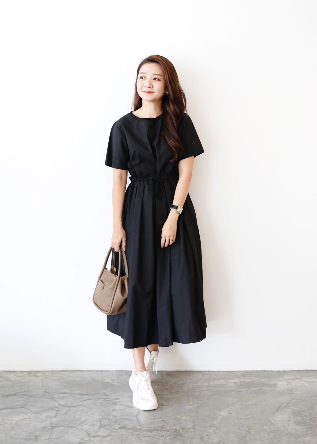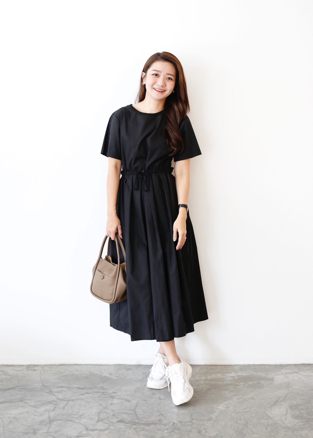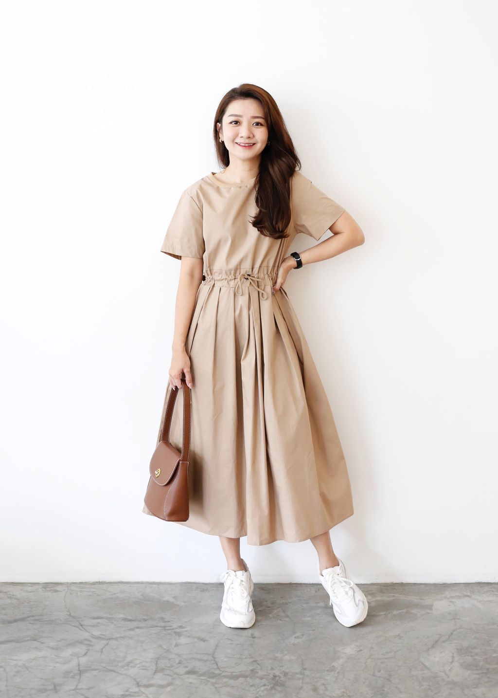 Type: Waist Drawstring Midi Dress | Cotton Fabric | Not Stretchable | WaistLength Adjustable | Frill Waist Design