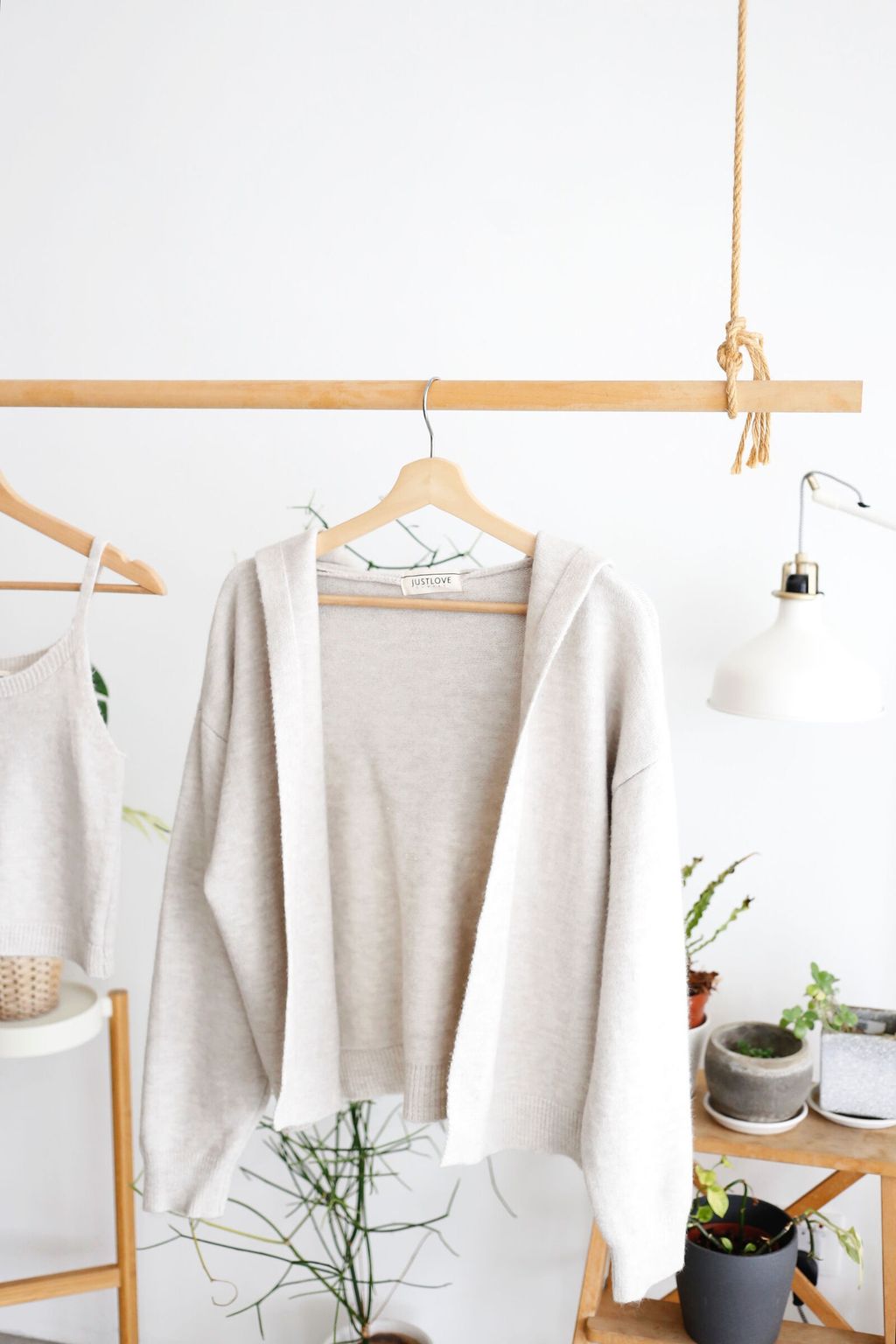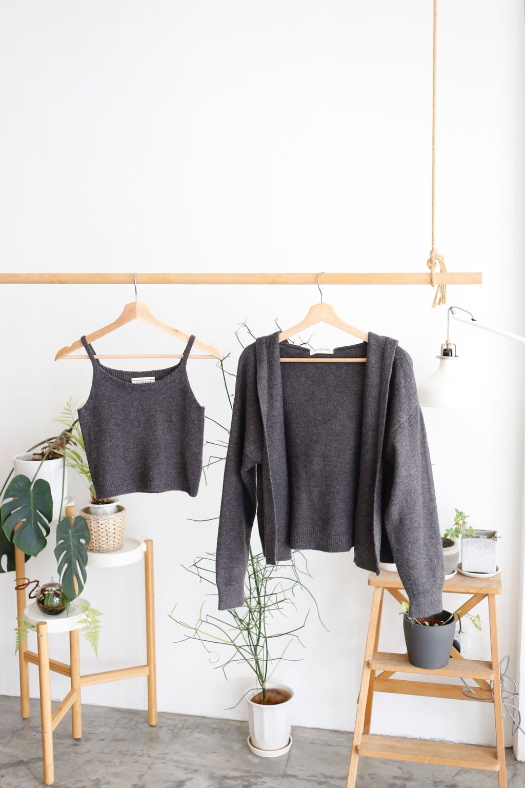 Type: 2PCS Knit Hooded Cardigan and Camisole Set | Soft Knit Fabric | Stretchable