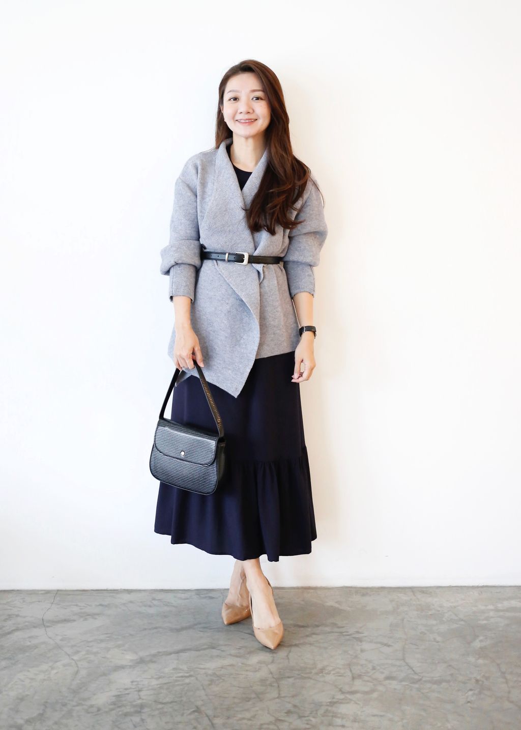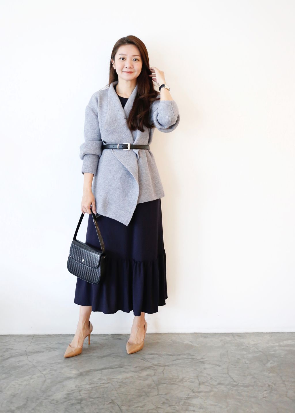 Type: Chic Long Wool-Blend Cardigan | Stretchable Wool Fabric | Button-Less Design | Can Pair with Belt To Create An Asymmetrical Hemline | Comes with a Belt, Different From The One Model Wearing, Kindly Refer to Product Pics