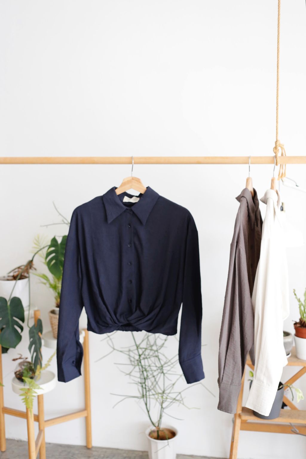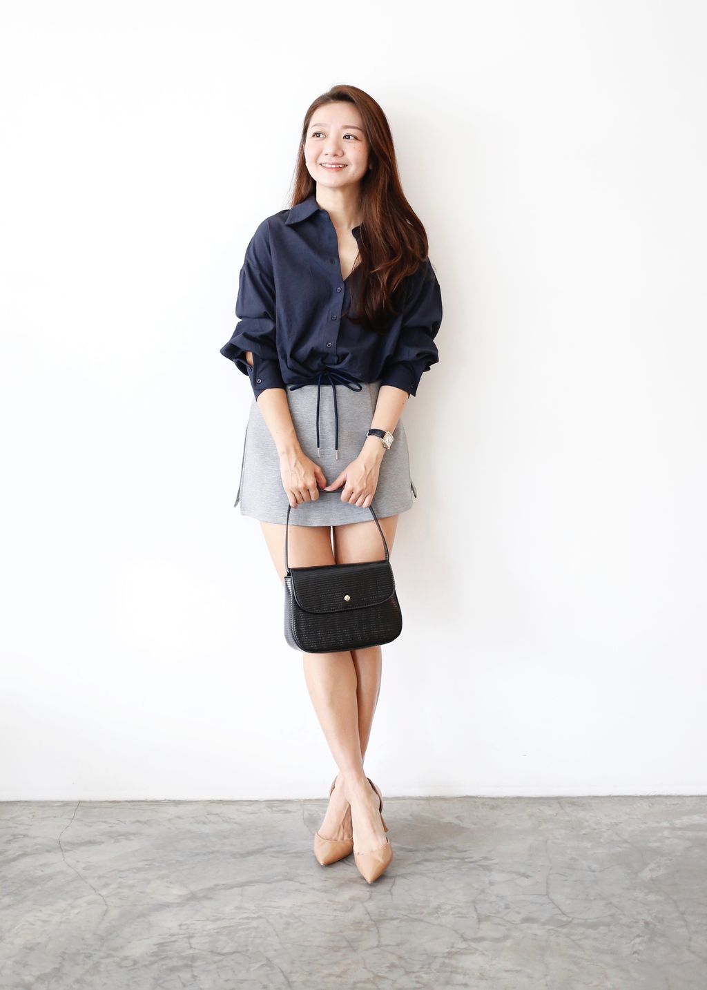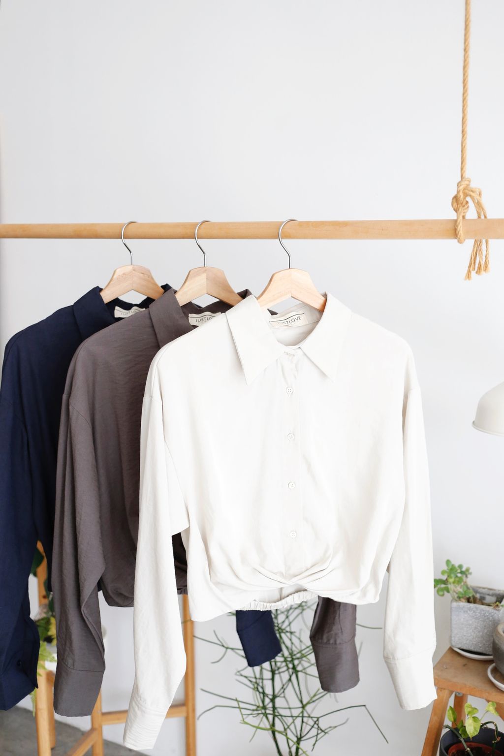 Type: Long Sleeves Twist Hem Shirt | Cotton Crepe Fabric | Side Zipper | Stretchable Waistband At the Back, But Won't Tight on Waist