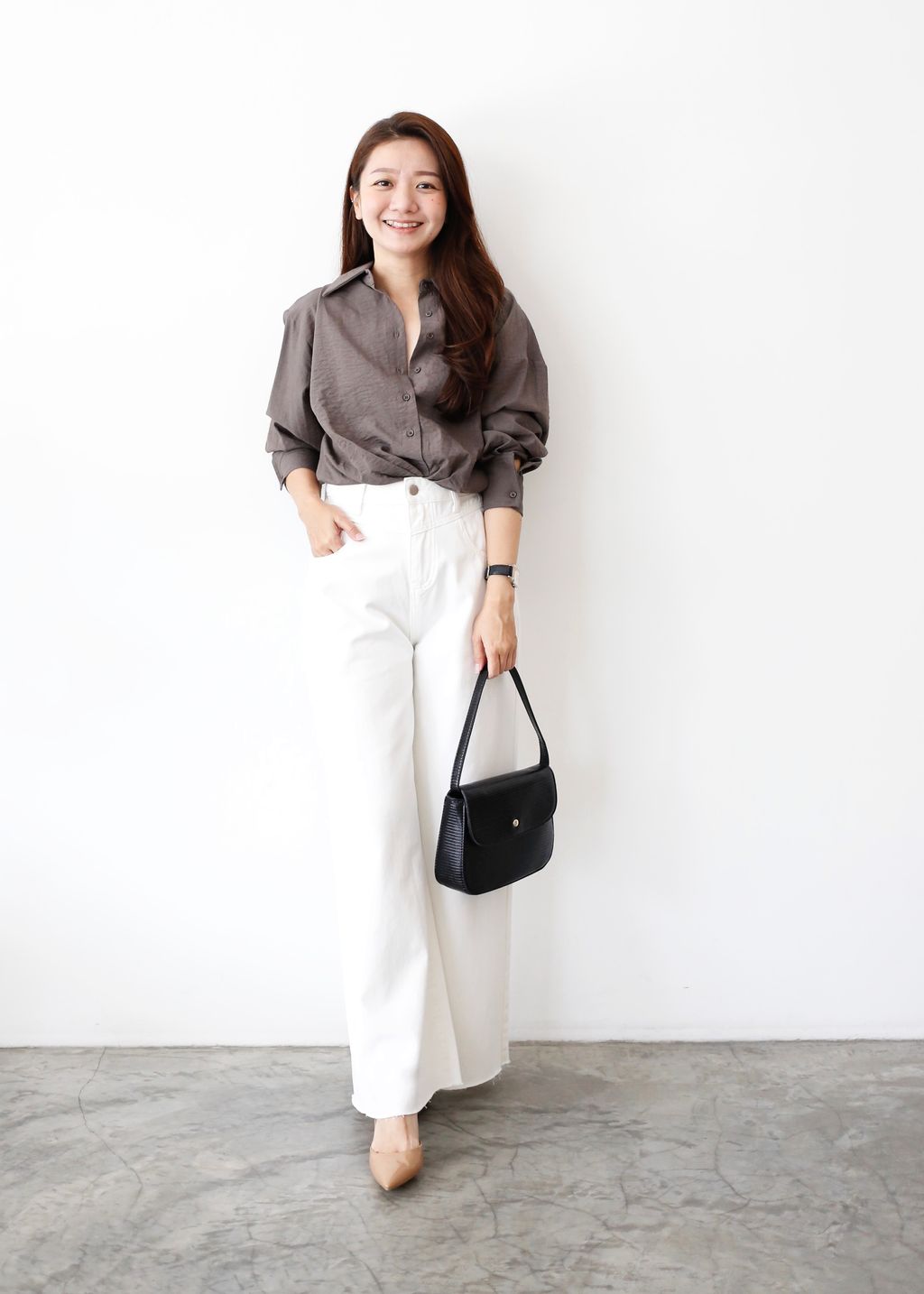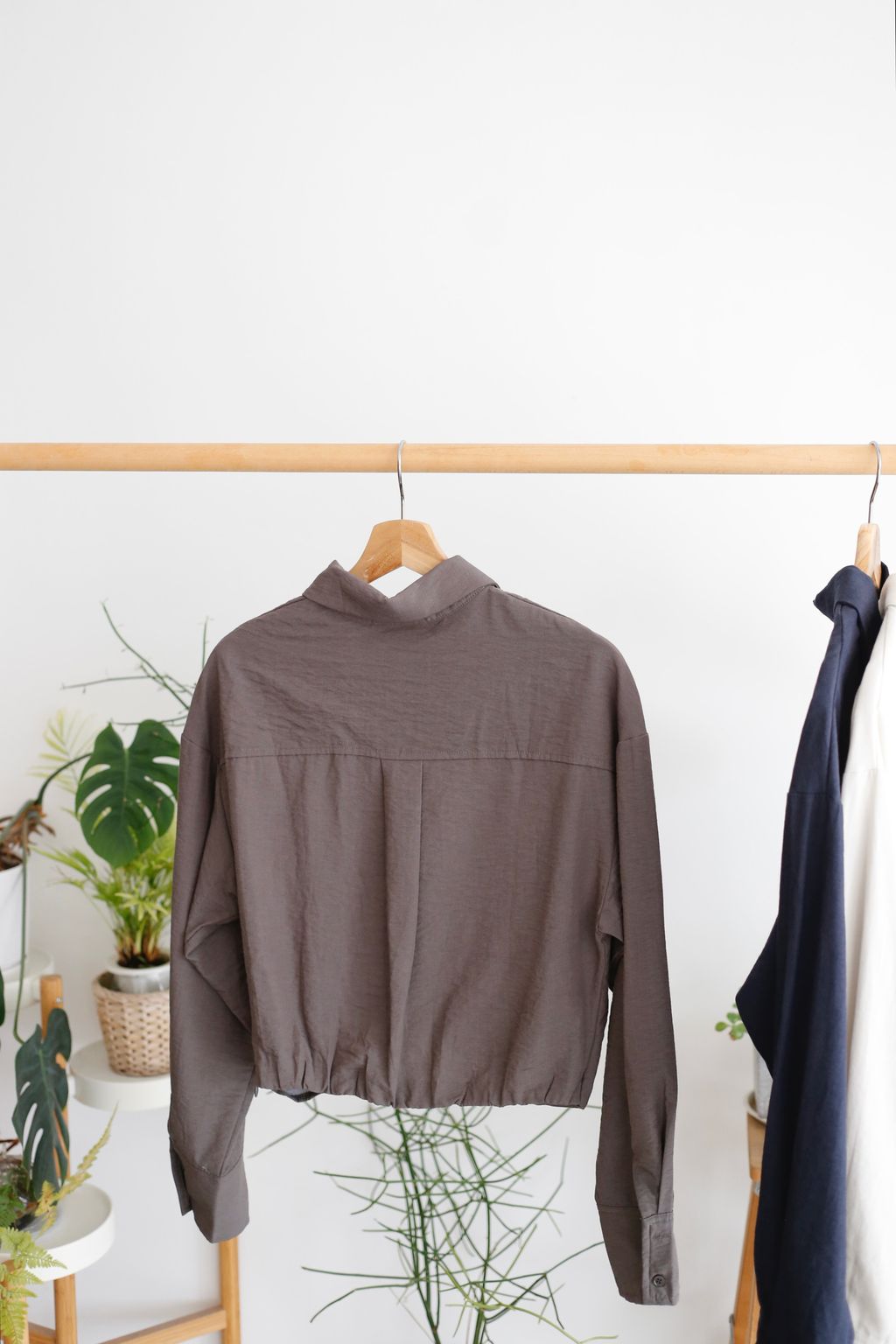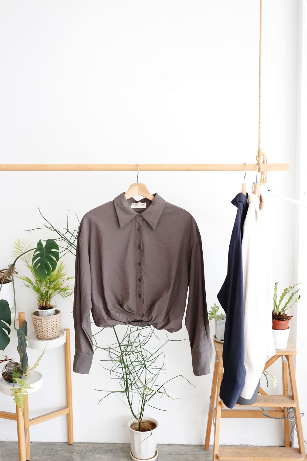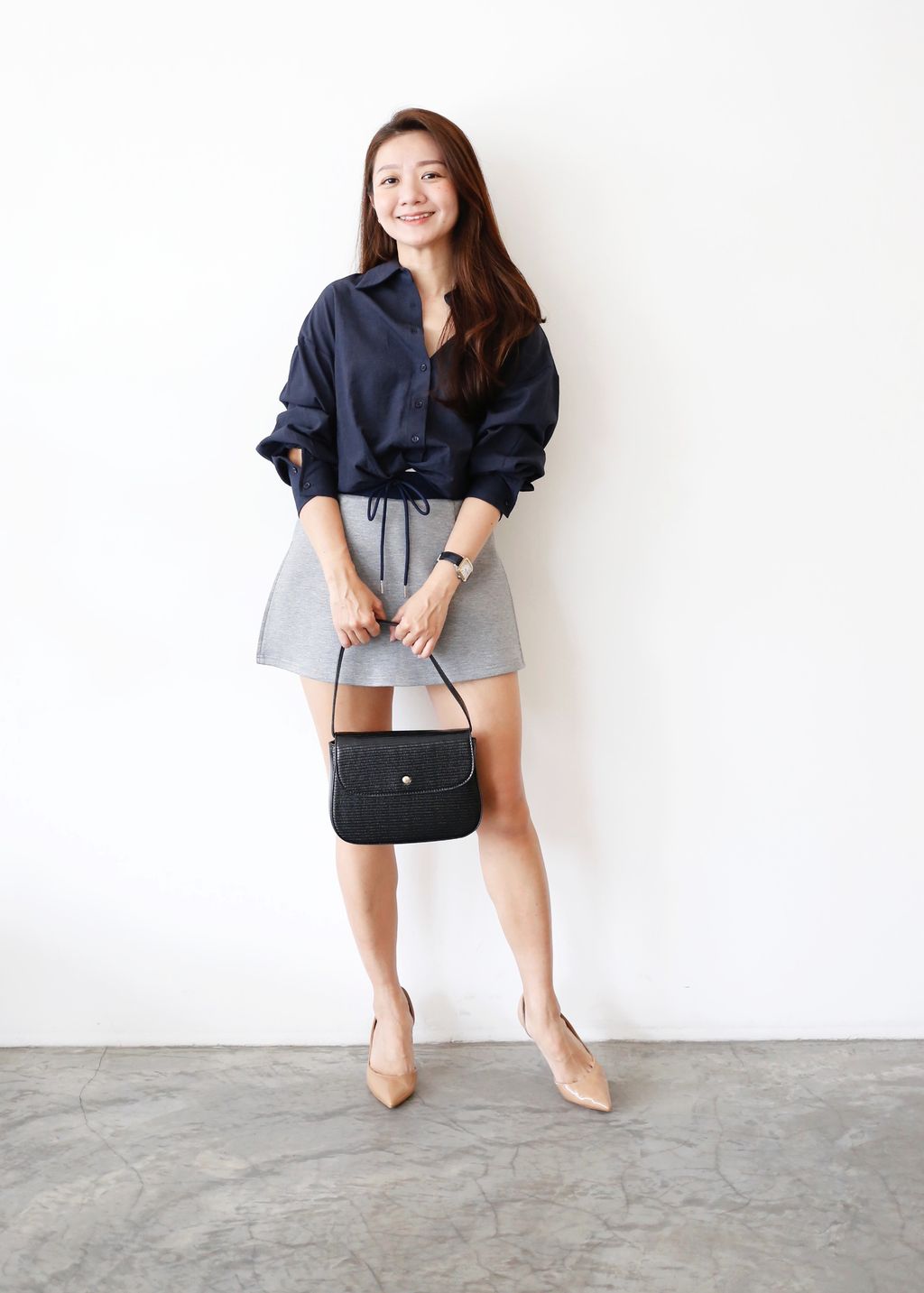 Type: Long Sleeves Twist Hem Shirt | Cotton Crepe Fabric | Side Zipper | Stretchable Waistband At the Back, But Won't Tight on Waist