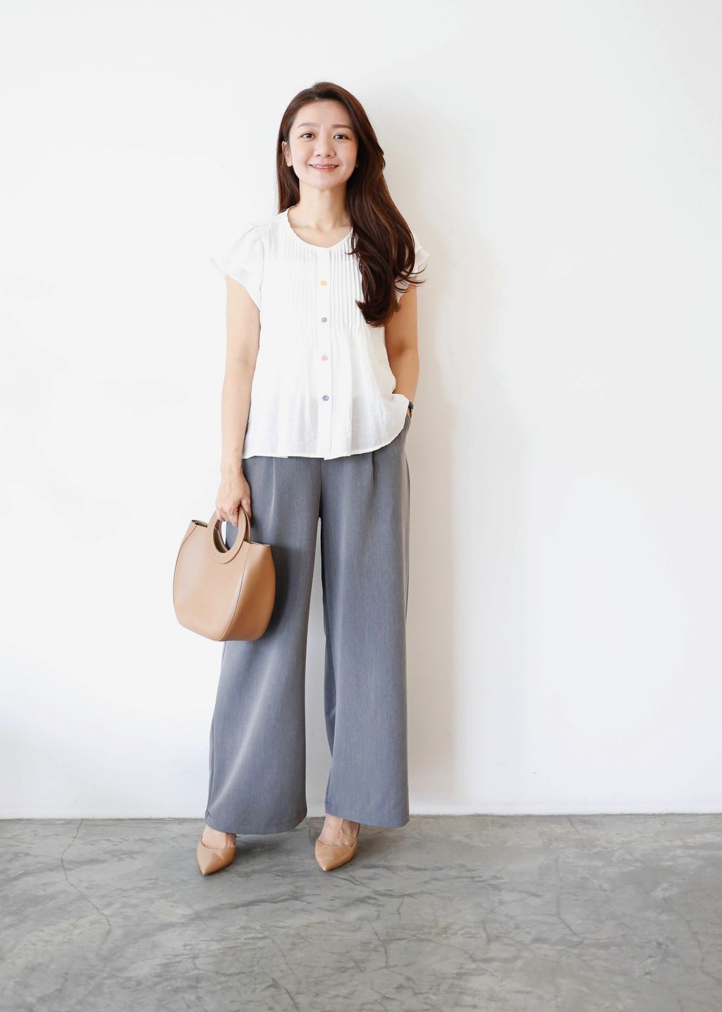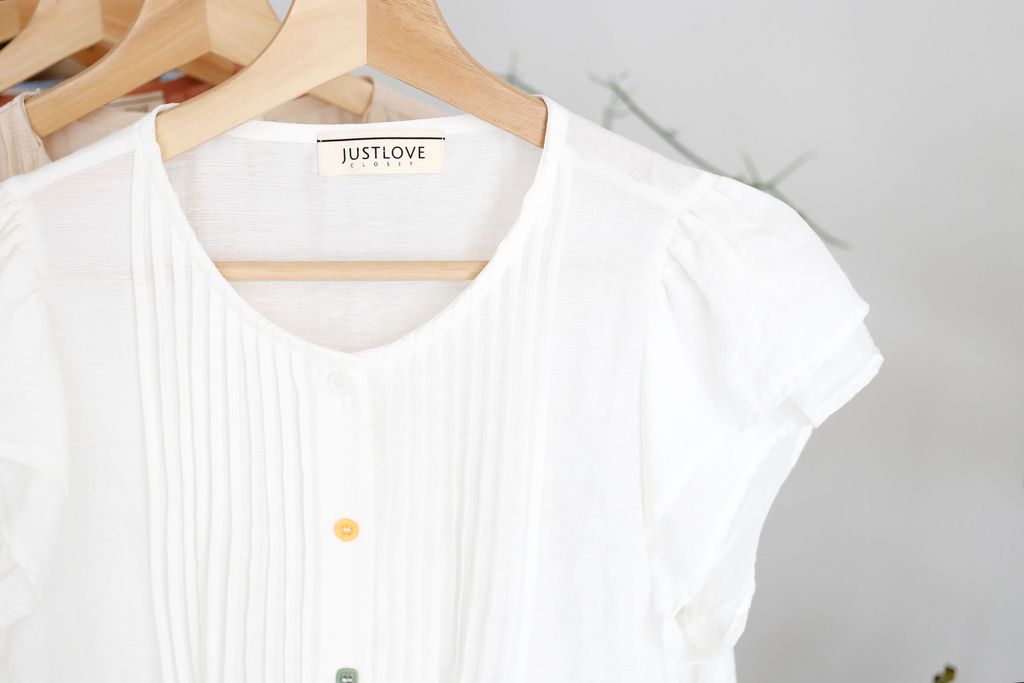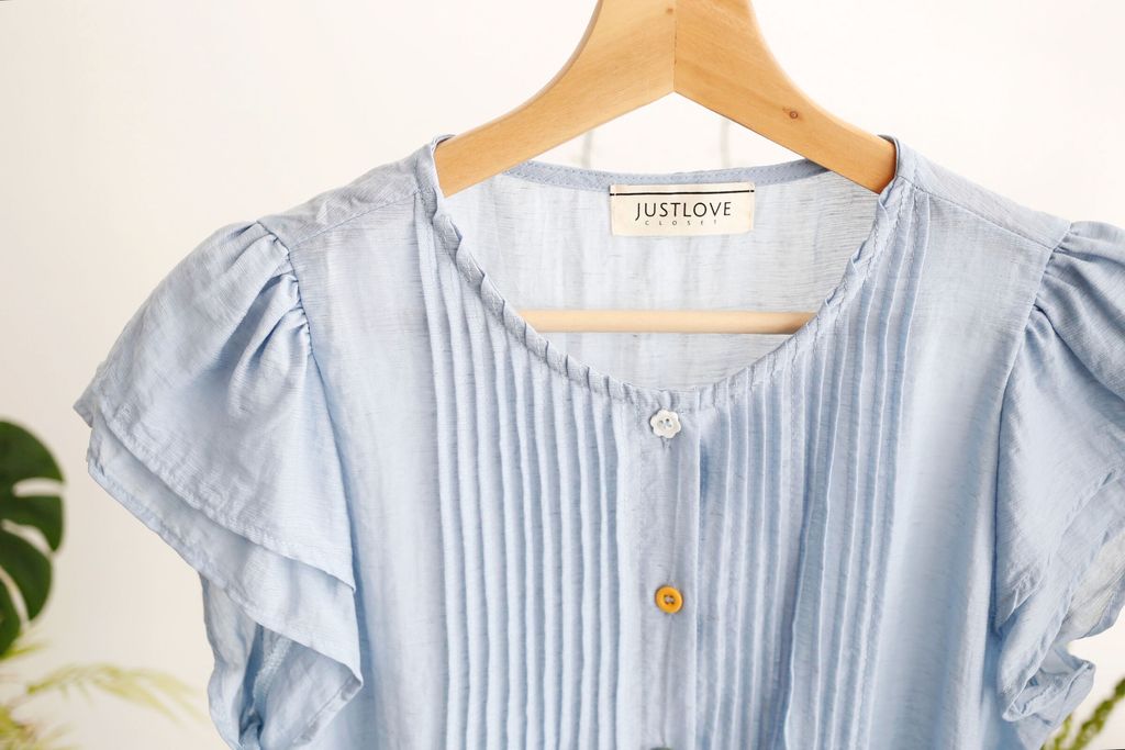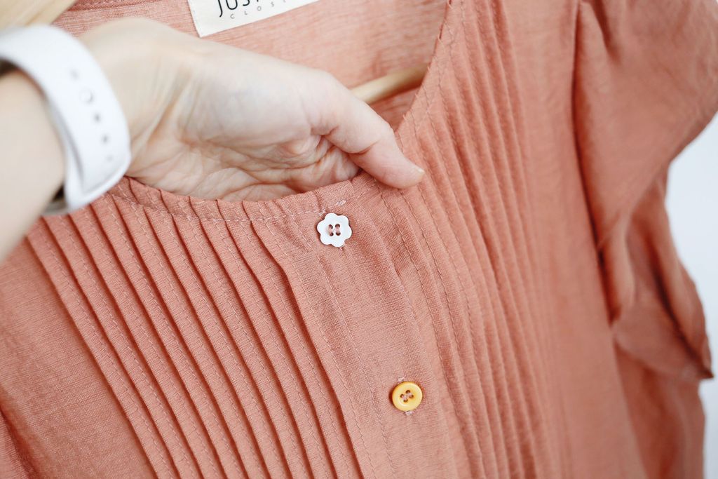 Pleated Front Blouse with Fancy Buttons