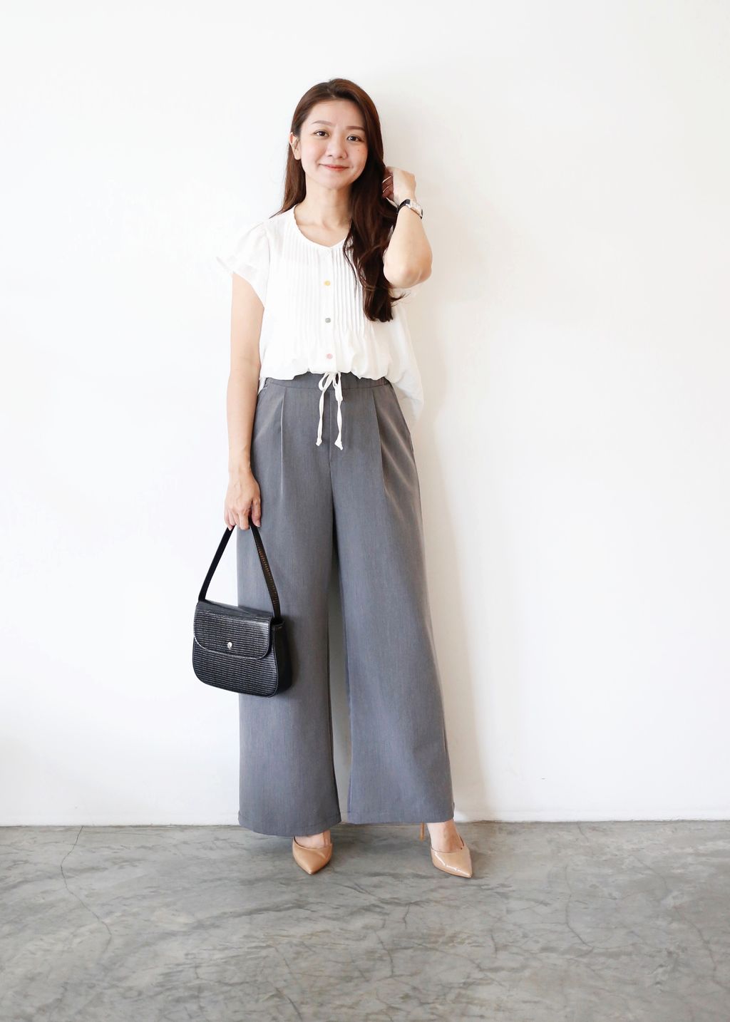 Type: Pleated Front Blouse with Fancy Buttons | Crepe Chiffon Fabric | Functional Button | Loose Type Blouse