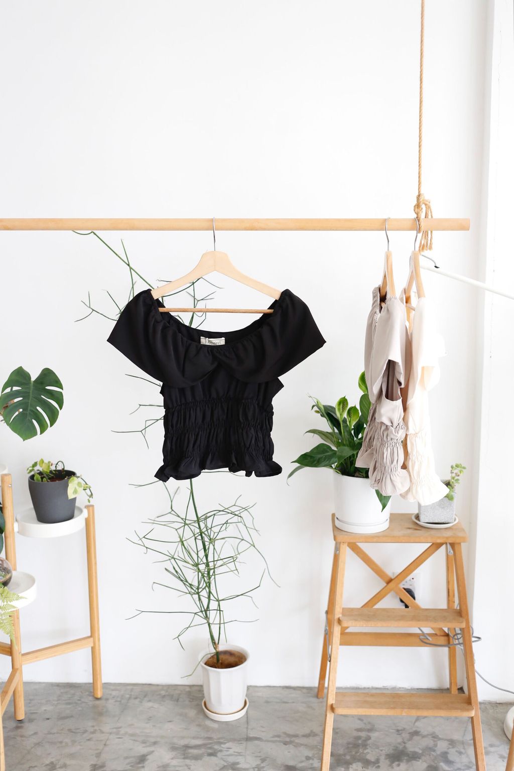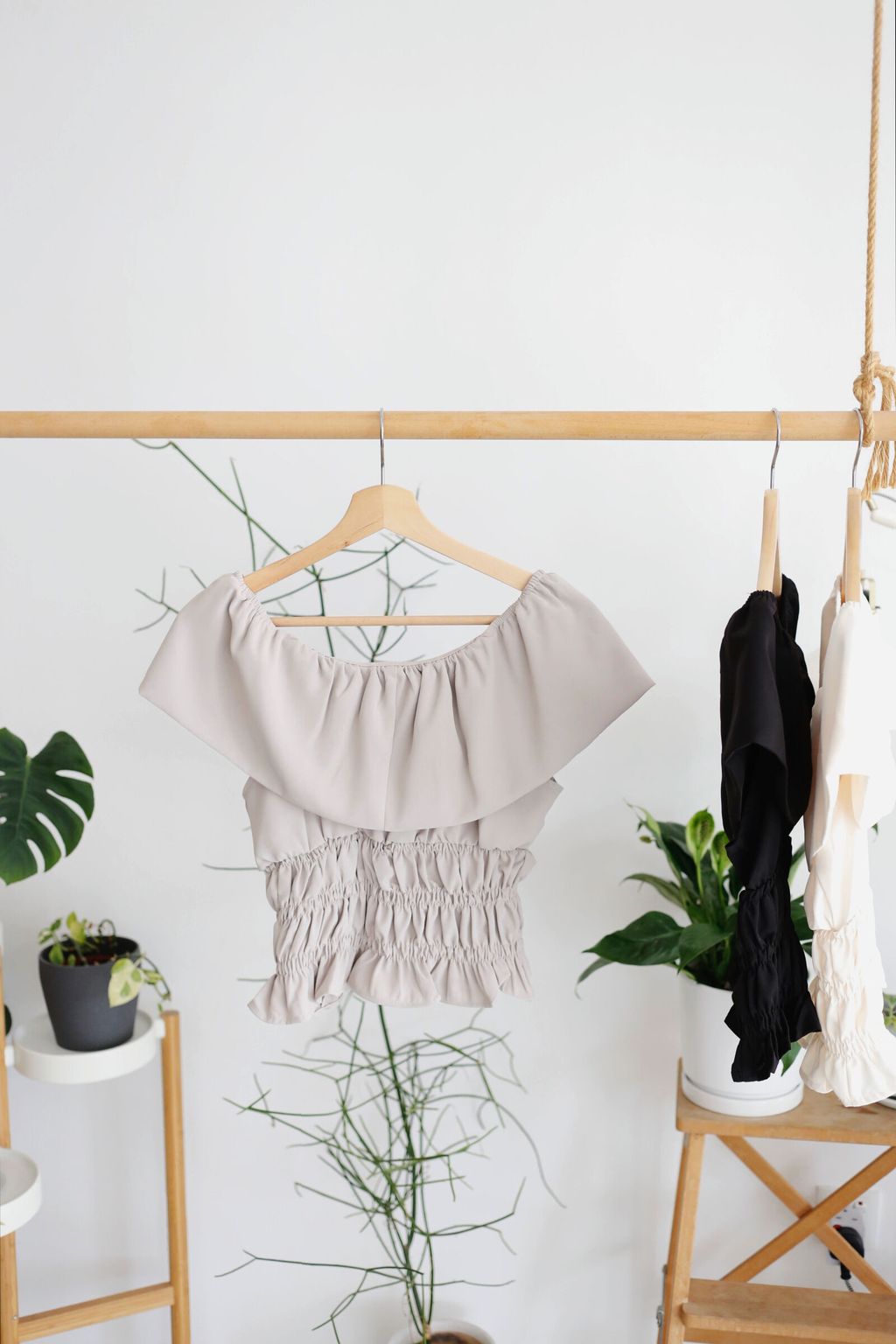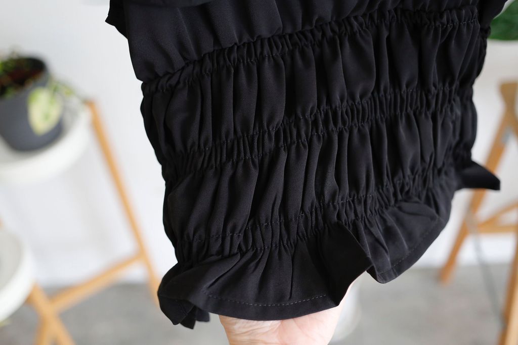 Type: Soft Draped Collar Scoop Neck Blouse | Soft Suit Fabric | Smocked Design | Stretchable From Bust Down to Waist