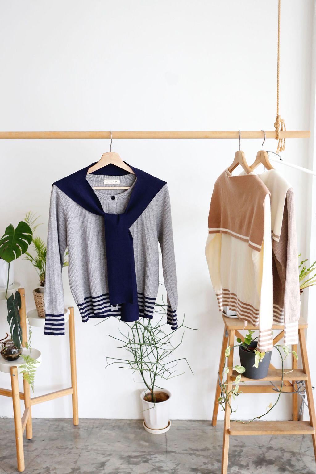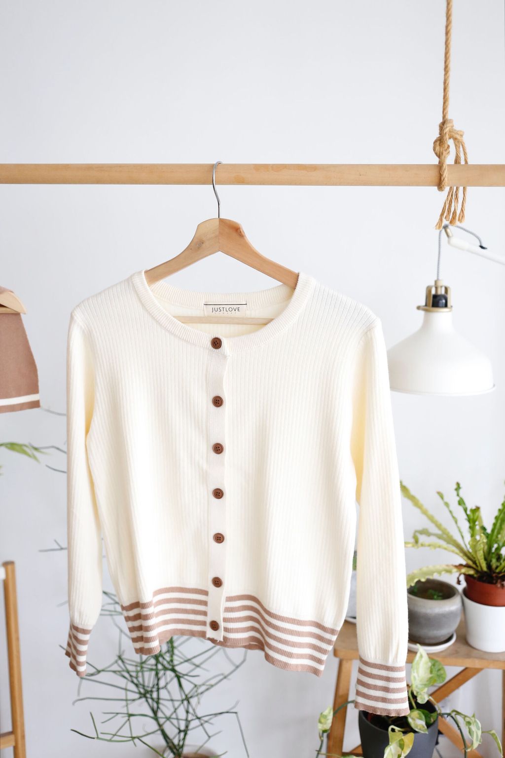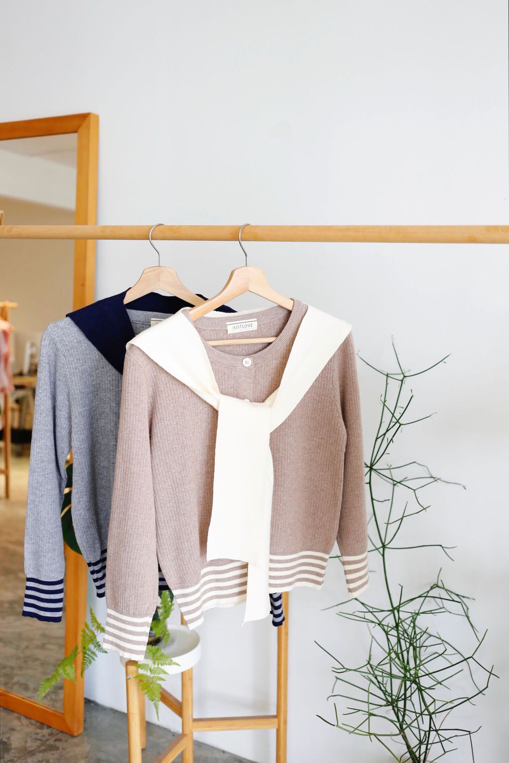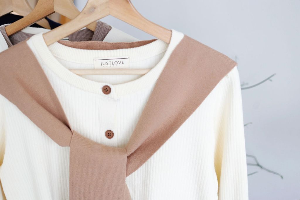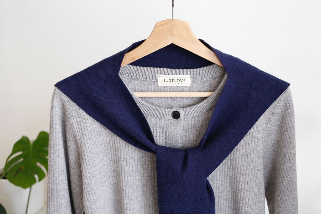 Type: 2-Tone Cardigan with Shawl Set | Stretchable Ribbed Knit Fabric | Shawl Can Be Separated | Functional Buttons