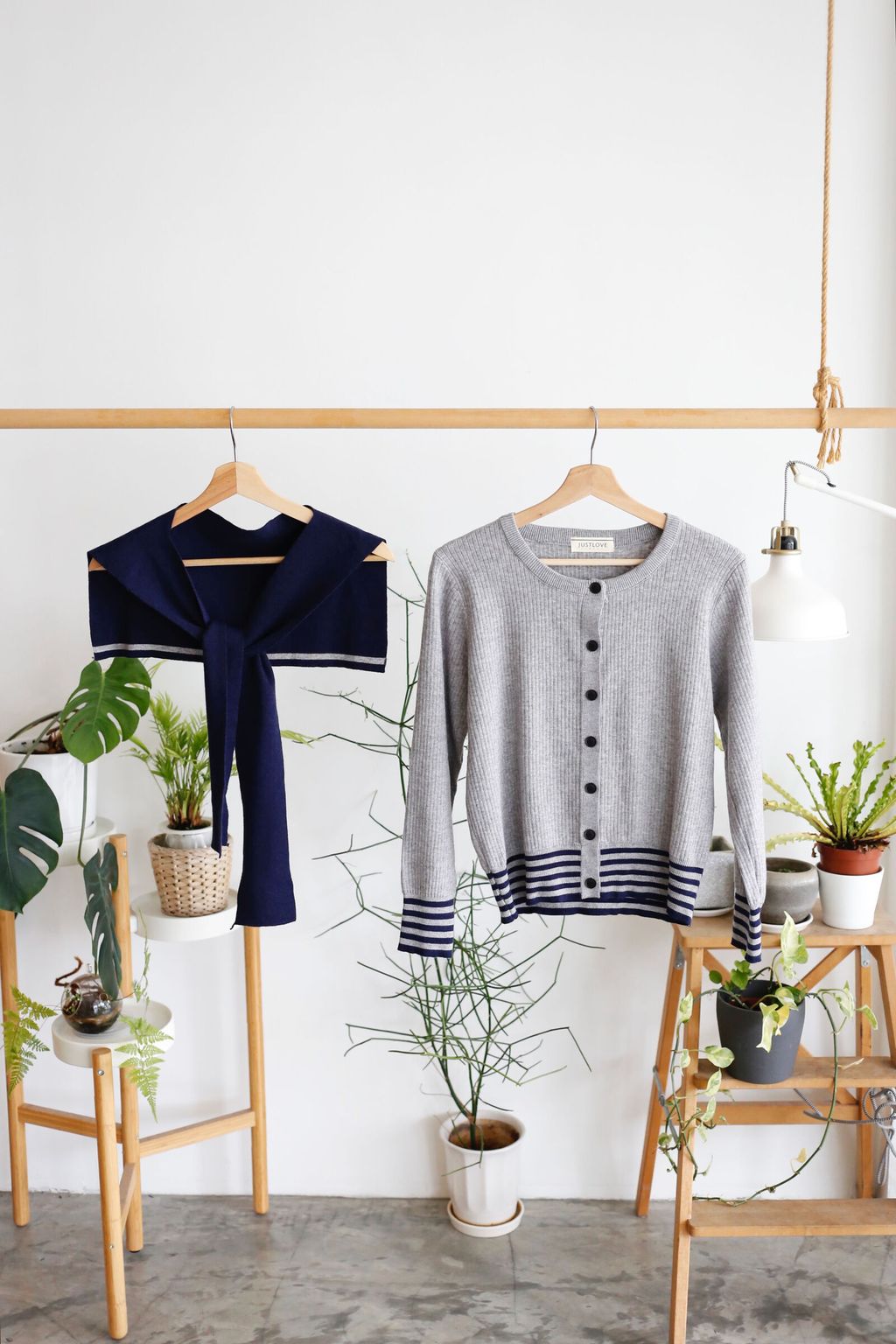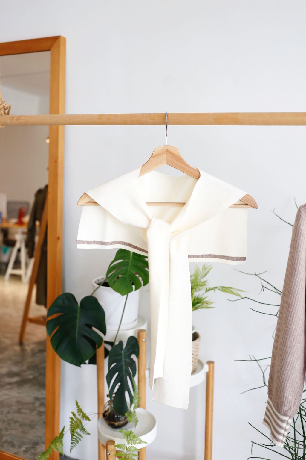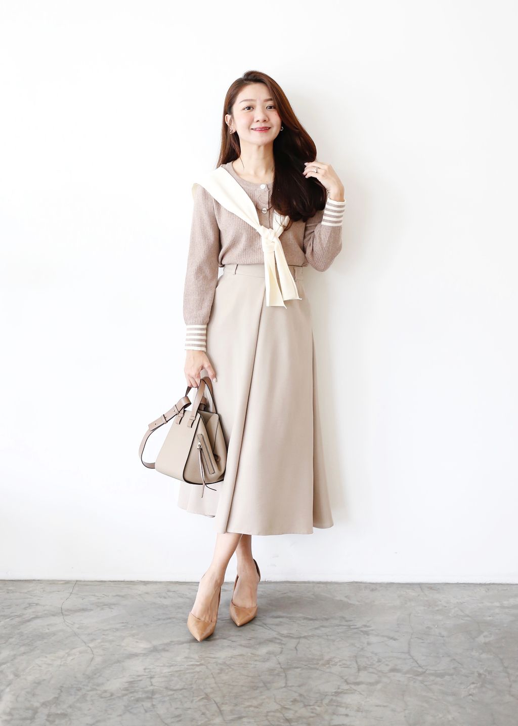 Type: 2-Tone Cardigan with Shawl Set | Stretchable Ribbed Knit Fabric | Shawl Can Be Separated | Functional Buttons