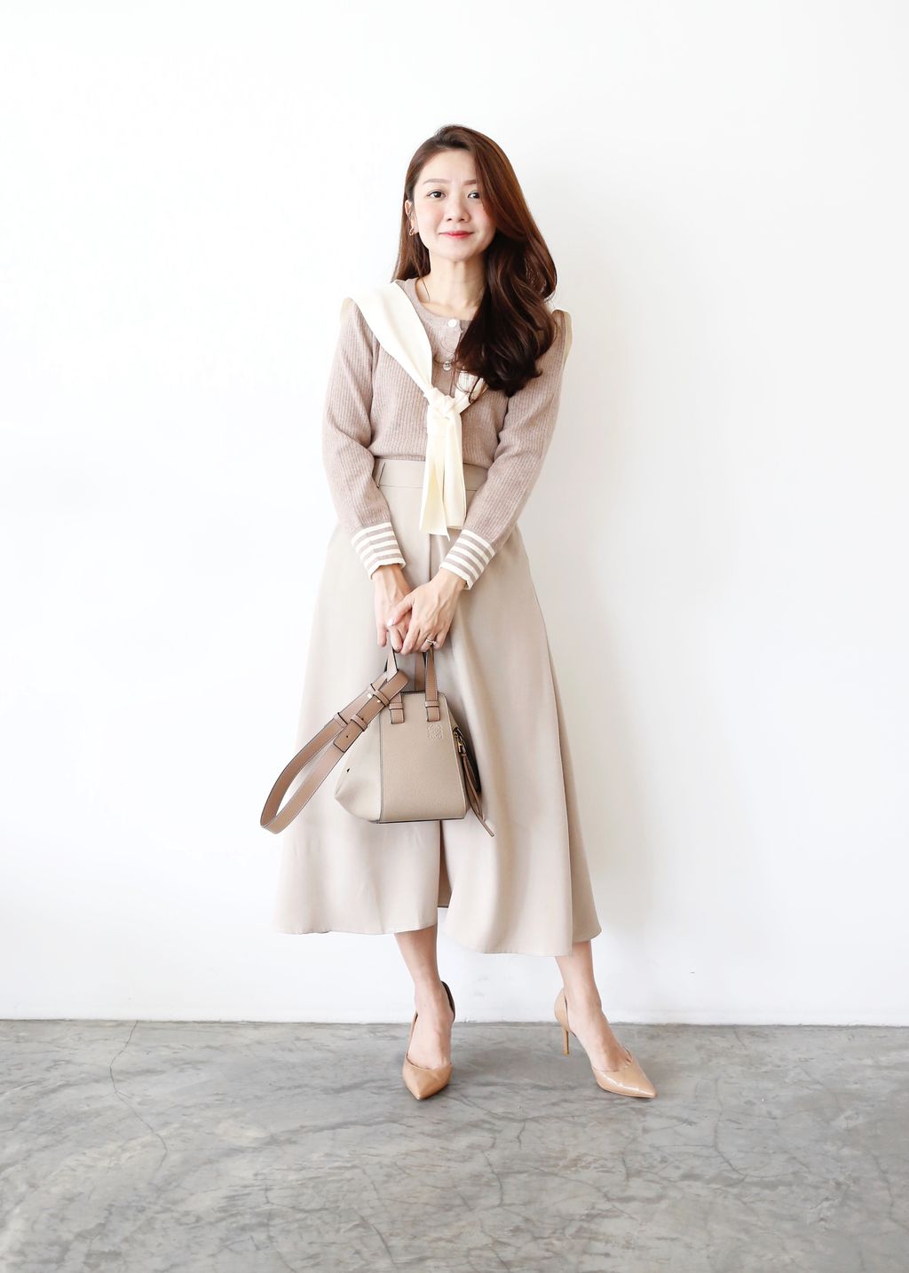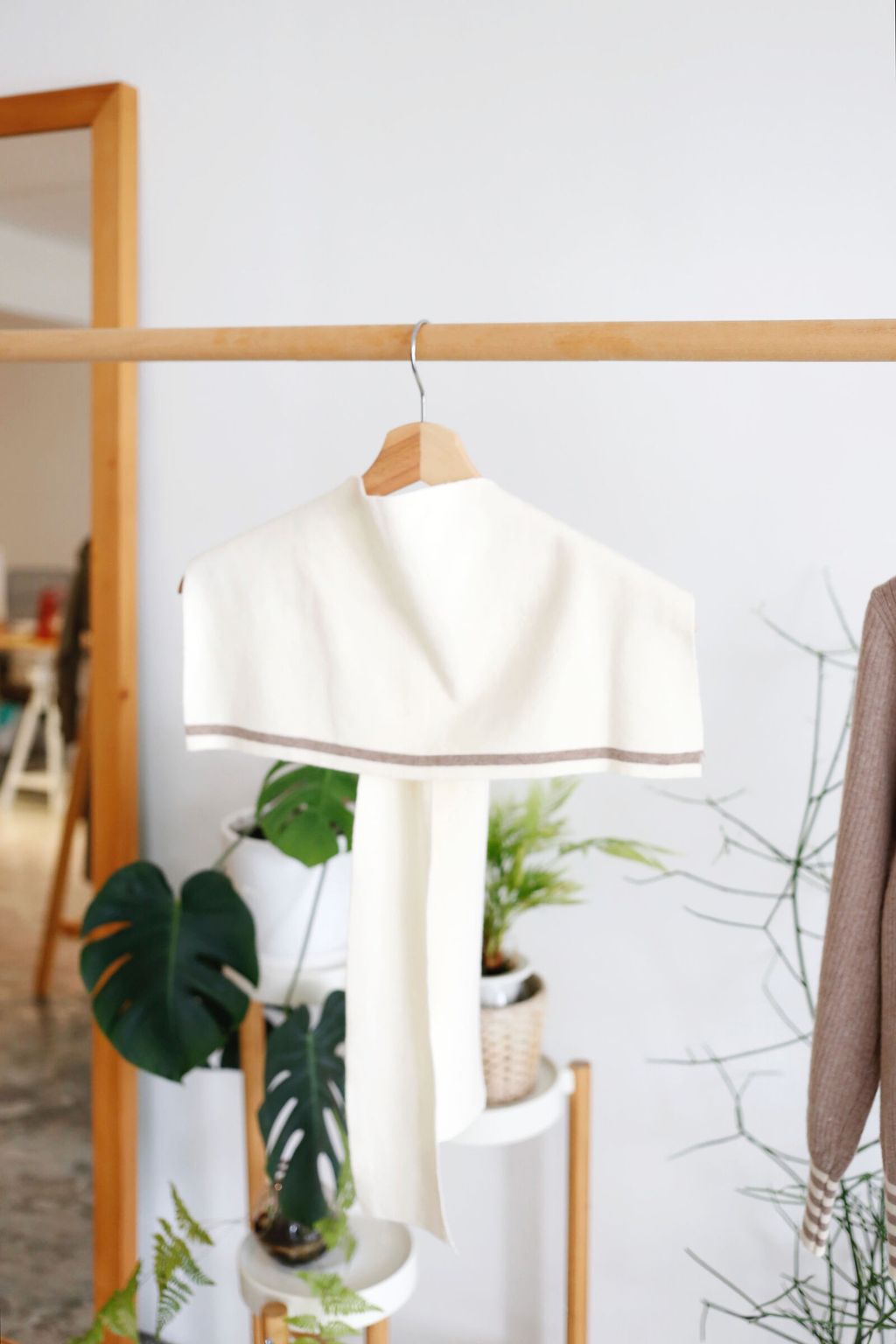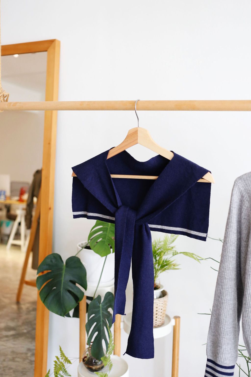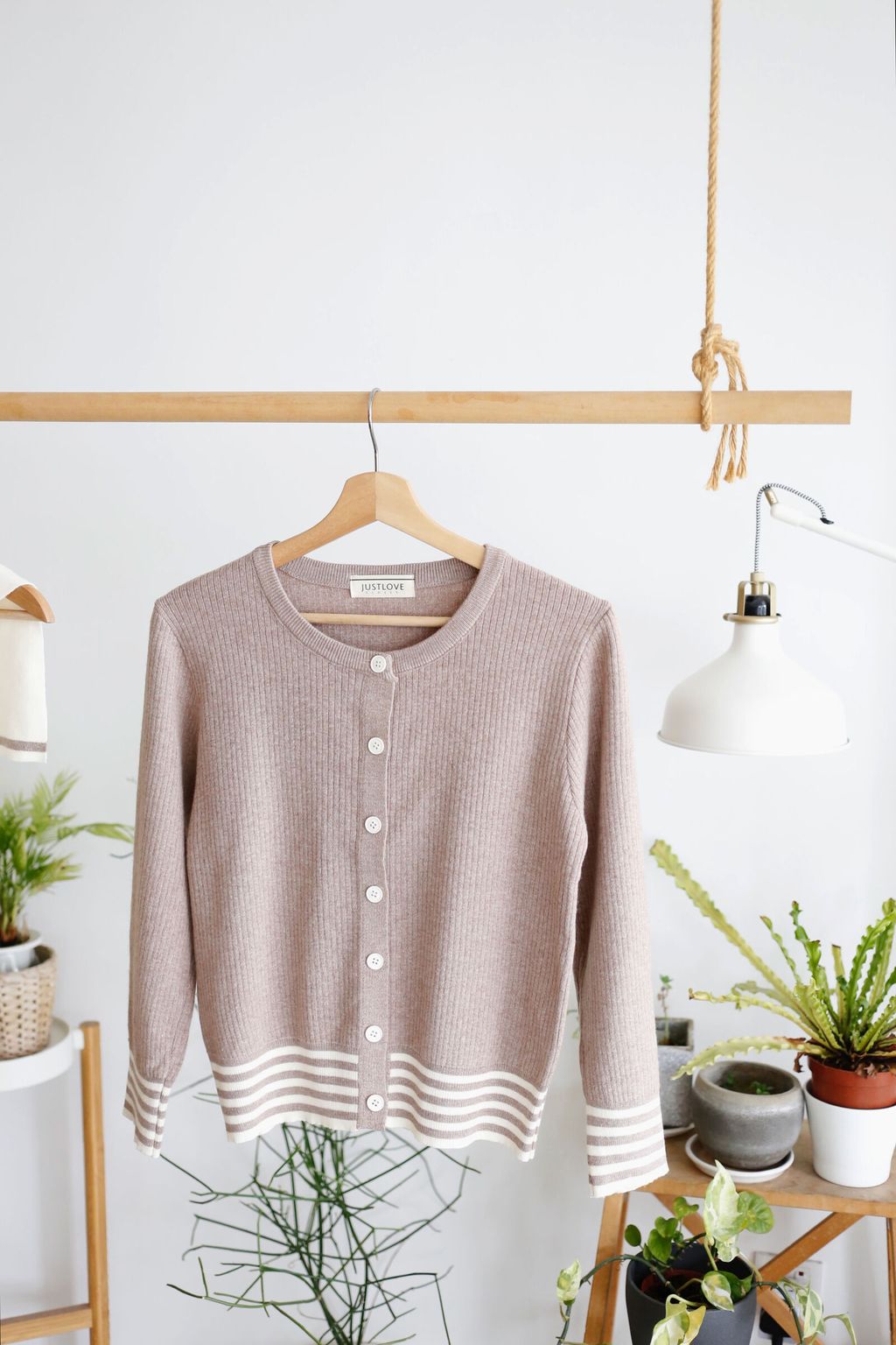 Type: 2-Tone Cardigan with Shawl Set | Stretchable Ribbed Knit Fabric | Shawl Can Be Separated | Functional Buttons