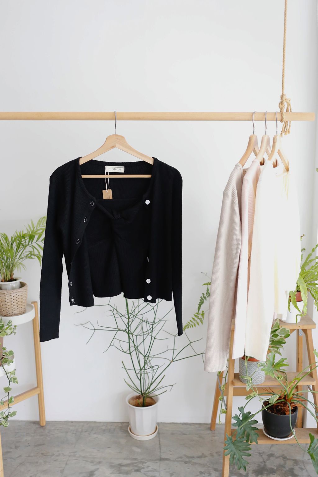 Type: 2PCS Knit Cami Top and Cardigan Set | Stretchable Ribbed Knit Fabric