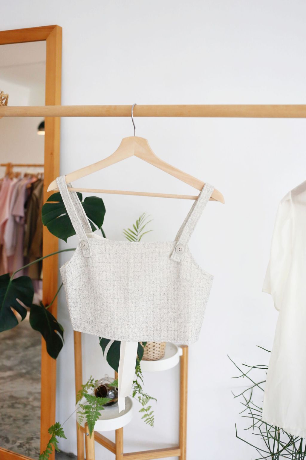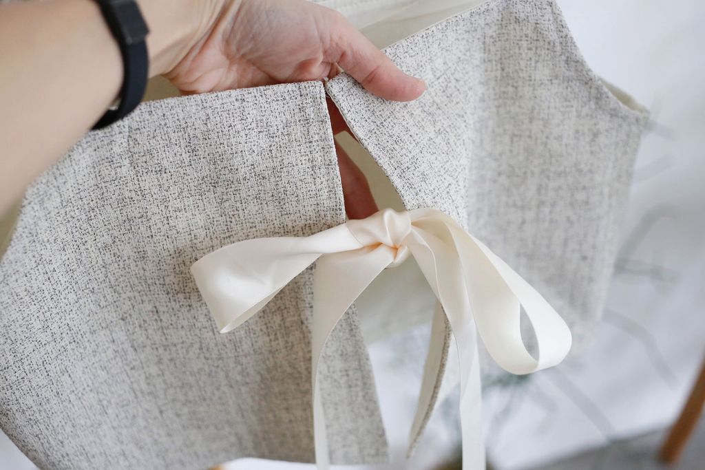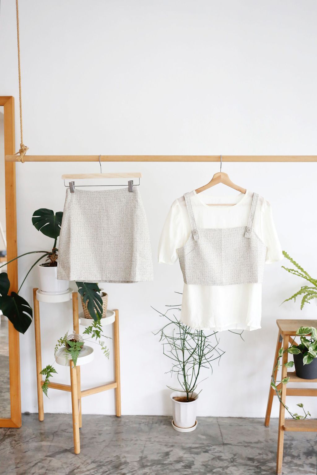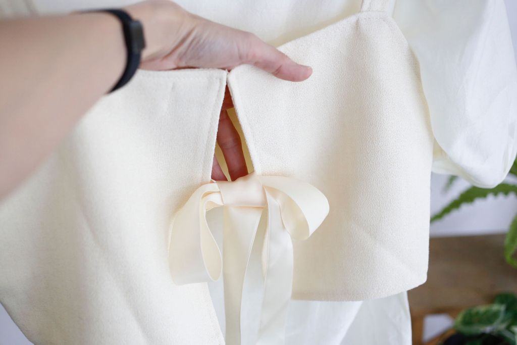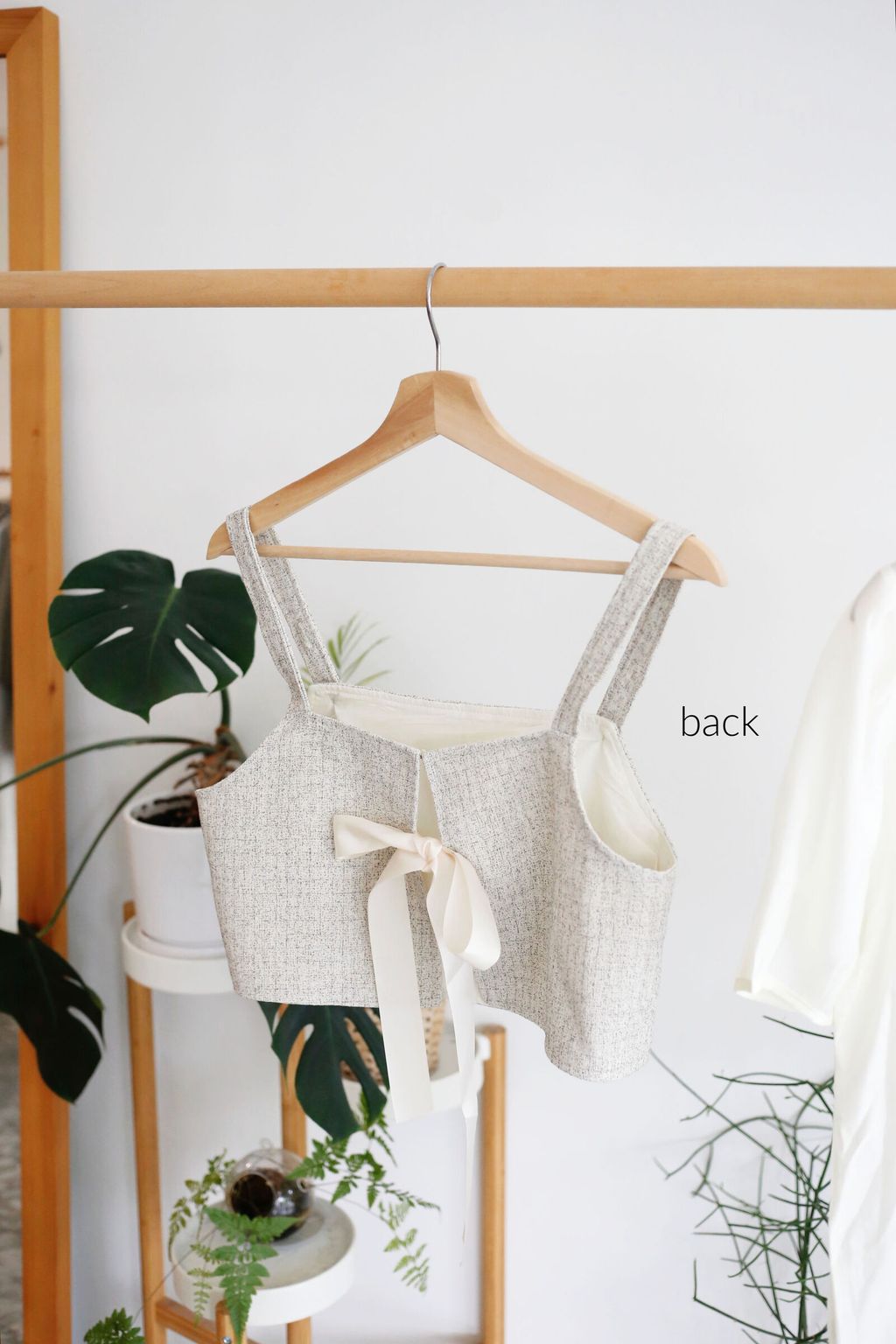 Type: 3PCS Blouse and Back-Tie Vest with Skirt Set | Tweed Fabric with Lining for Vest and Skirt | Semi-Sheer Chiffon Blouse | Vest Length Adjustable with Button | Vest with Back-Tie Design | Side Zipper for Skirt | Skirt Not Stretchable | Skirt with Pants Lining