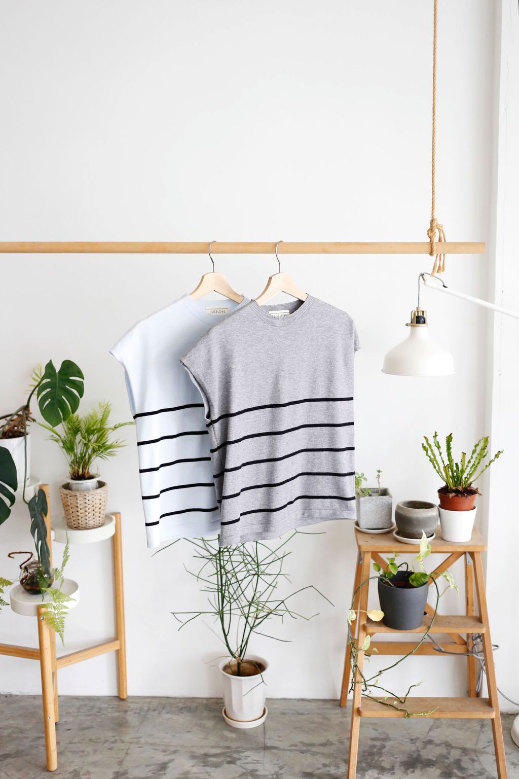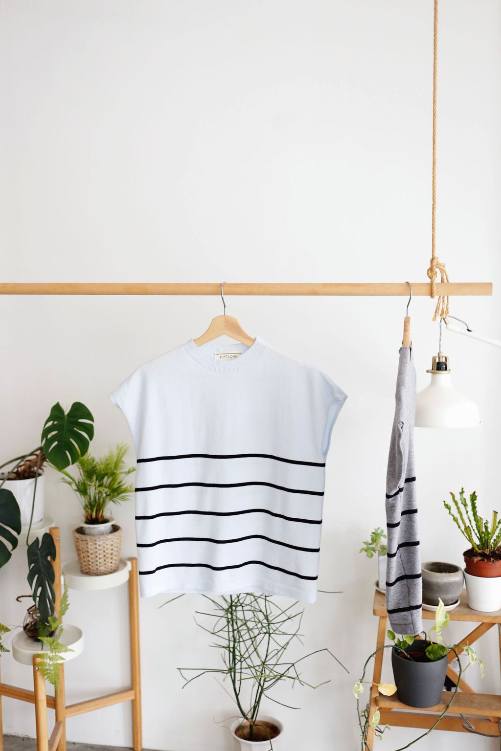 Type: Cap Sleeves Stripey Knit Top | Stretchable Knit Fabric