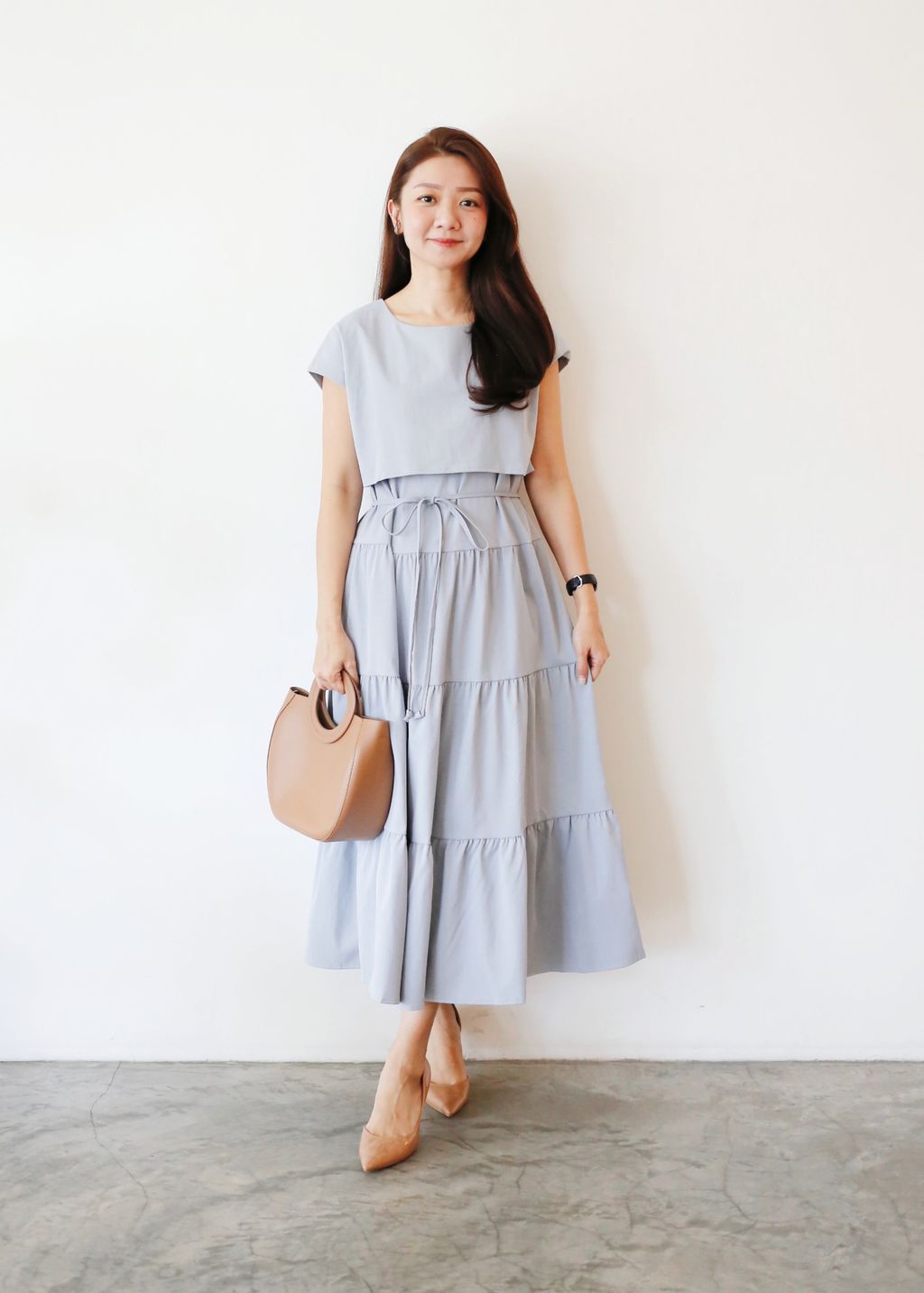 Type: Cap Sleeves Tiered Maxi Dress | PREMIUM SERIES | Cotton Polyester Fabric | Comes With String Belt