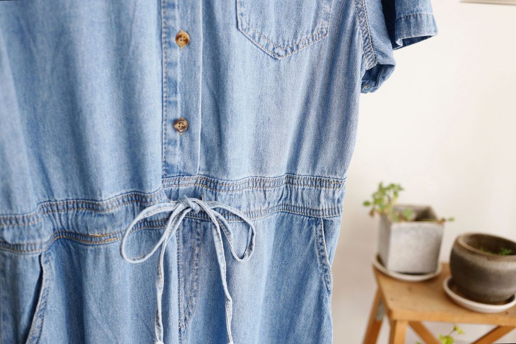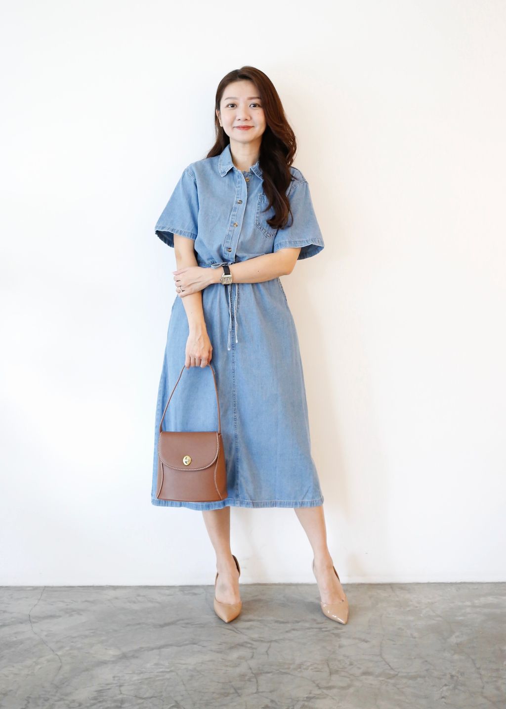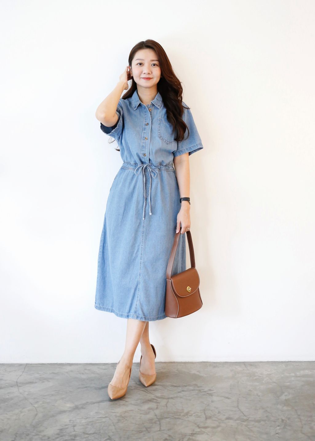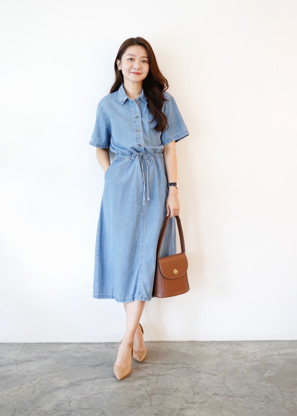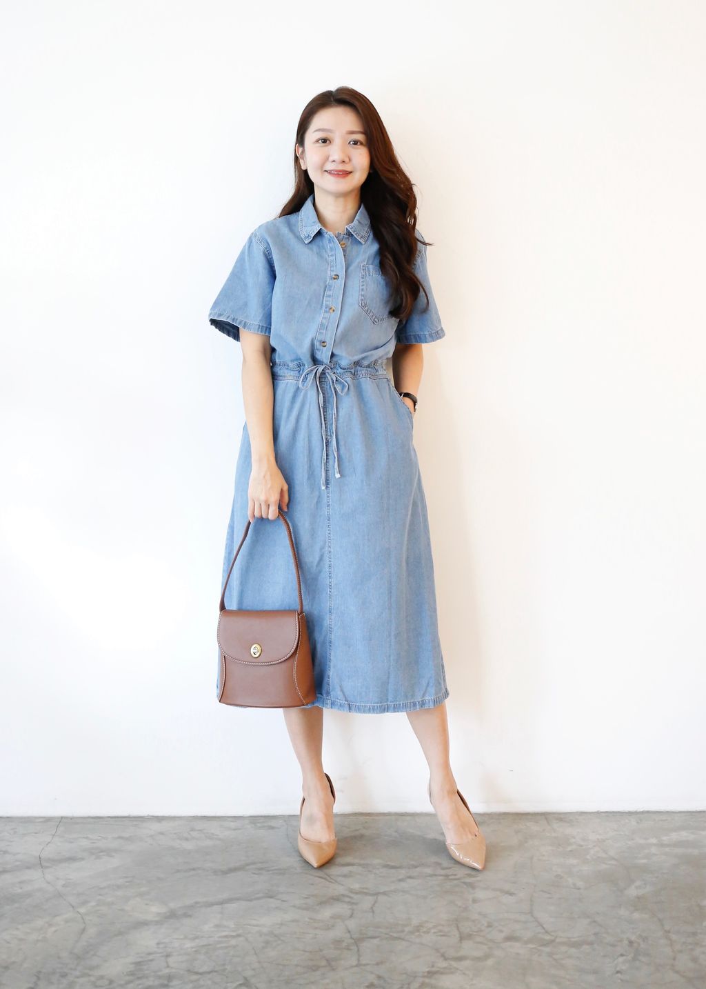 Type: Denim Shirt Dress with Drawstring | Soft Denim Fabric | Waistlength Adjustable with Drawstring | Front Buttons | Side Pockets