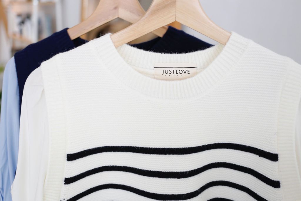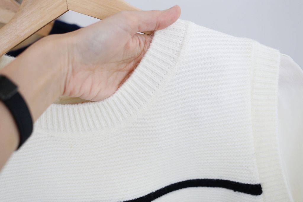 Type: Fake-2-Piece Stripey Knit Pullover Top | Stretchable Wool Knit Fabric | Soft Cotton Fabric for Sleeves