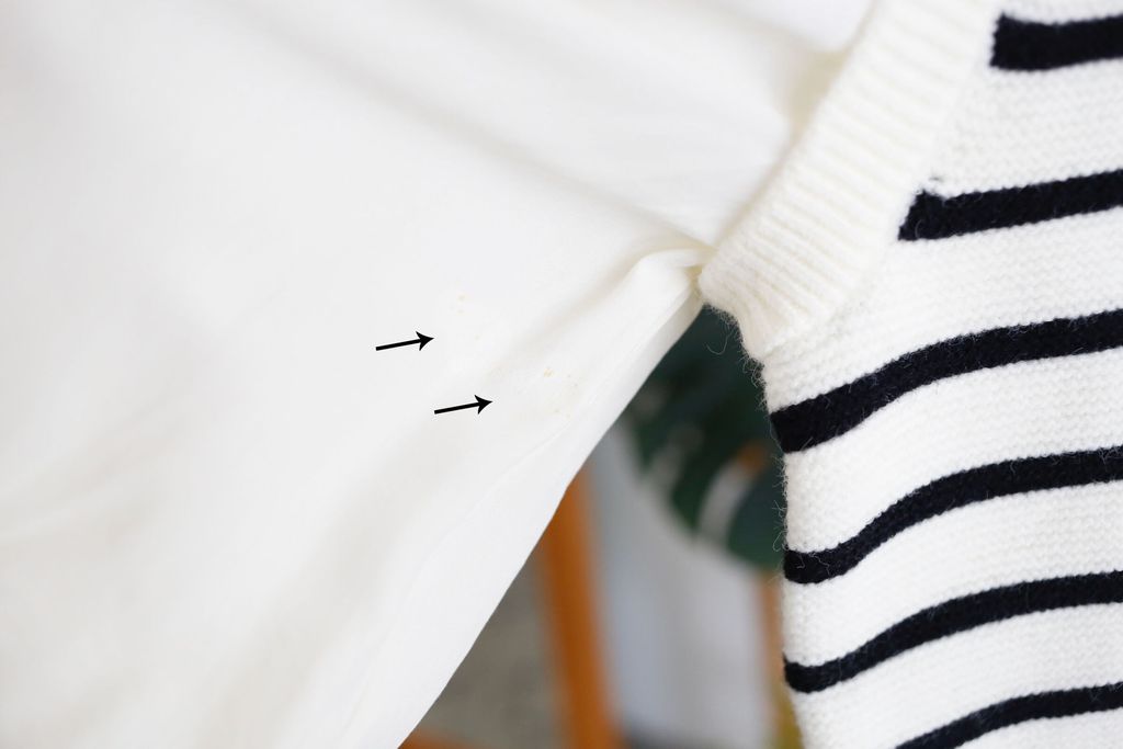 Defect Descriptions: Right Sleeves Near Armpit, Few Yellow Dots