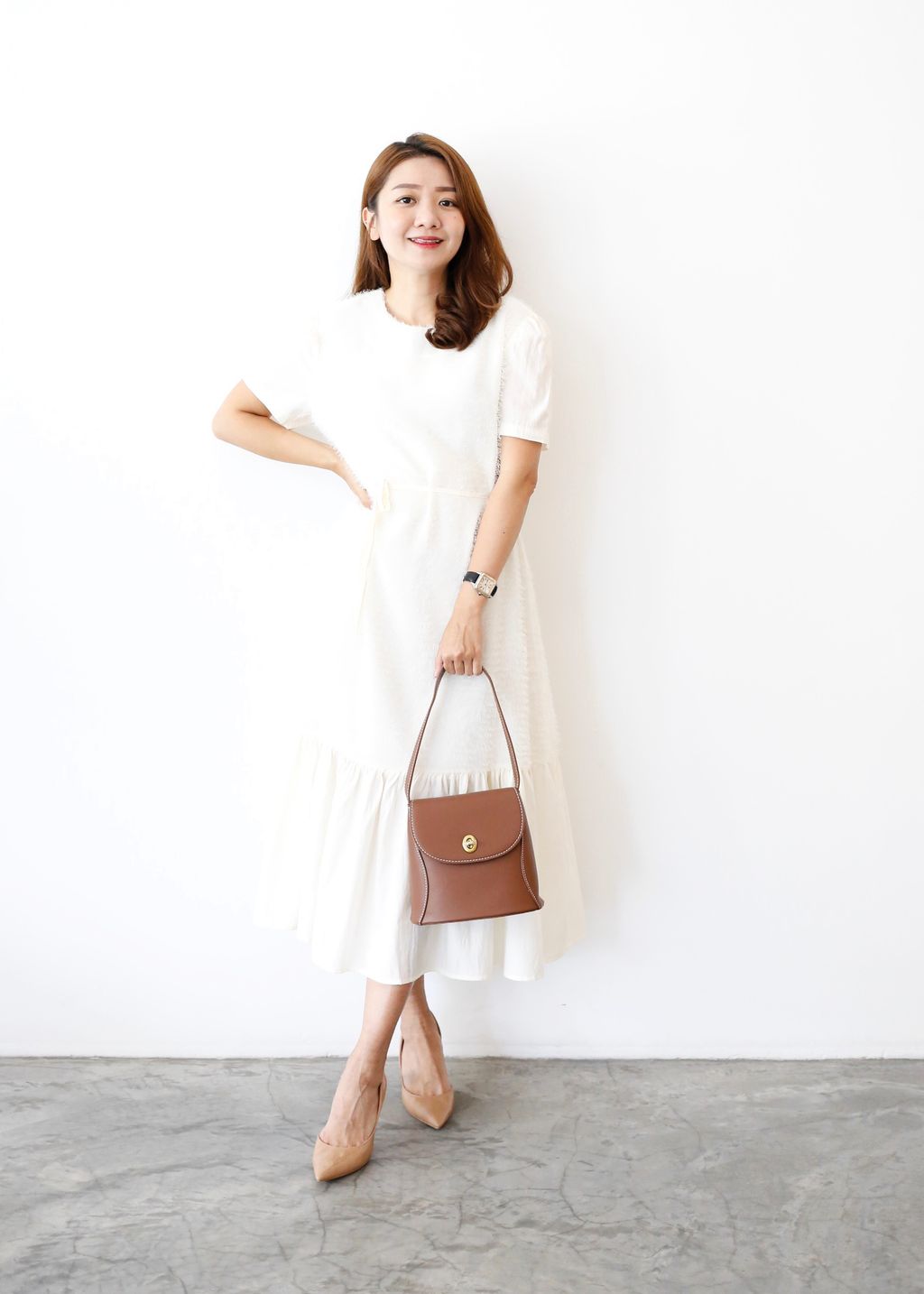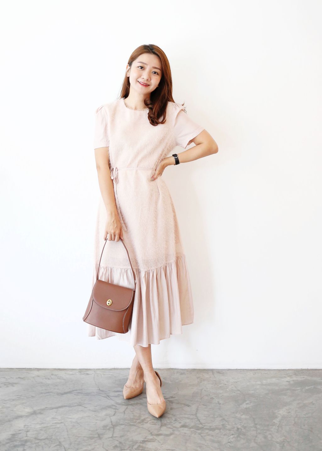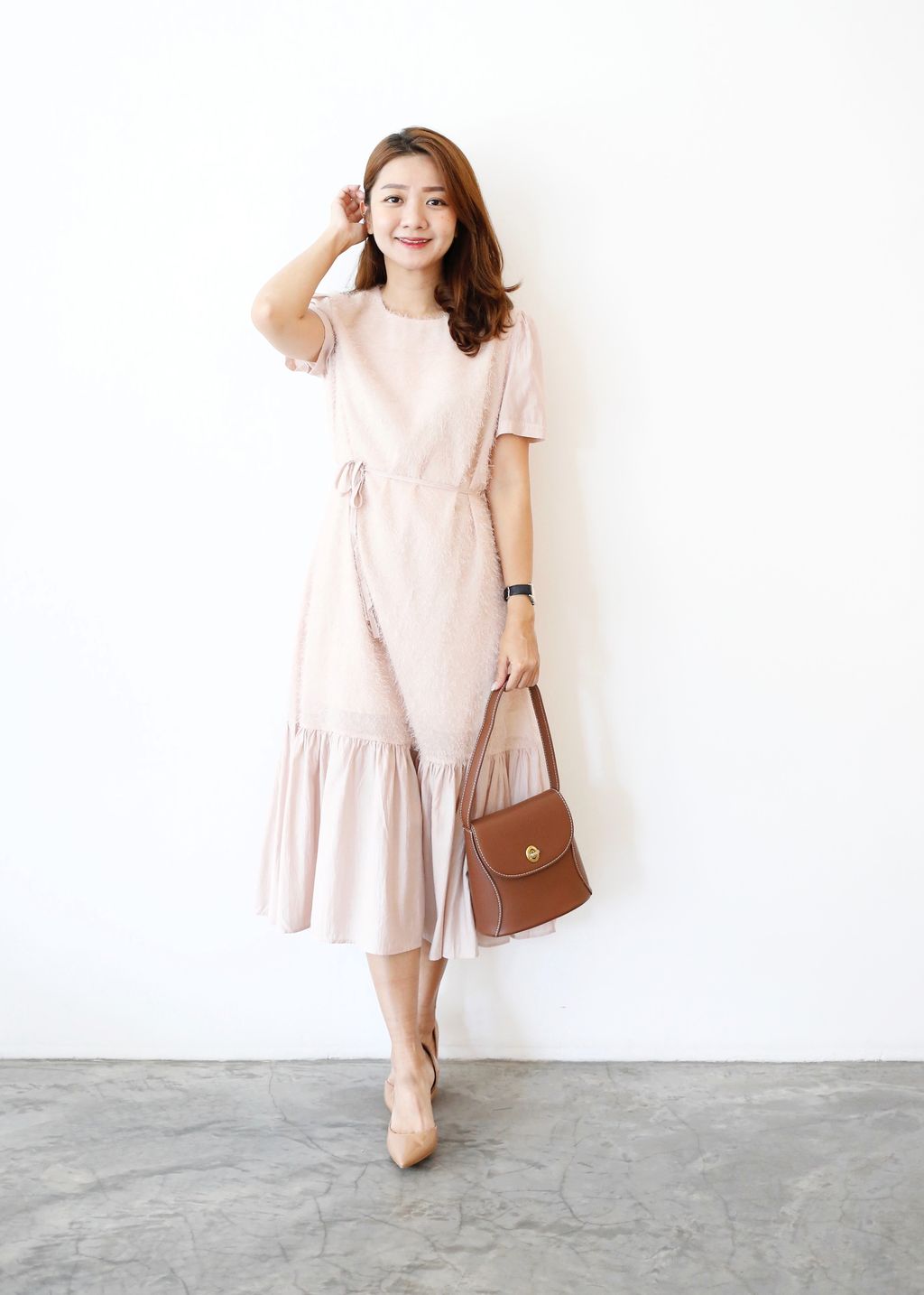 Type: Flared Hem Feather Trim Dress | Cotton Fabric | Comes with Lining | Loose Type Dress, Comes with String Belt