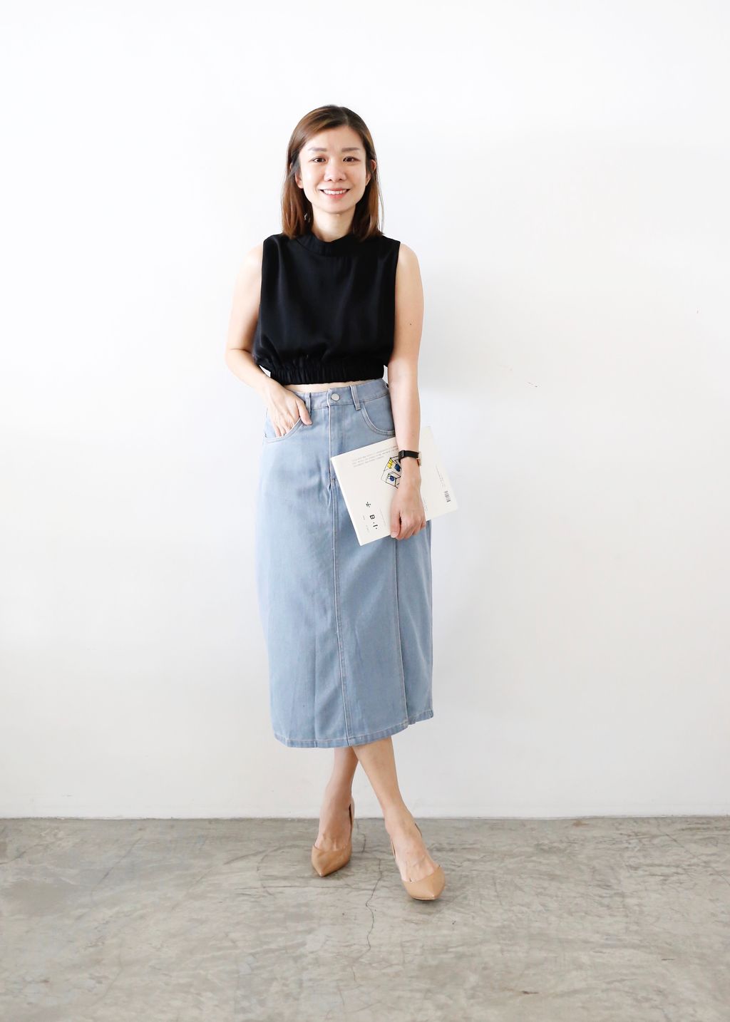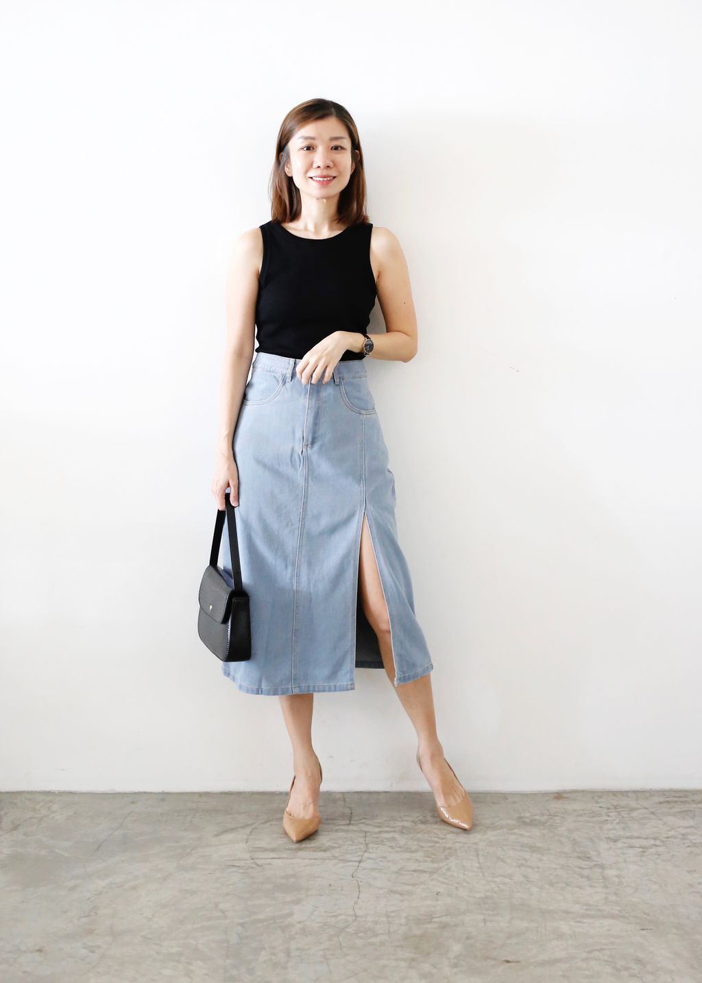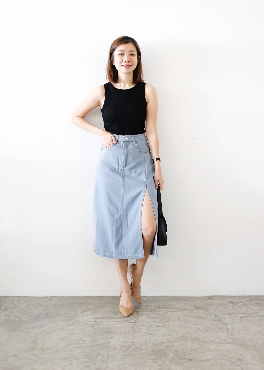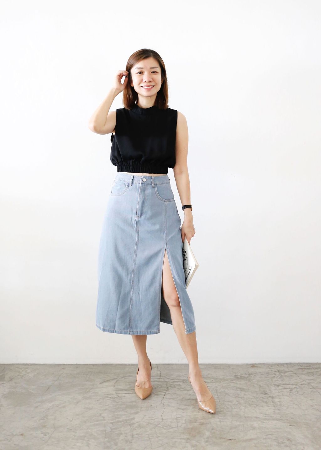 Type: Front Slit High Rise Denim Skirt | Soft Denim Fabric | Not Stretchable | Comes with Pants Lining | Front Zipper | Side Pockets