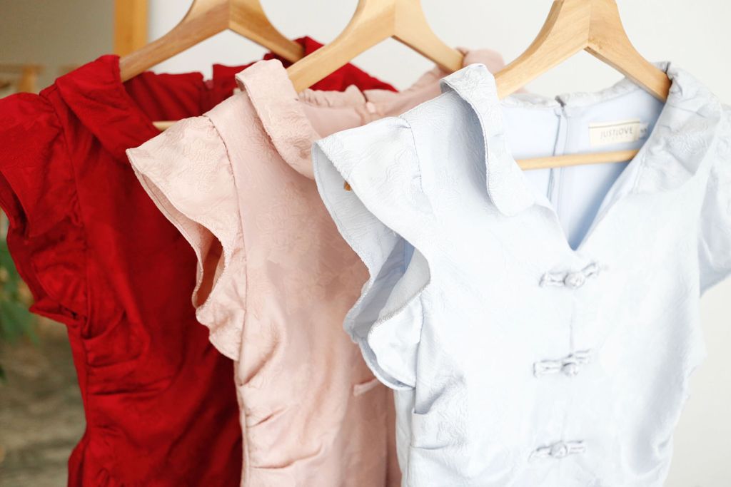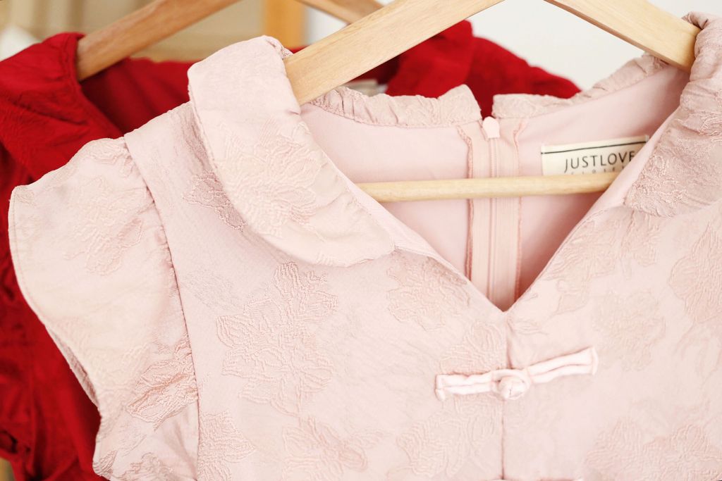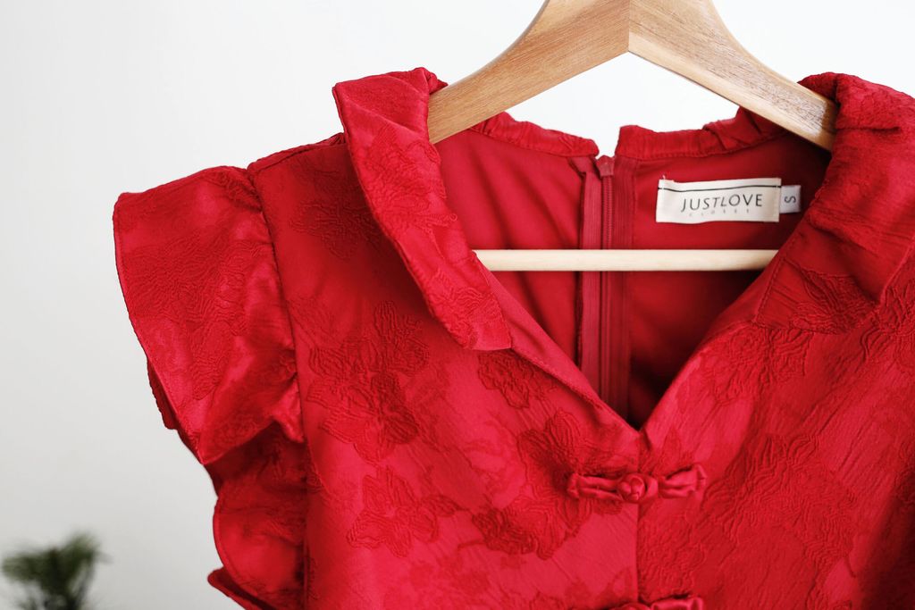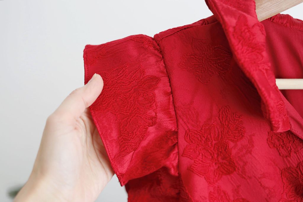 Type: PanKou Knots Cheongsam Skater Dress | Embroidered Polyester Fabric | Not Stretchable | Comes with Lining | Back Zipper | Pleated Side Waist Design