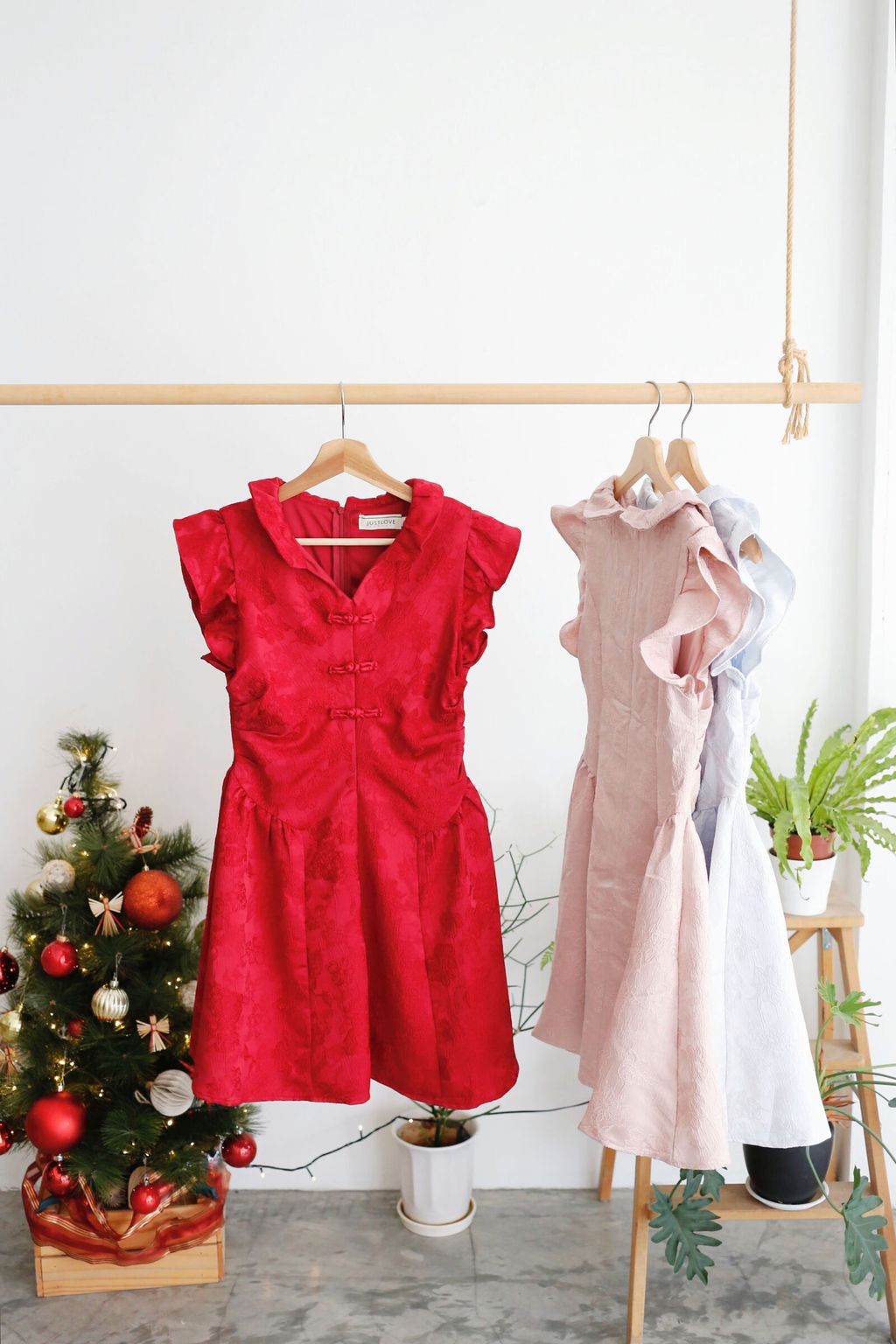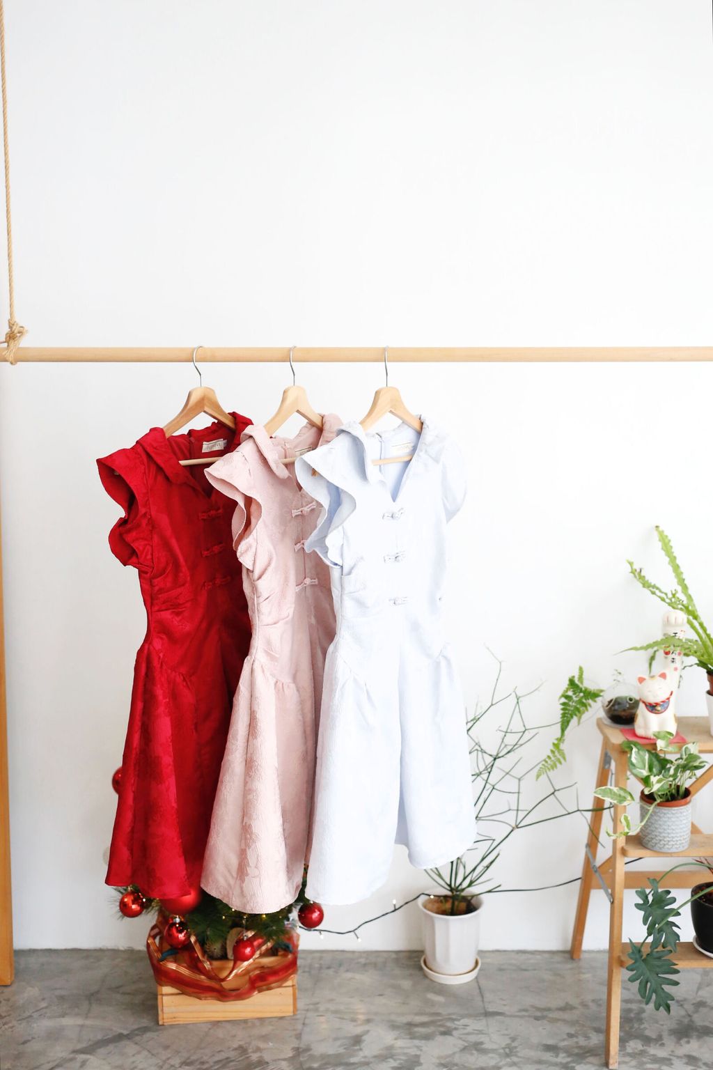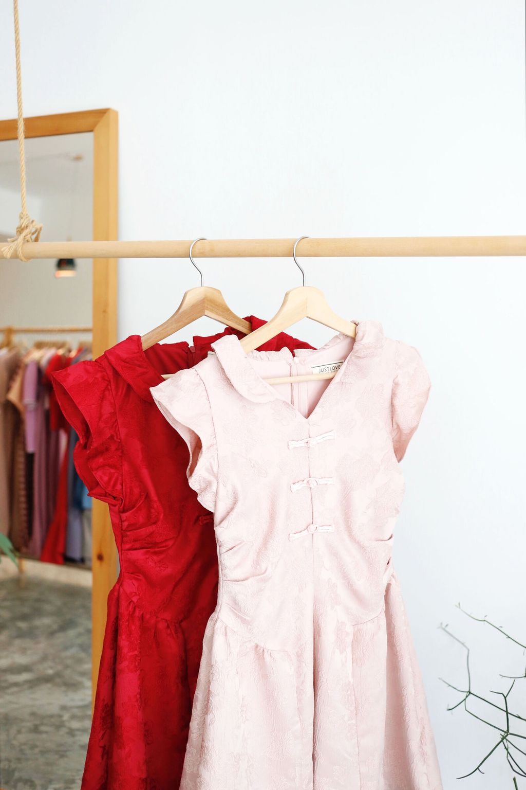 Type: PanKou Knots Cheongsam Skater Dress | Embroidered Polyester Fabric | Not Stretchable | Comes with Lining | Back Zipper | Pleated Side Waist Design