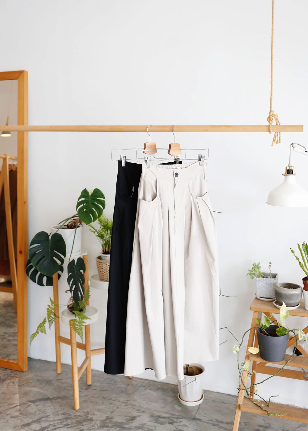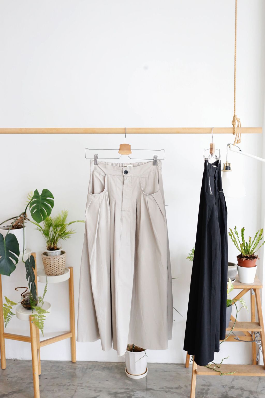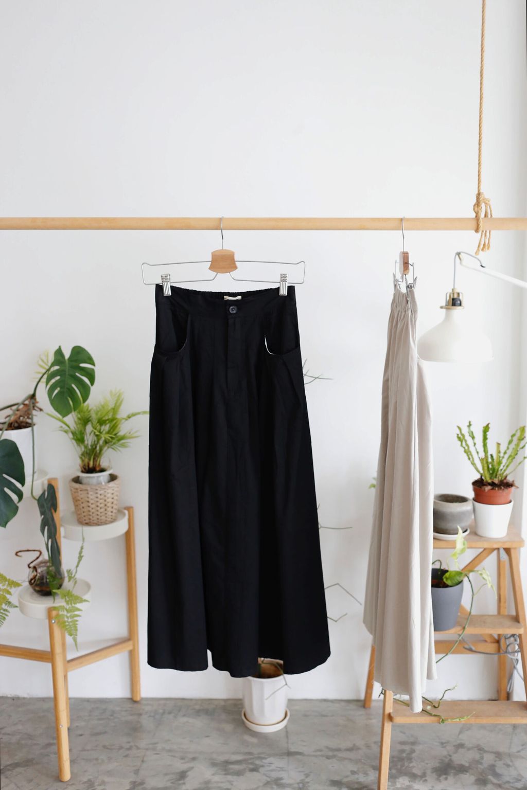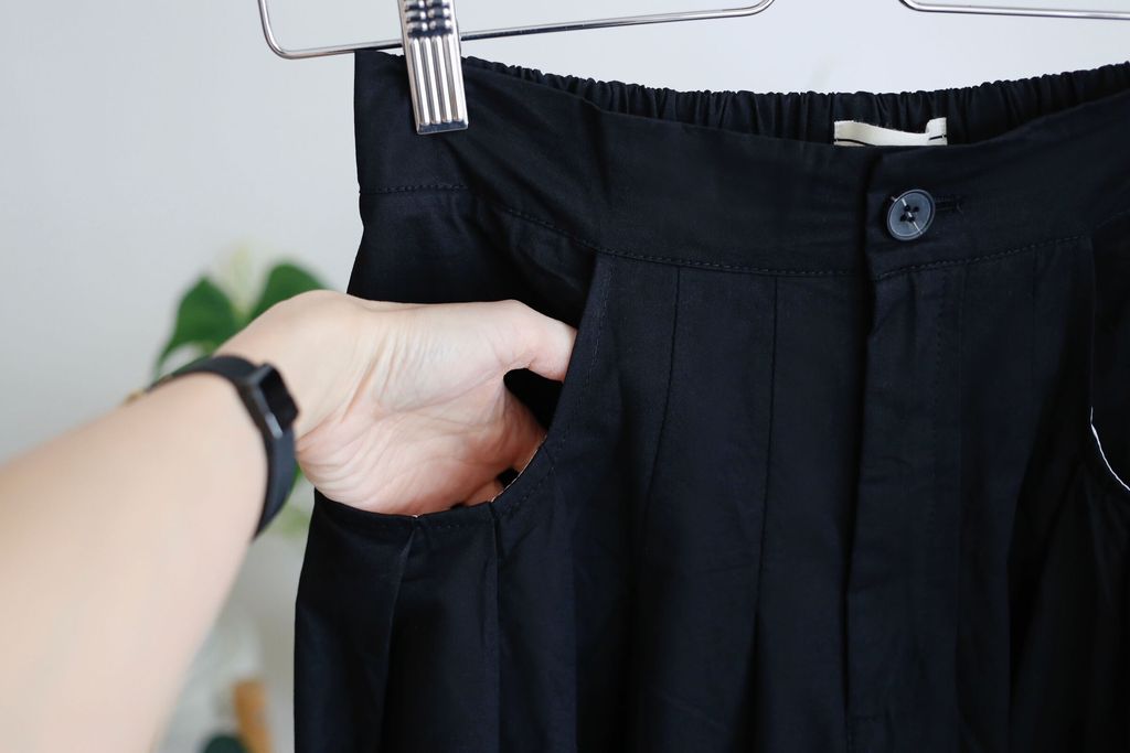 Type: Pleated Front Maxi Skirt | Cotton Fabric | Stretchable Waistband | Front Zipper | Side Pockets | Raw-Edge Design
