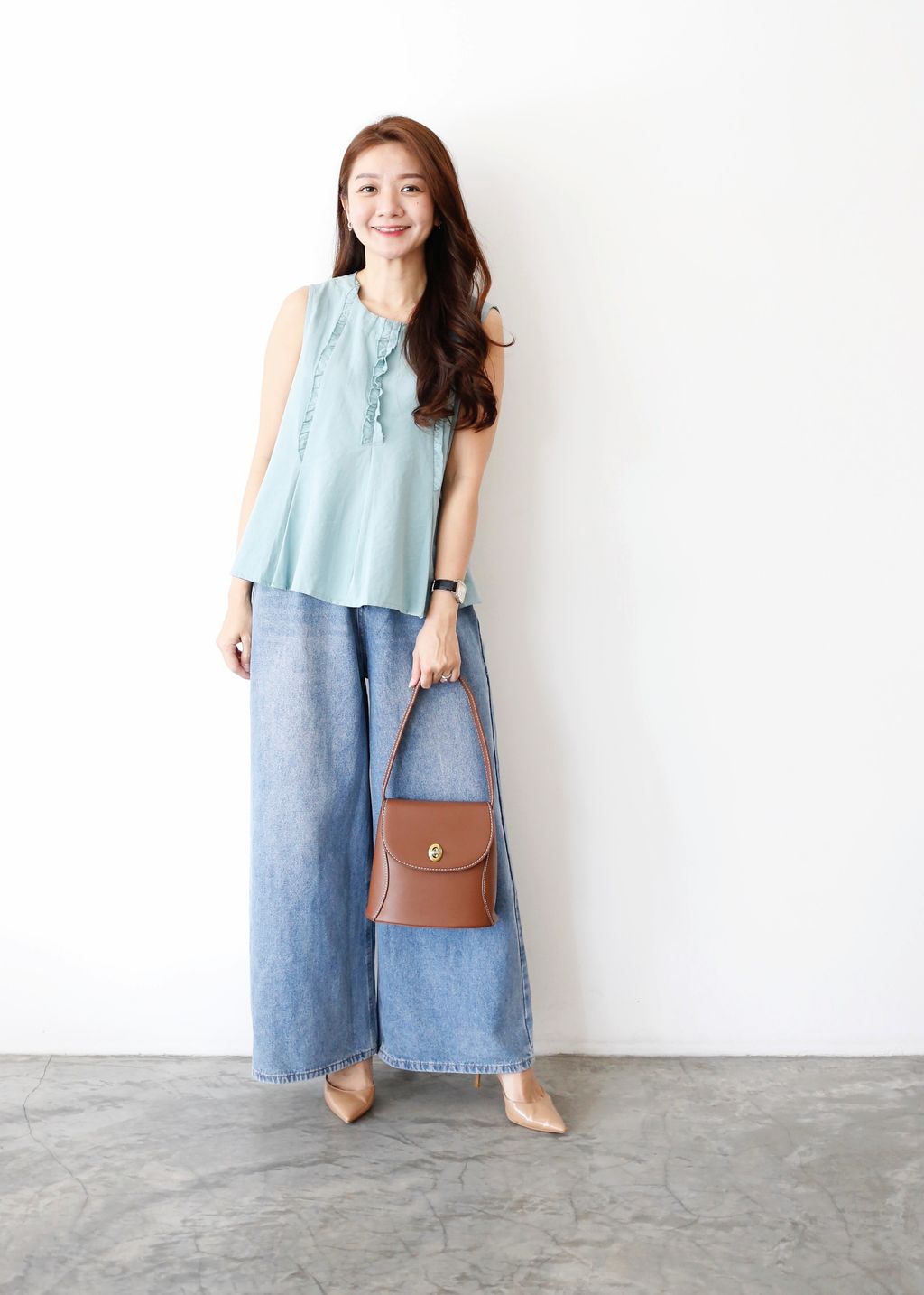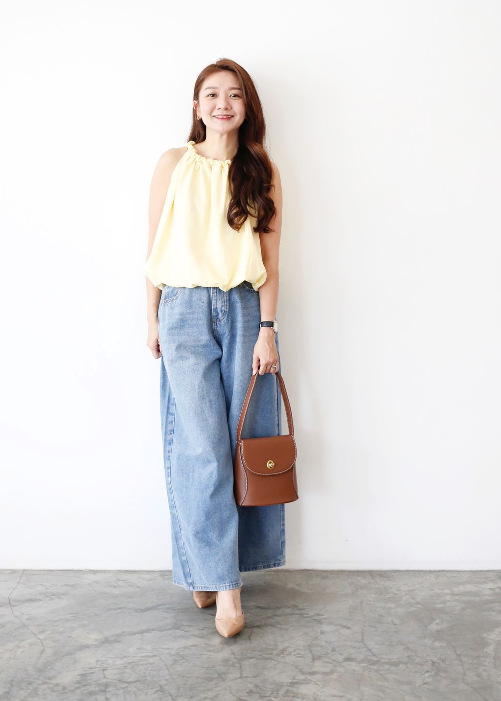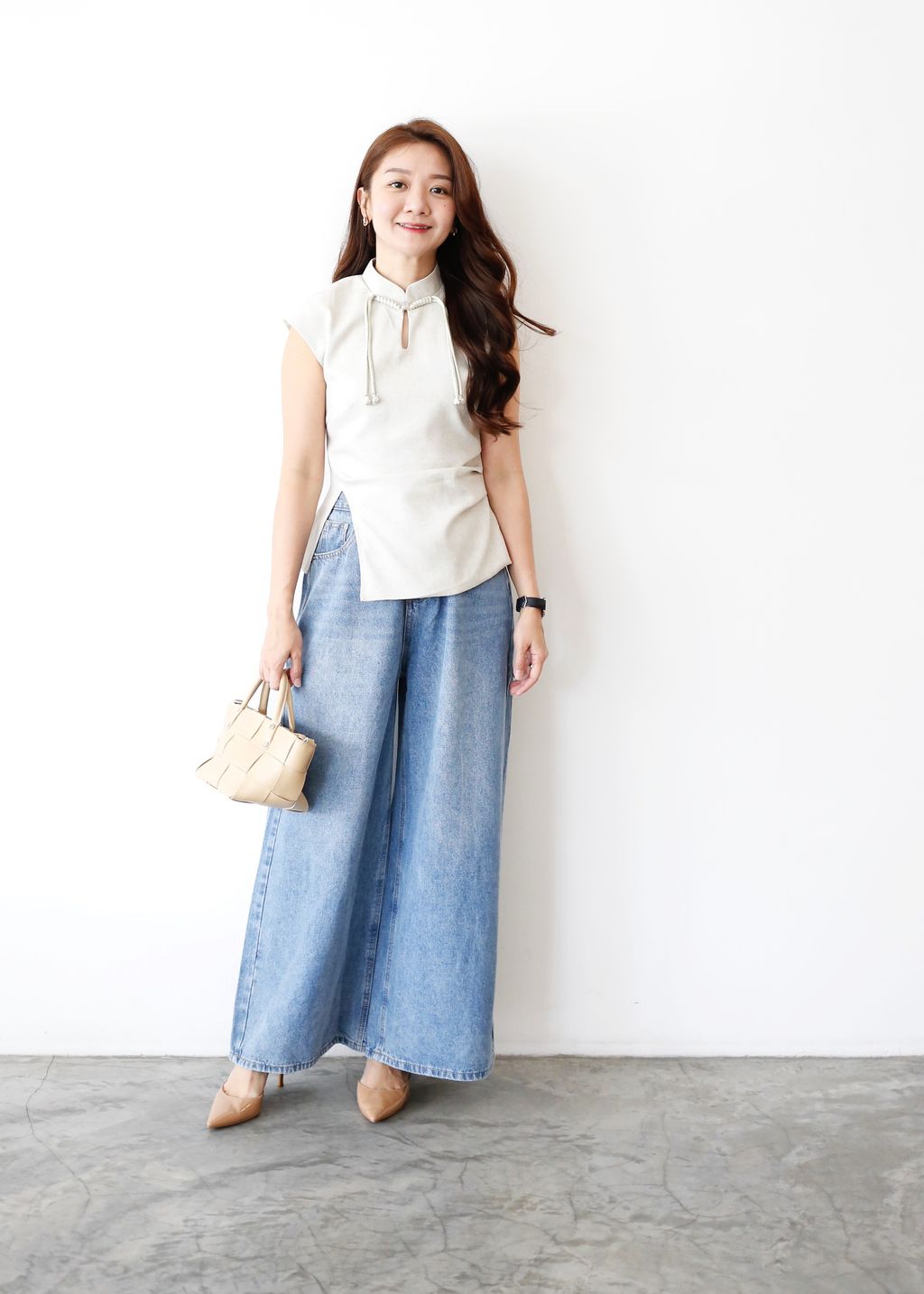Type: Relaxed Denim Wide Leg Pants | Soft Denim Fabric | Non Stretchable Denim | Stretchable Waistband | Front Zipper | Side Pockets