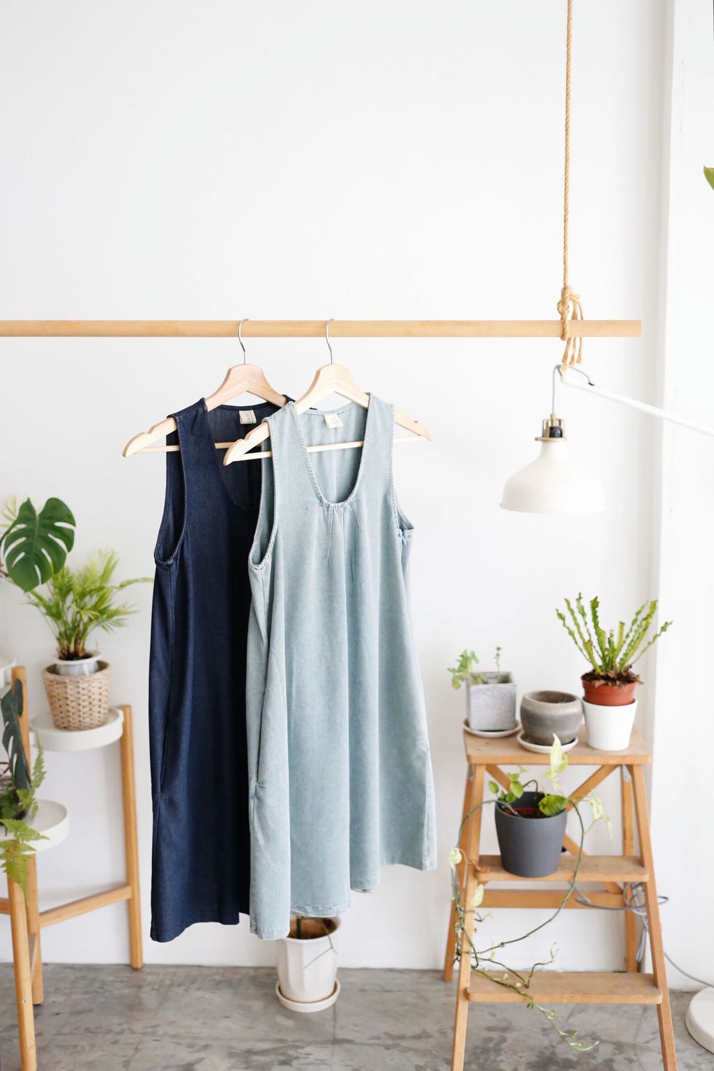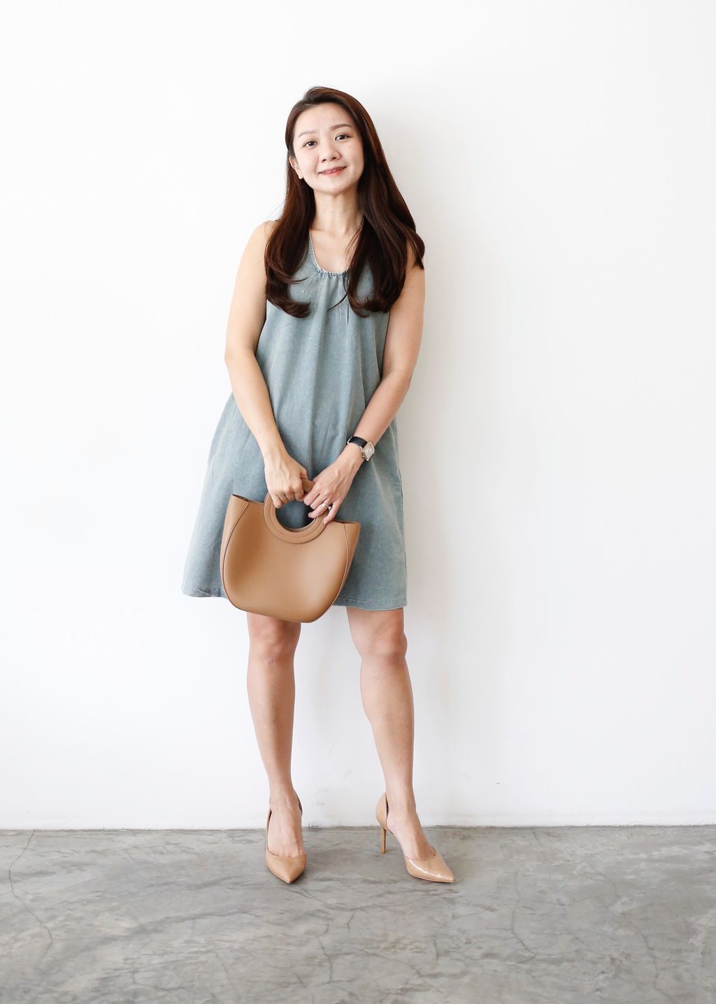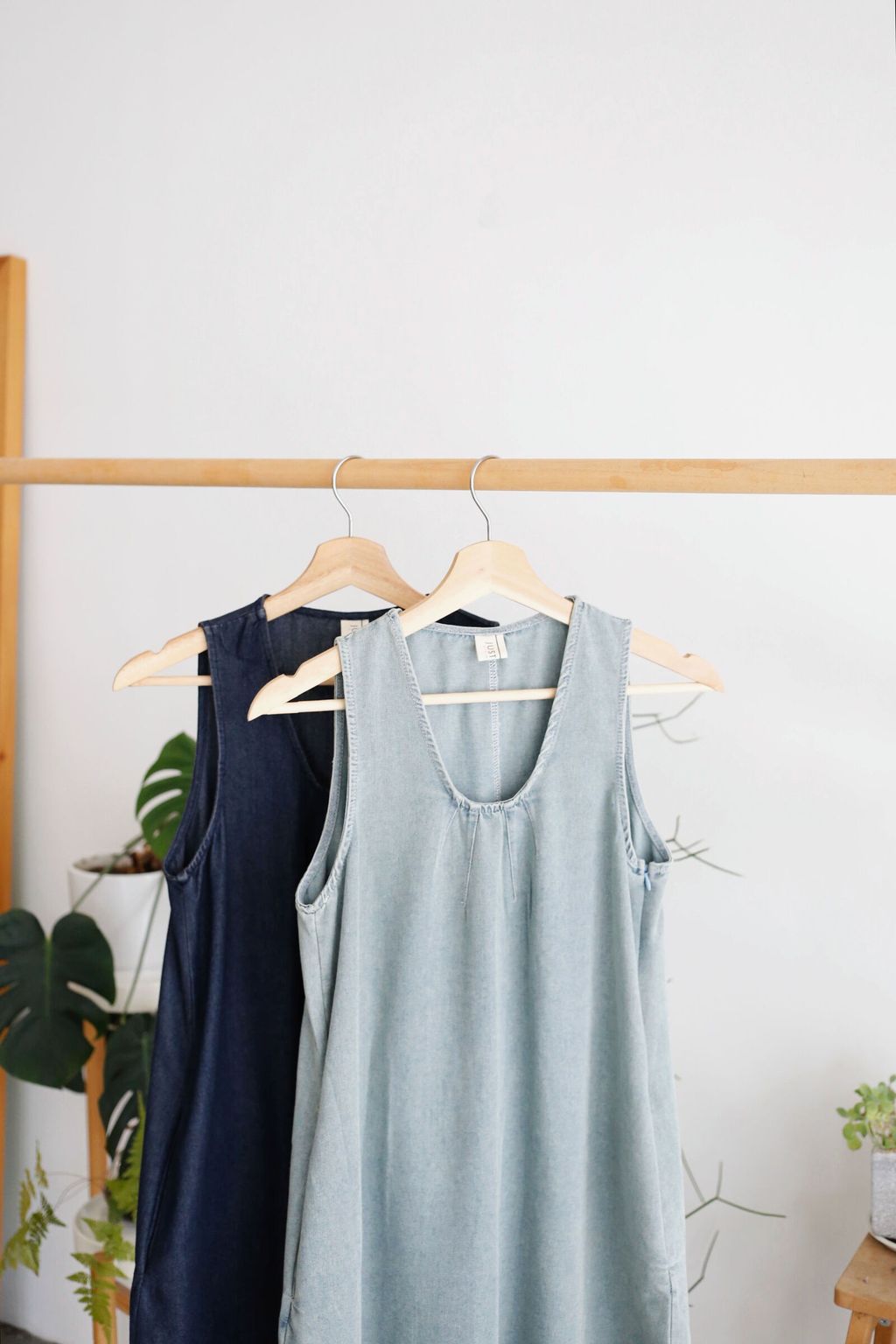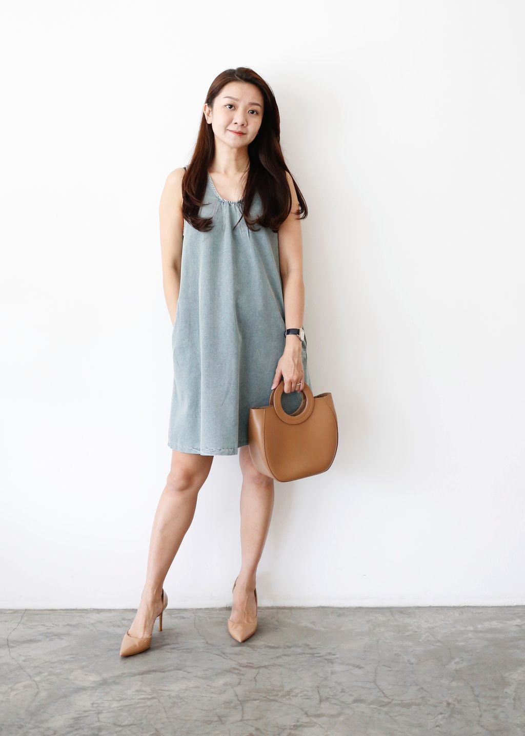 Type: Scoop Neck Denim Mini Dress | Soft Denim Fabric | Side Zipper | Side Pockets | Slightly Cut-In Design