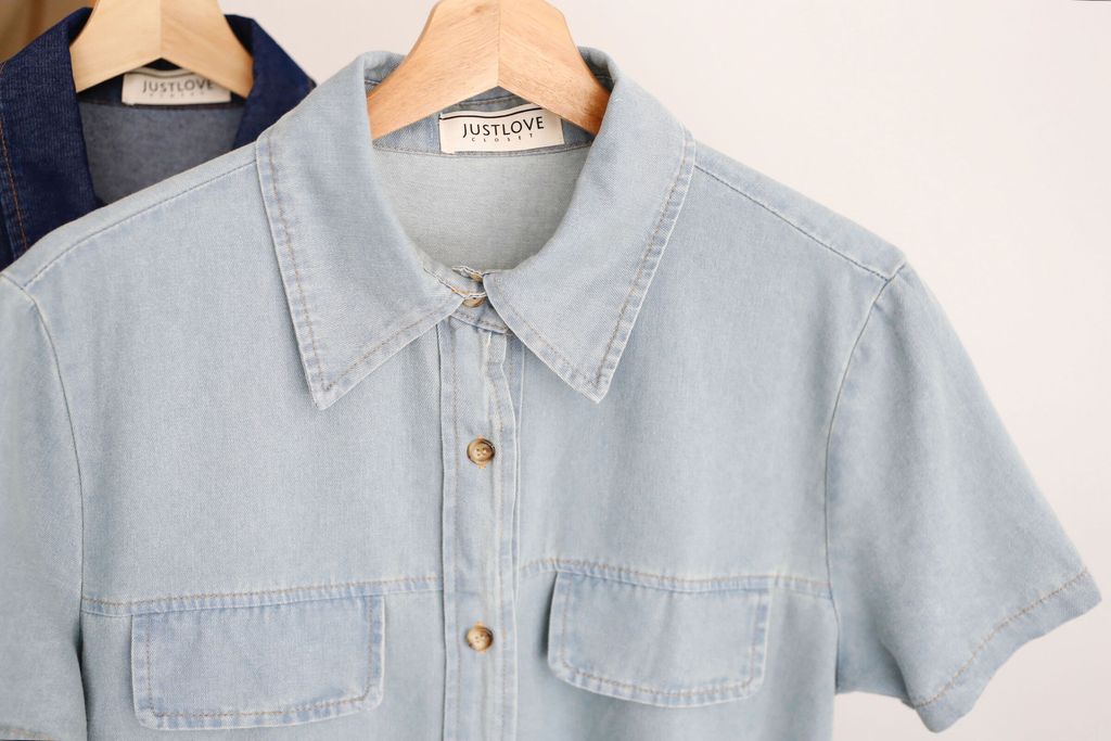 SECOND CHANCE - Short Sleeves Denim Shirt Dress