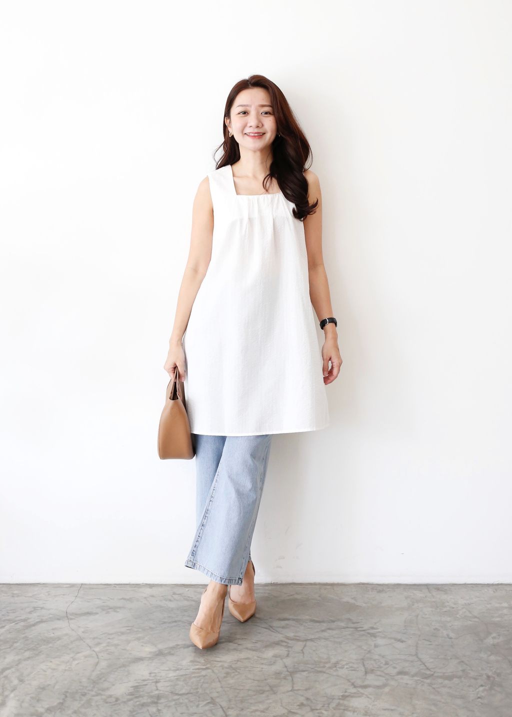 Type: Square Neck Side Button Long Top | Linen Fabric | Side Buttons on Right