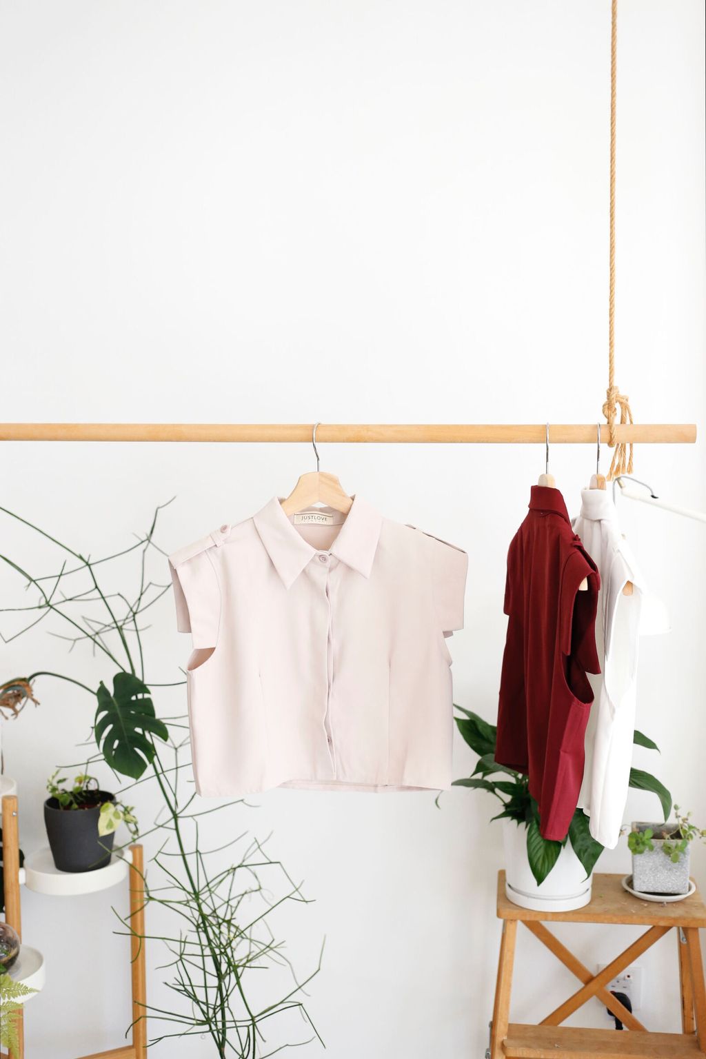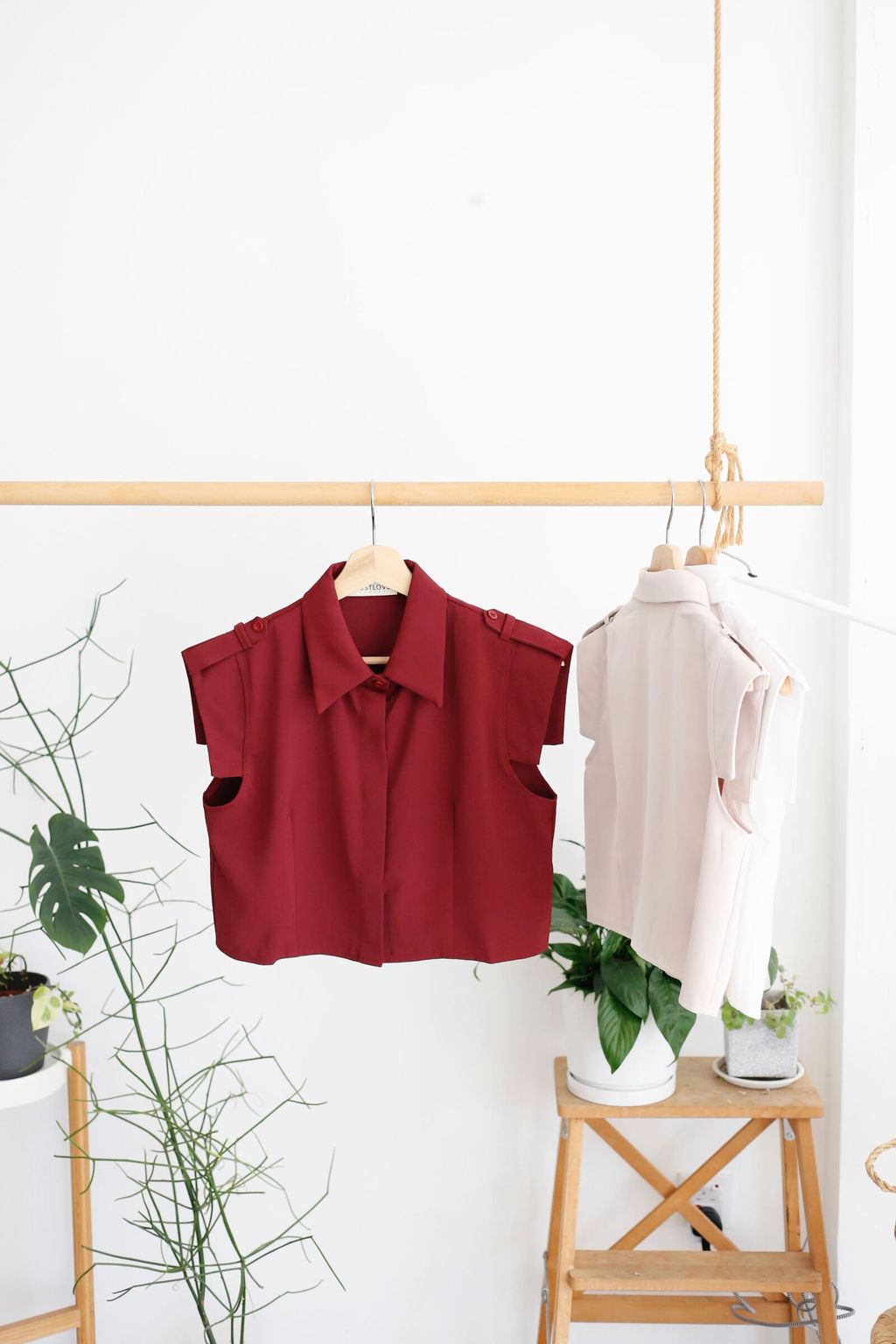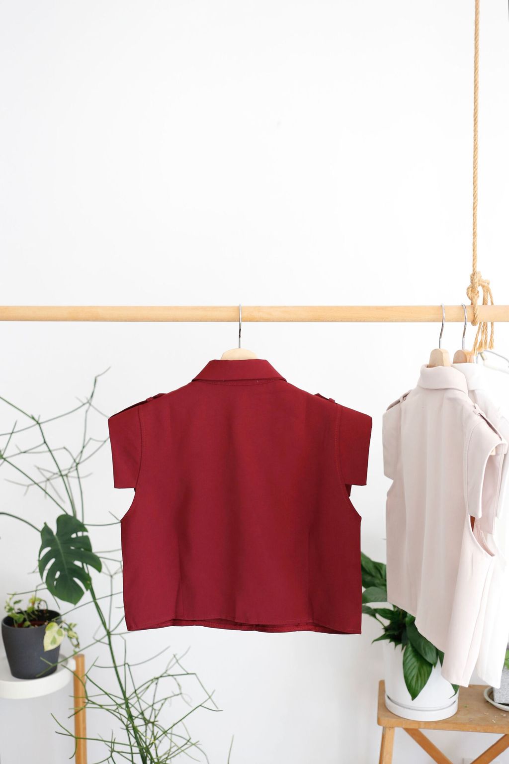 Type: Structured Cap Sleeves Crop Shirt | PREMIUM SERIES | Soft Suit Fabric | Hidden Buttons Design
