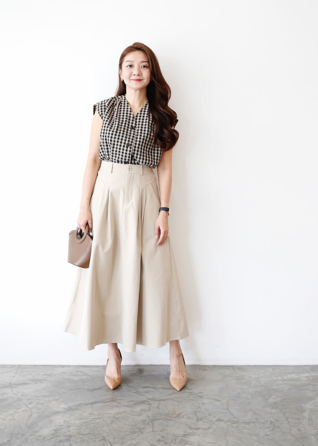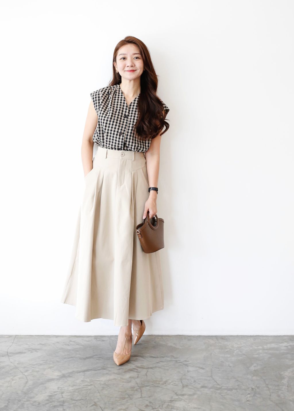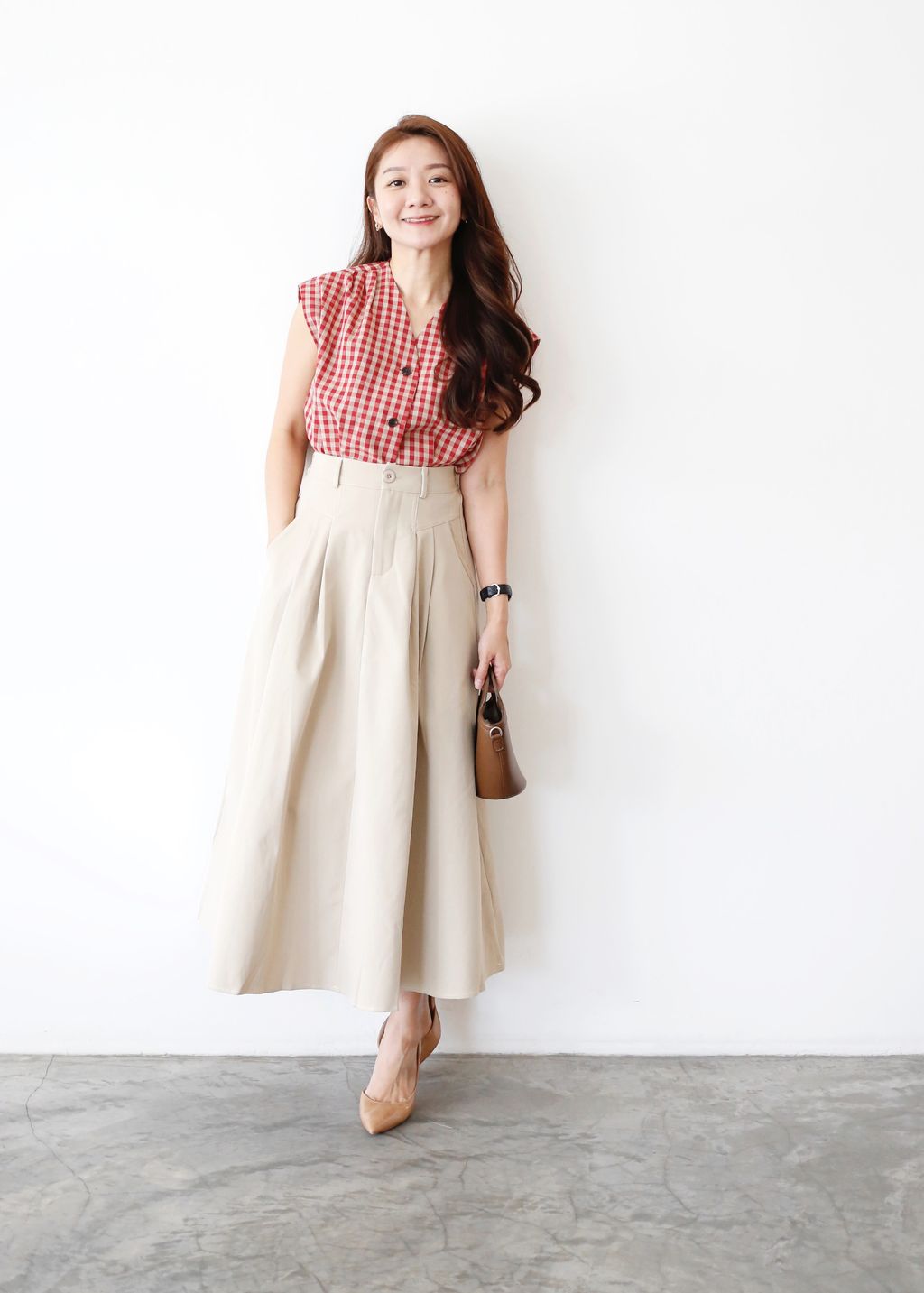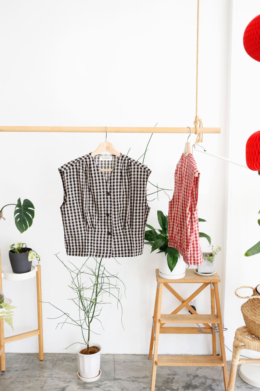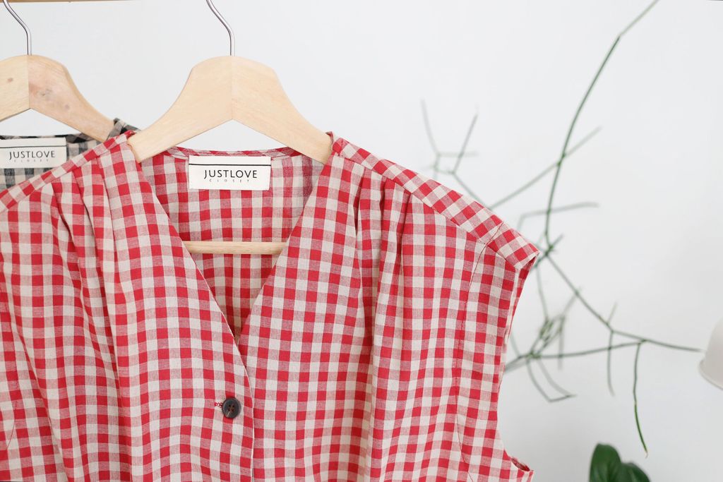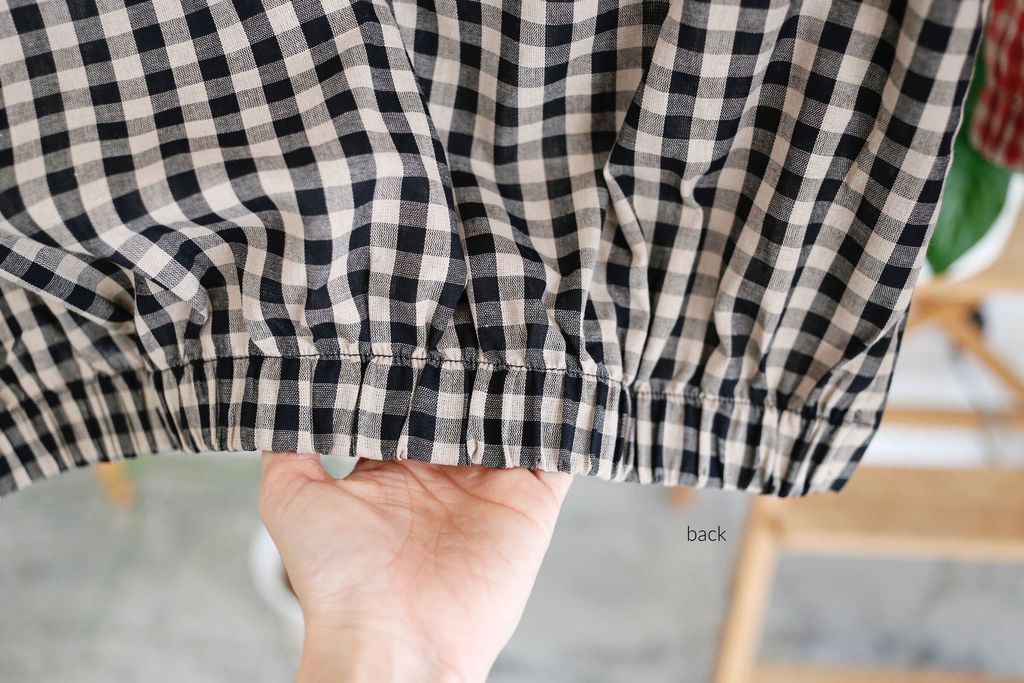Type: V-Neck Gingham Button Top | Linen Fabric | Button Through Design | Stretchable Waistband at the Back, But Won't Tight on Waist | Kindly Take Note on Bigger Armpit Gap Hole